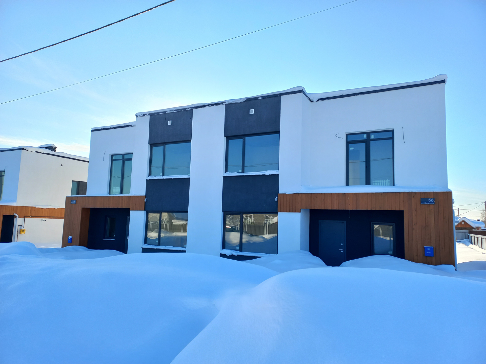 Дом 2-х этажный в современном стиле хай тек, дом готов уже отапливается в качественной предчистовой отделке, дом просушенный можно уже начинать делать ремонт. Большие окна, комнаты очень просторные, с террасой и балконами.