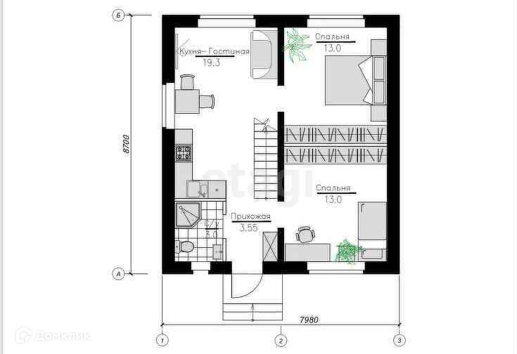 Растущий, уютный дом общей площадью 52 м². Главная изюминка данного дома заключается в том, что когда ваша семья увеличится, вам не придётся переезжать на новое место жительства. Вы просто воспользуетесь мансардным этажом. Изначально вы получаете полностью пригодный дом для проживания в 1 этажном исполнении (площадь которого составляет 52 кв.м - кухня-гостиная с панорамным остеклением, 2 спальни, прихожая, сан узел.), и свободной планировкой на мансардном этаже (площадью 38 кв.м). Обустроить мансардным этаж вы сможете в любой момент по возможности и желанию.