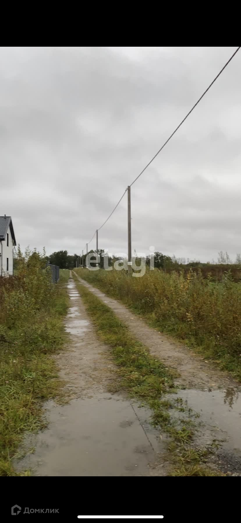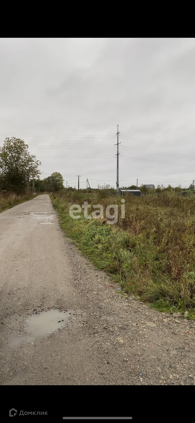 На границе участка стоит электрический столб.