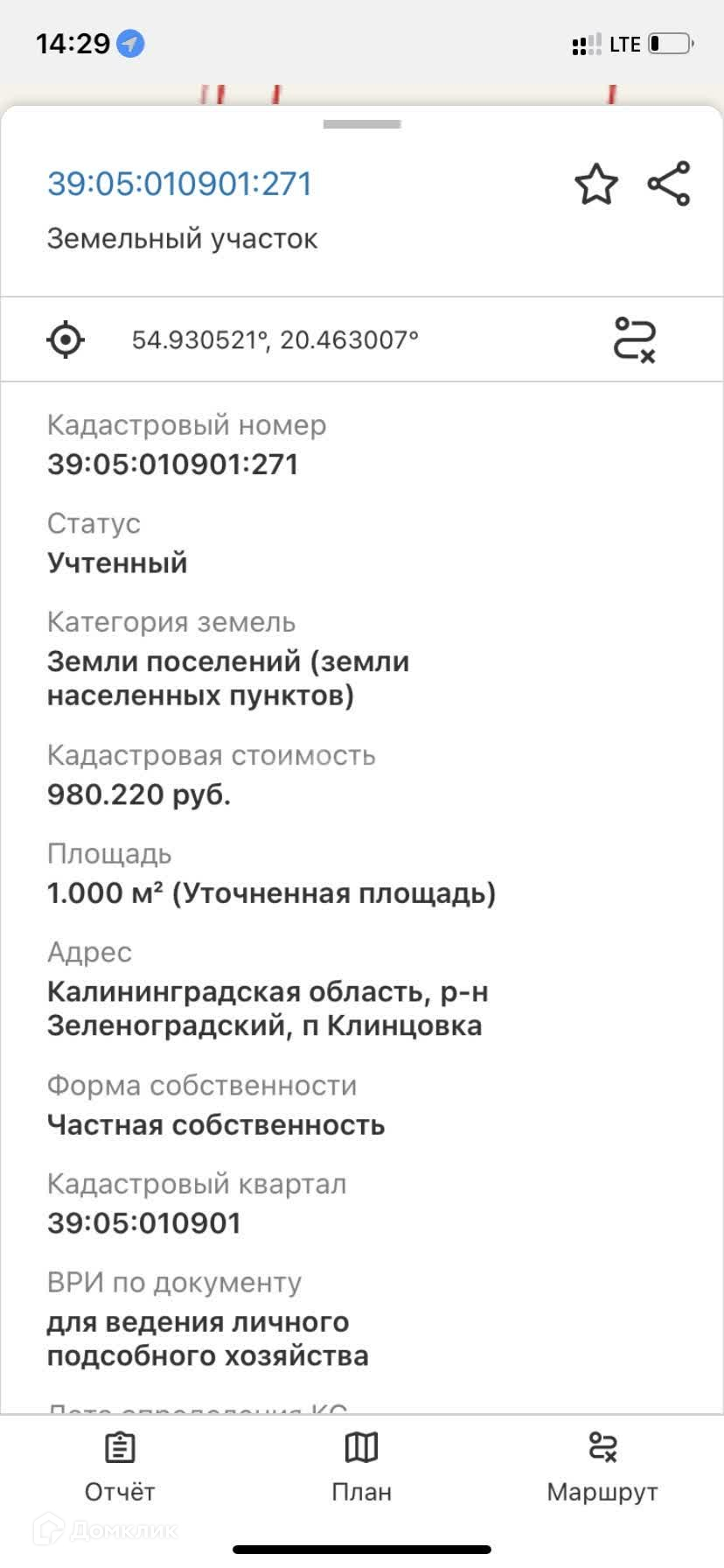 Участок в собственности.