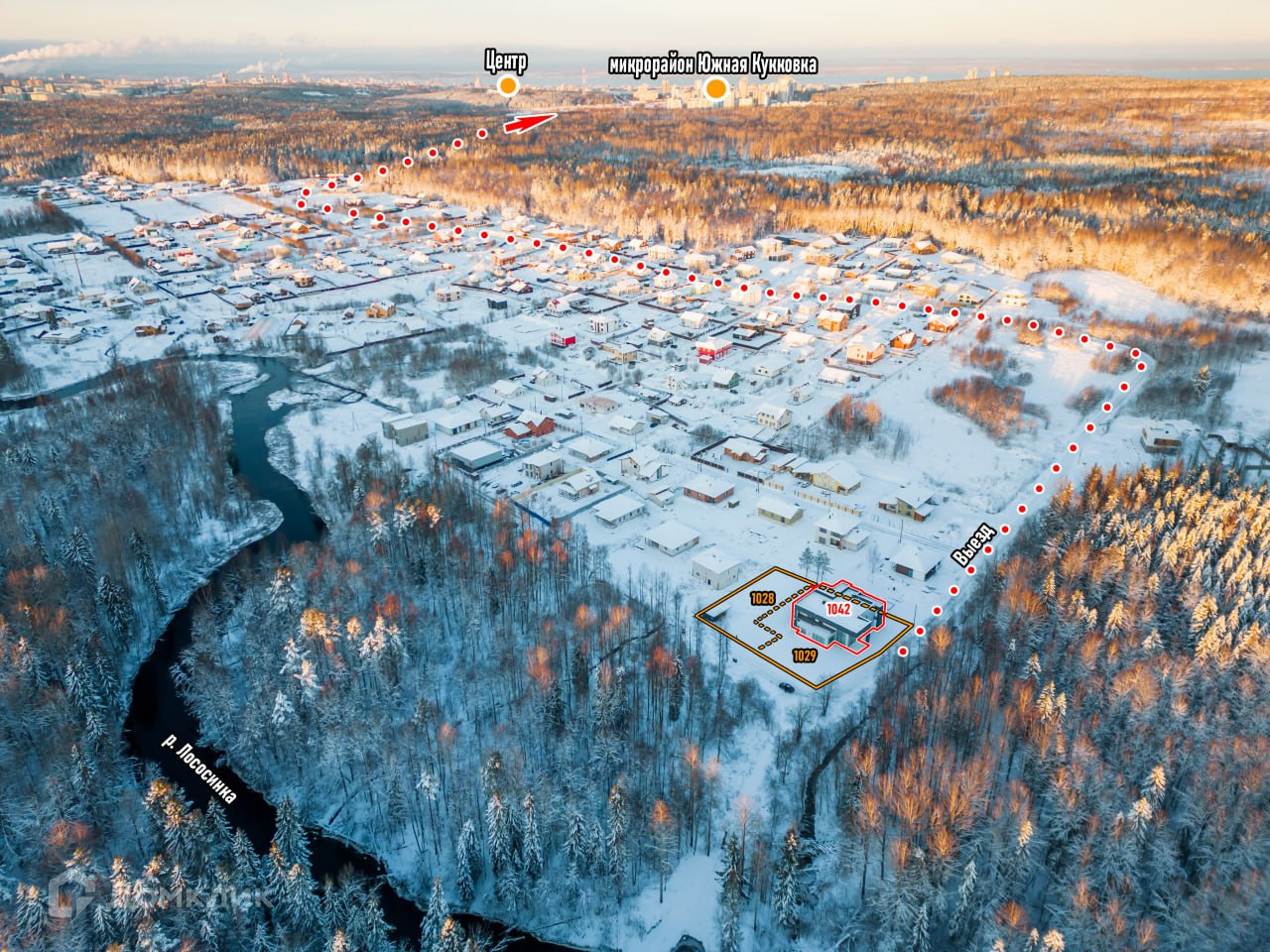 — Дом находится в элитном коттеджном поселке: урочище "Лососинка", на берегу одноименной реки, в которой действительно водится Лосось и много другой рыбы.