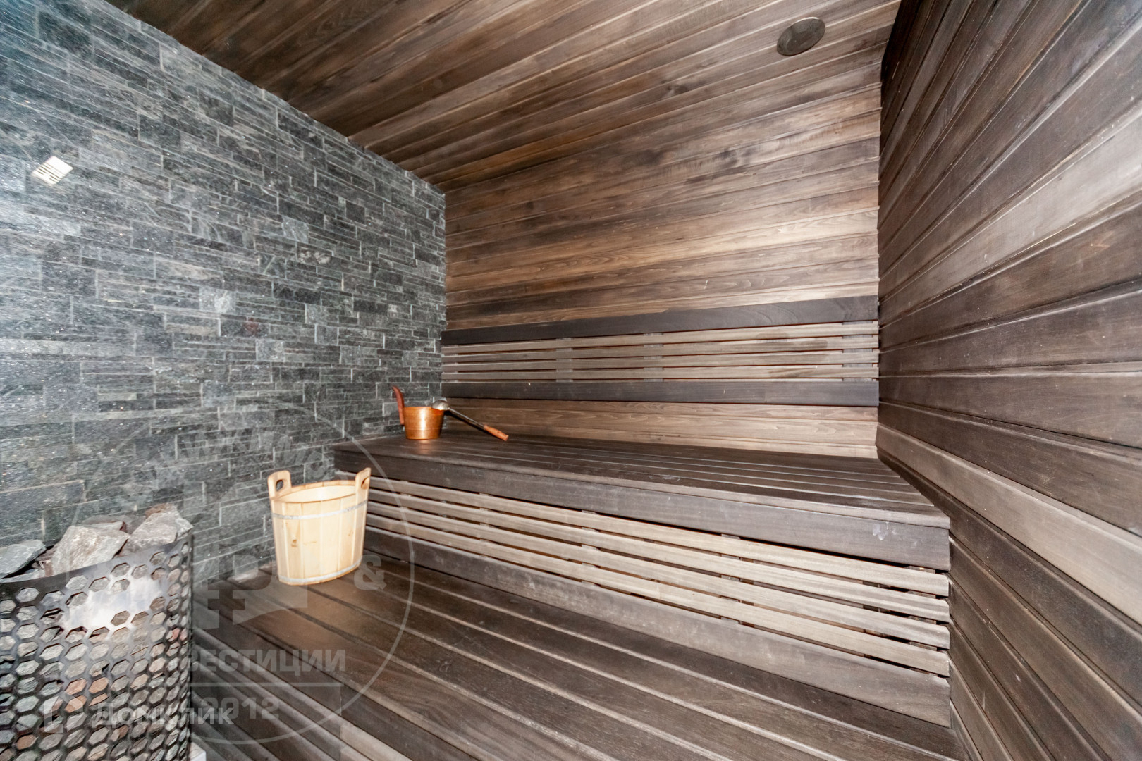 — Второй этаж: несколько отдельных комнат, большая терраса, изолированныя межкомнатными дверями, просторная гардеробная, ванная комната с шикарнейшей сауной и туалетом и т.д.