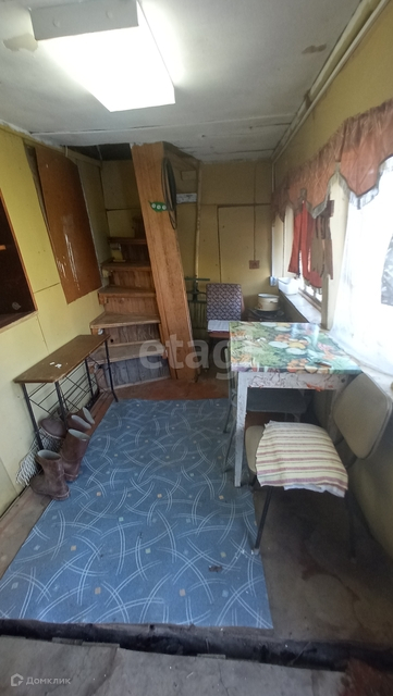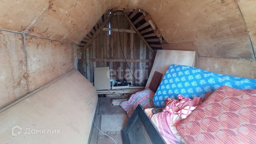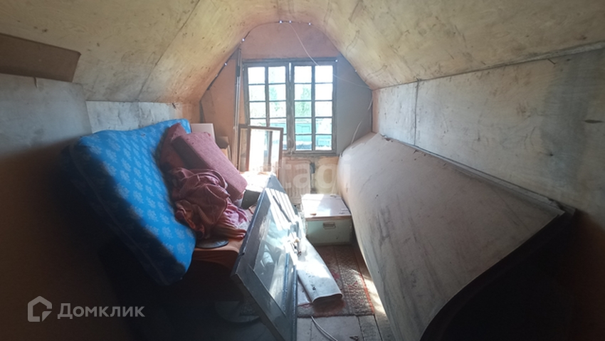 Домик 1 этажный с мансардой, каркасный, без печки. На первом этаже прихожая/кухня, отдельно комната. На втором этаже маленькая комнатка, требующая ремонта (недостроили).
