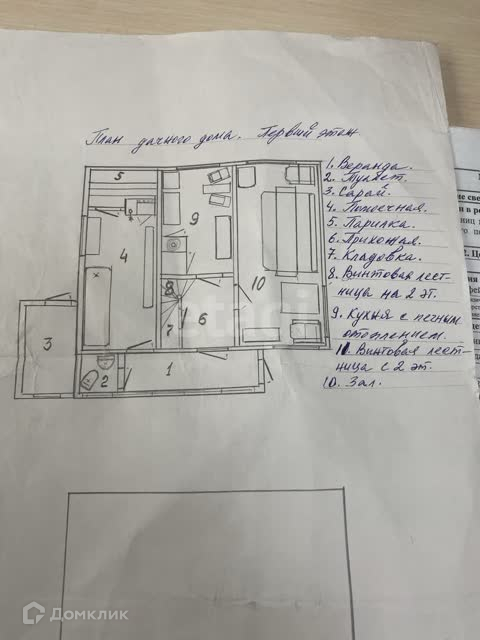 На первом этаже находится веранда, прихожая, кухня с русской печкой, комната отдыха и баня.