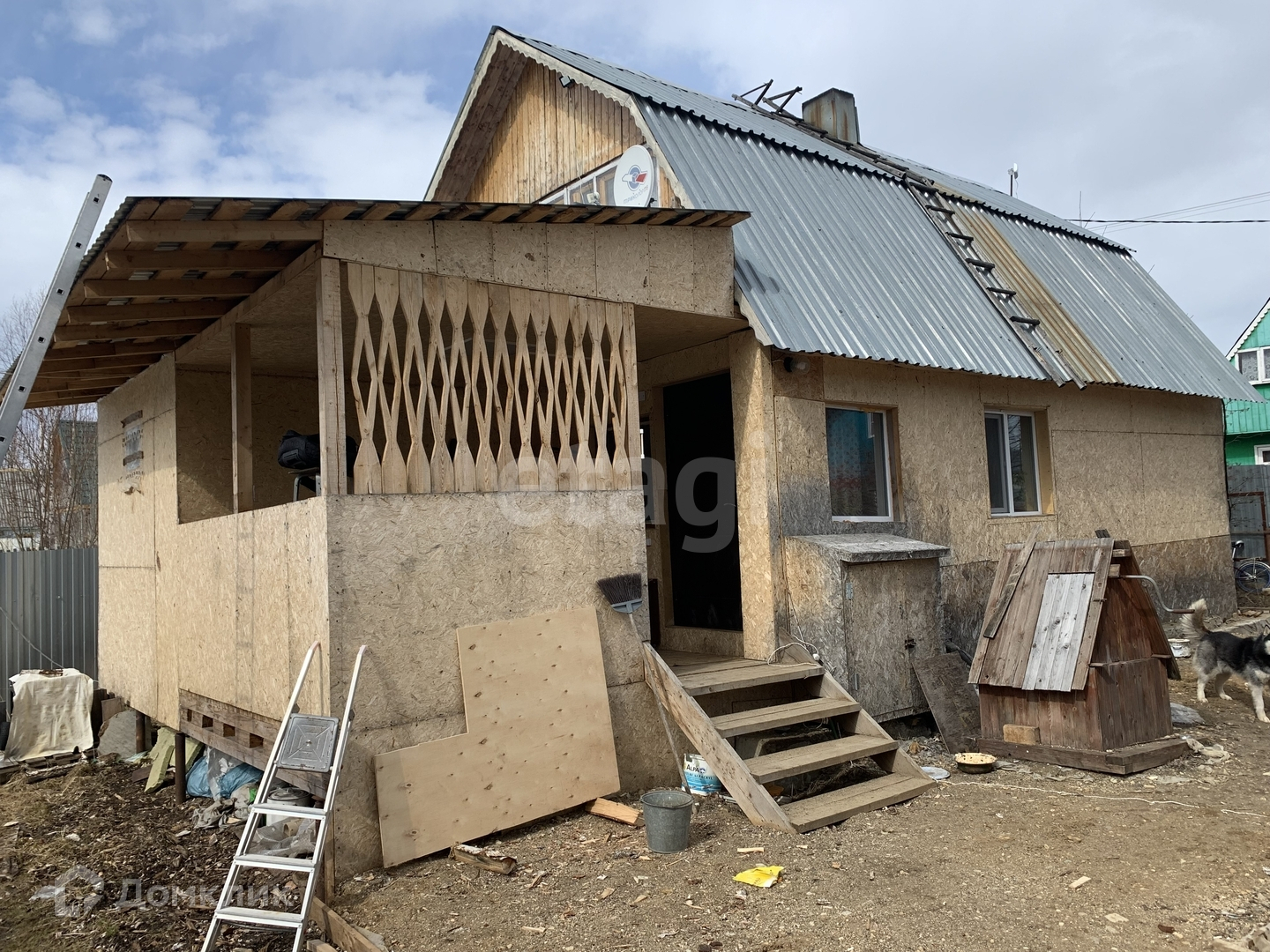 На участке имеется: дом, колодец, баня(парилка отдельно), сарай , три теплицы , курятник , две собачьи будки , пруд(с рыбами), Разработанный участок для посадки.