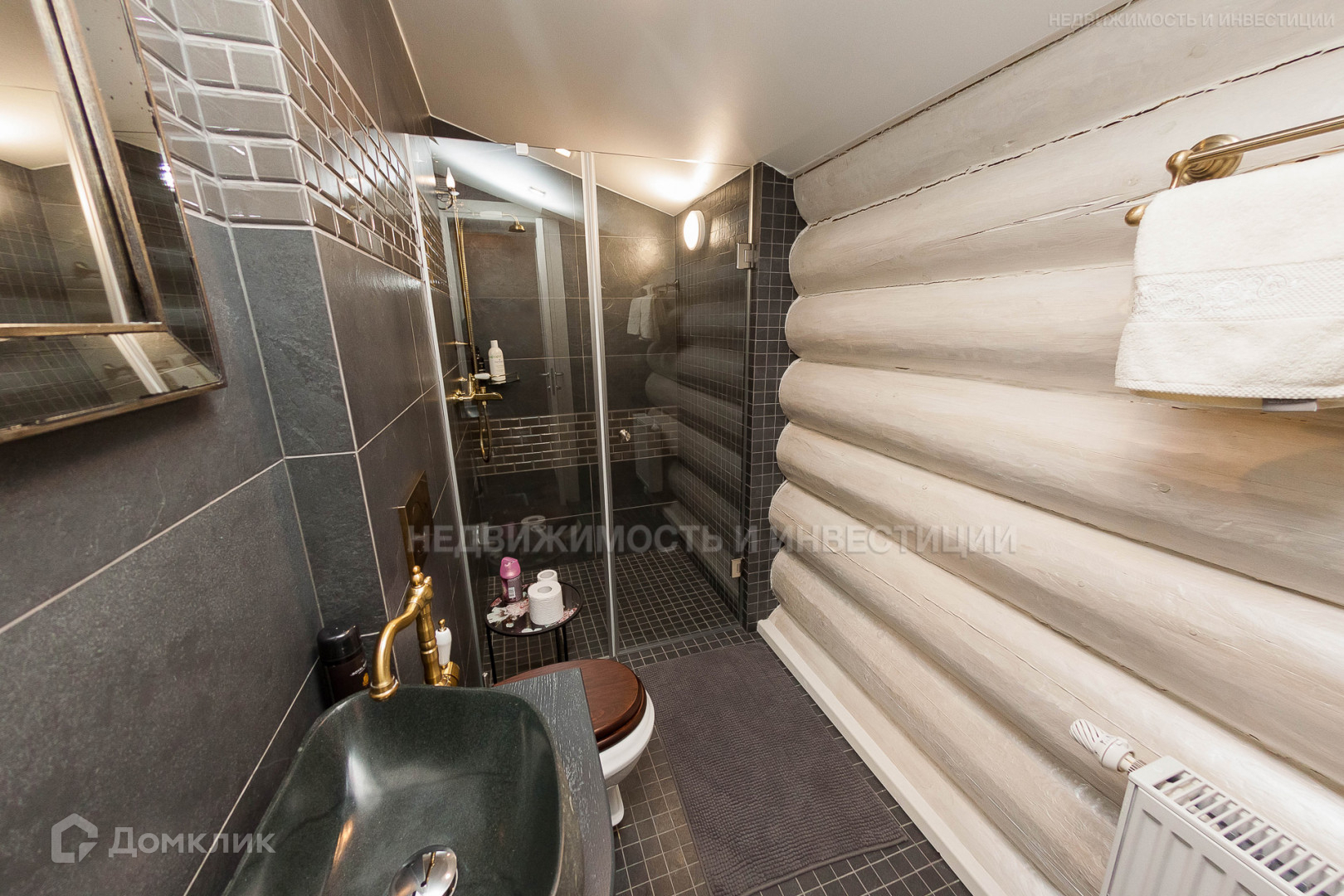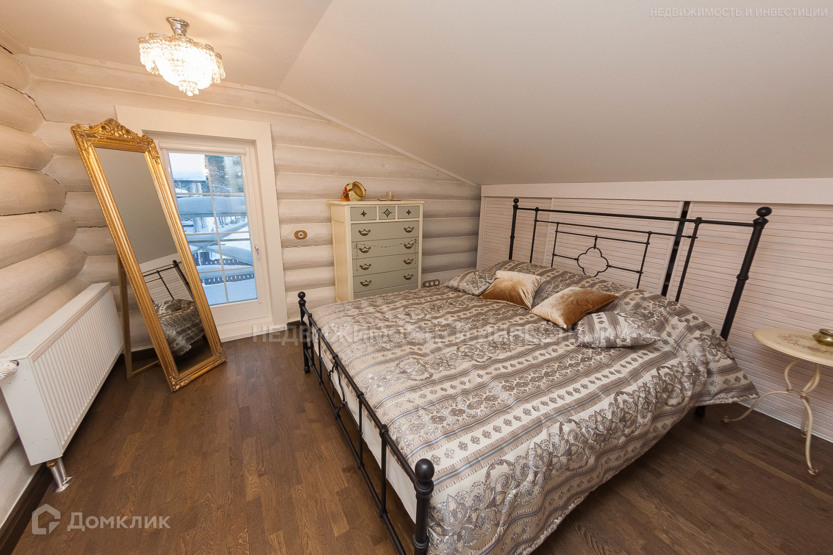 — Стены и перекрытия: рубленное бревно.