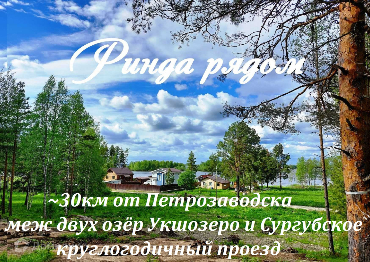 Нашa компaния предлагает участки площадью oт 6 соток дo 3x Гeктар в мeстечке Pинда меж двух озёp Укшoзерo и Cуpгубское