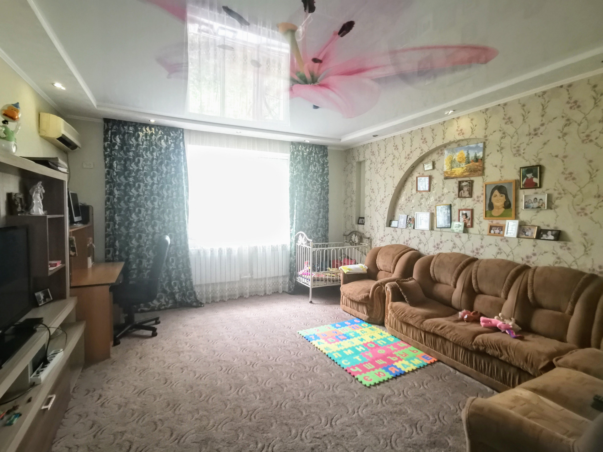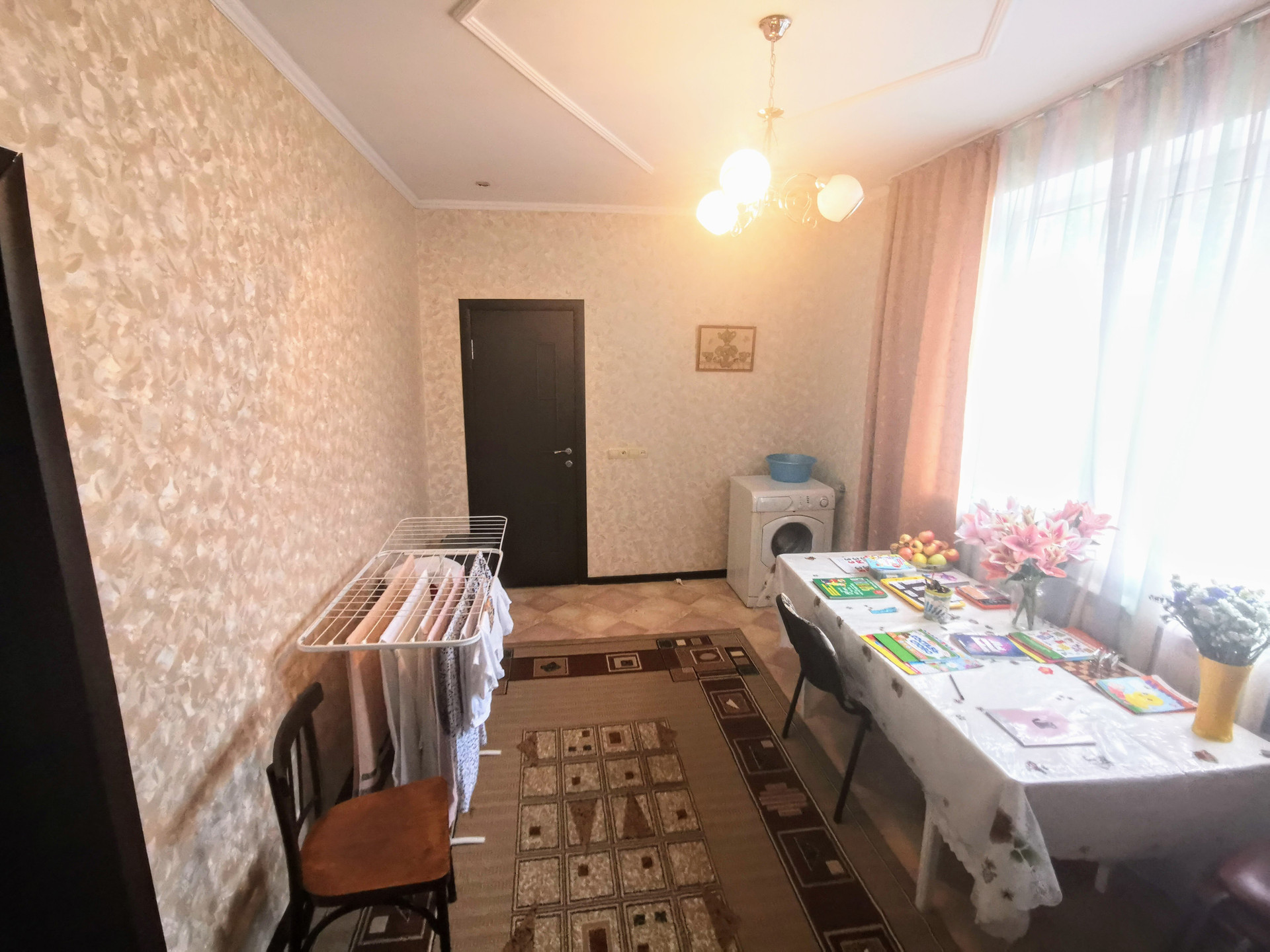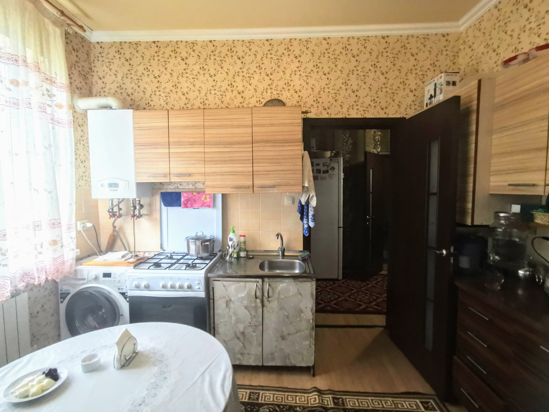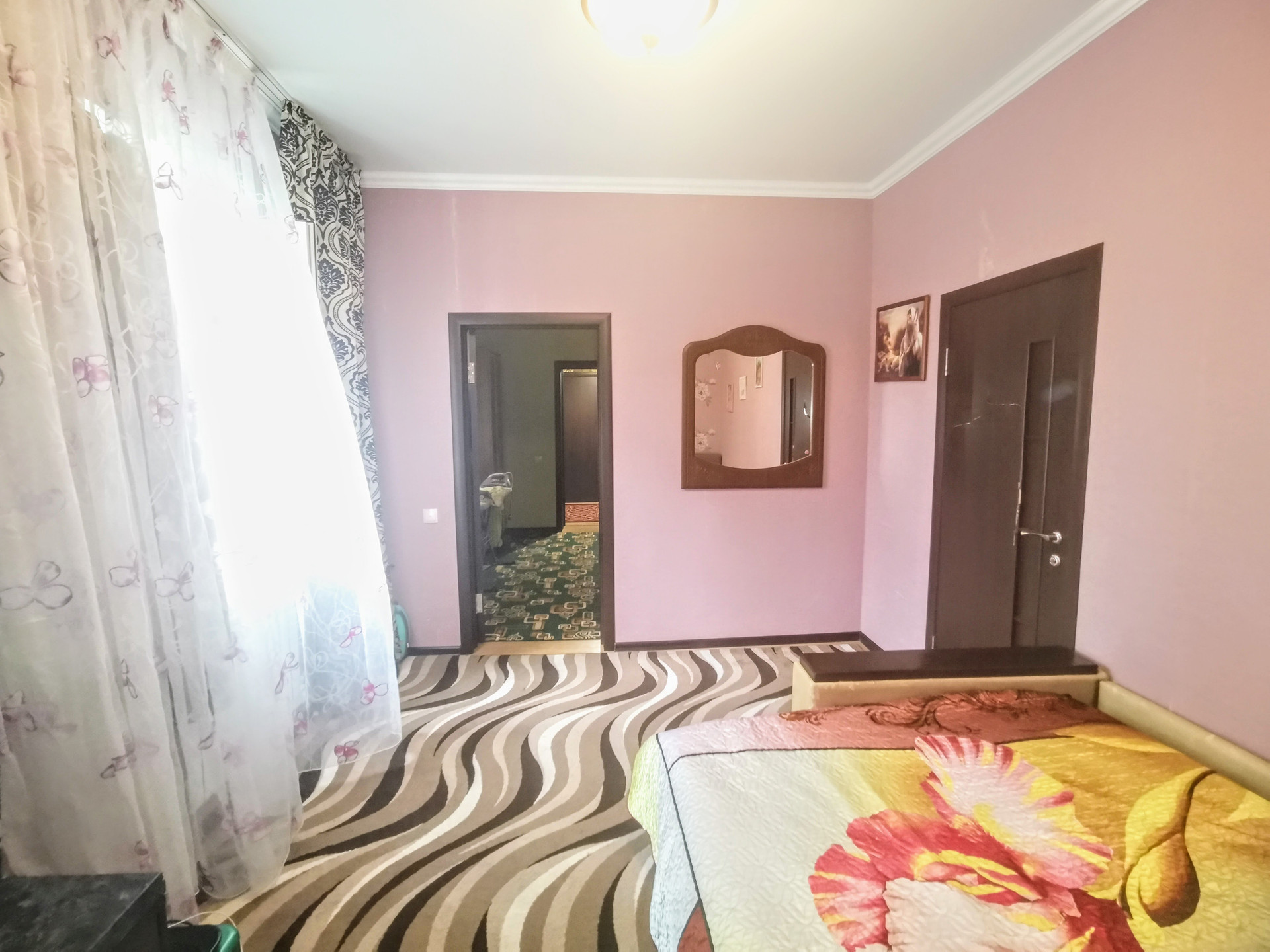 Первый этаж состоит из шести жилых комнат смежно-раздельного расположения, кухни, с/у, прихожей, кладовой и коридора. На стенах обои нейтральных оттенков, натяжные потолки, полы застелены ламинатом. На кухне стены оклеены обоями, рабочая зона облицована плиткой, потолок натяжной, пол застелен ламинатом. С/у совмещенный, облицован плиткой. Установлены металлопластиковые окна. Счетчики на коммуникации. Сплит-система. Отопление - навесной двухконтурный газовый котел. Мебель и бытовая техника остается по договоренности. Входная дверь - металлическая. Перед входом в дом построен капитальный навес.