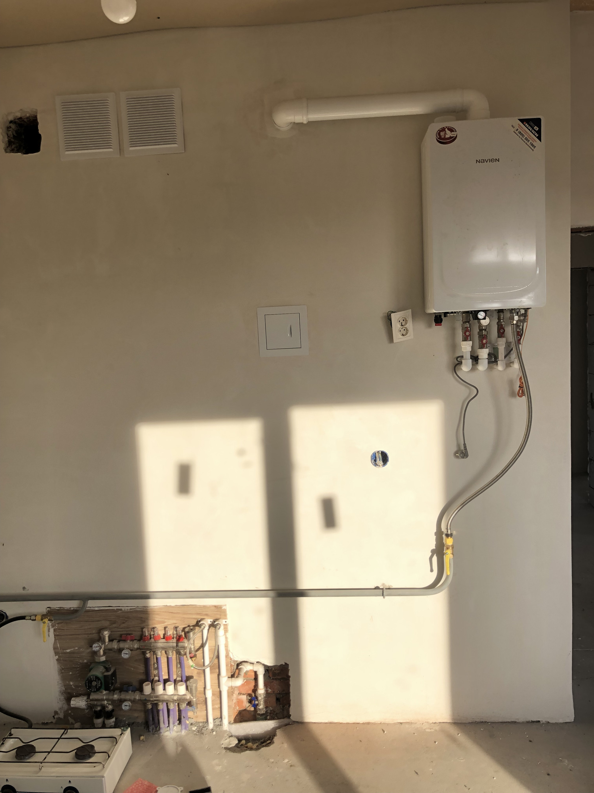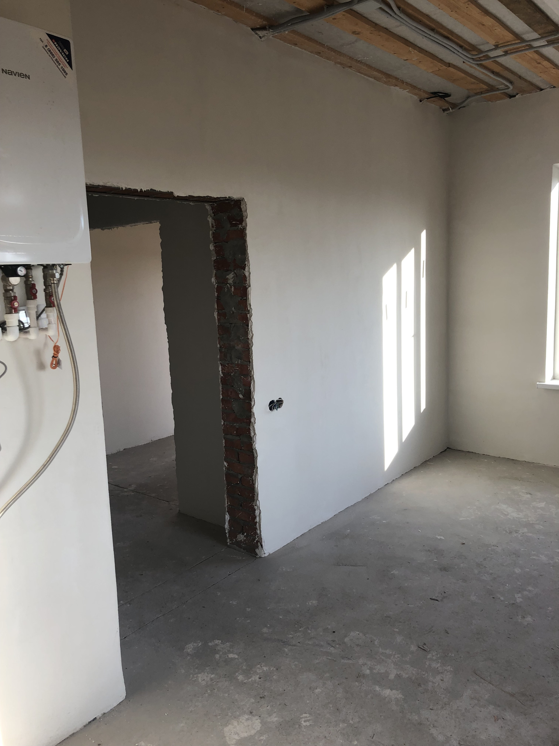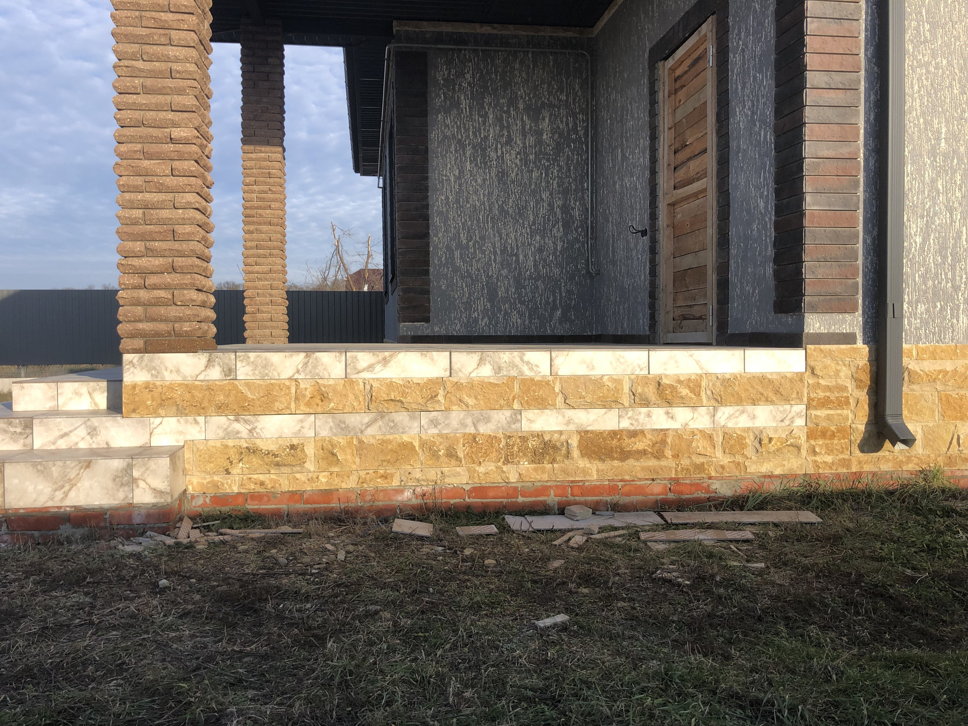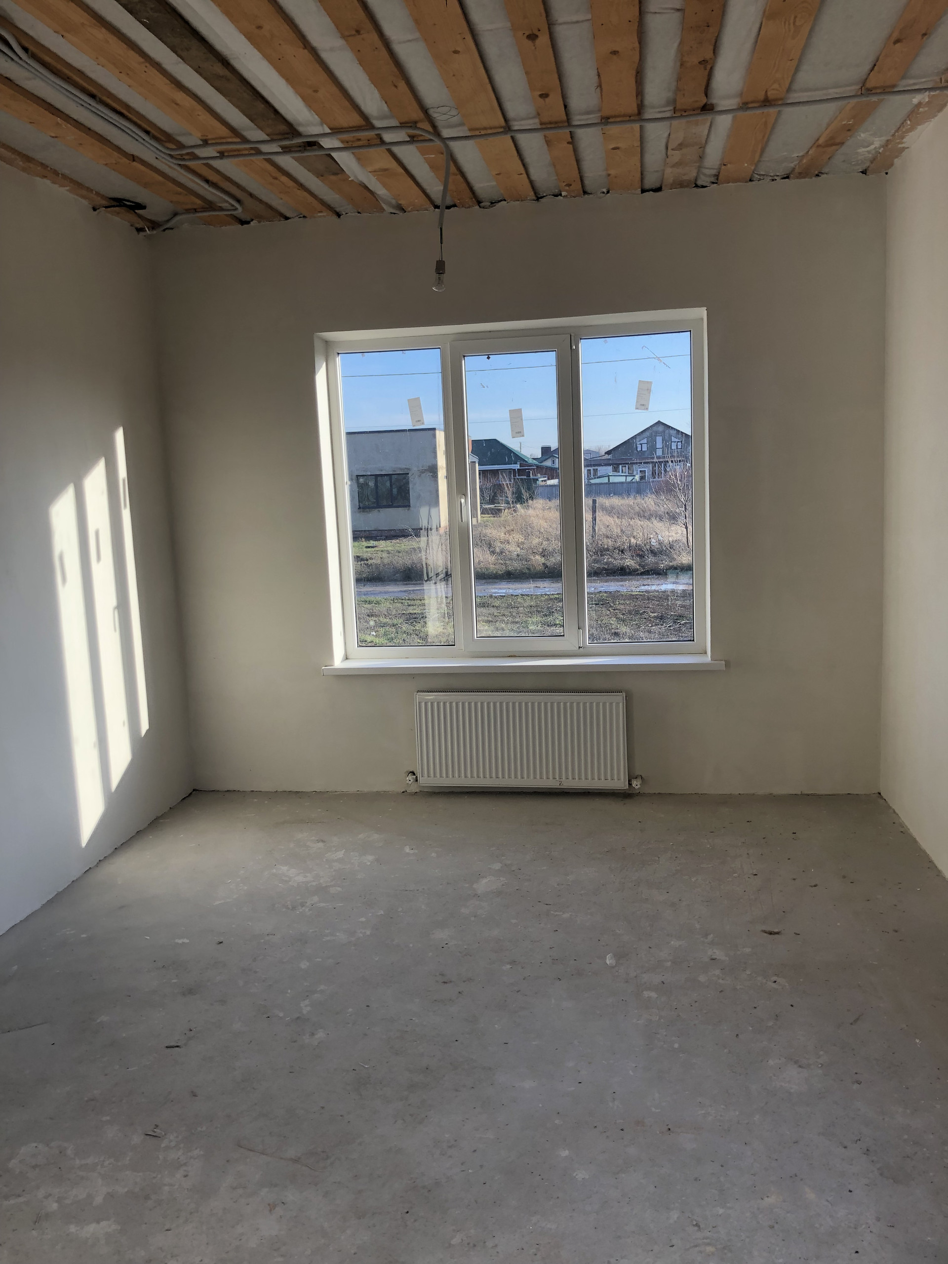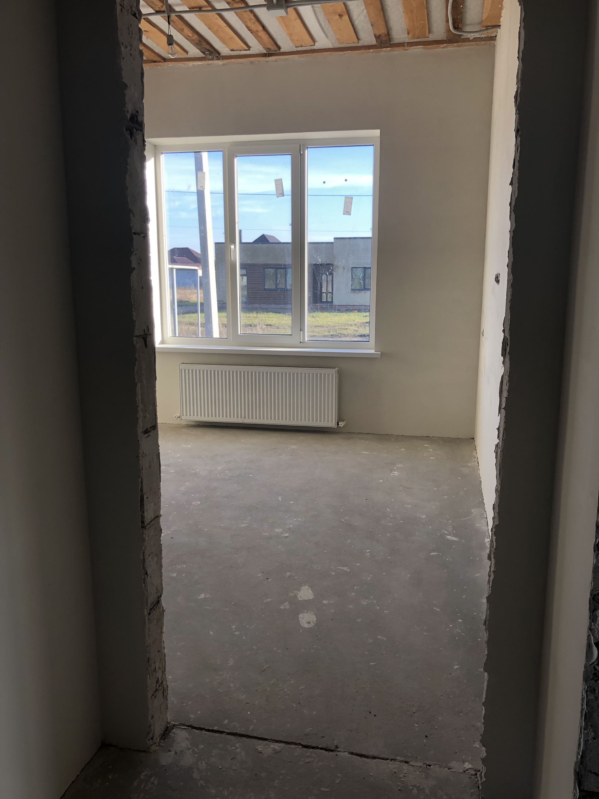 Дом с высоким цоколем, который отделан дагестанским камнем. Стены из газоблока, потолок утеплён в 3-и слоя, высота потолков 3 м., снаружи отделка - короед с окрасом. Предчистовая отделка (стены оштукатурены и ошпаклёваны), тёплые полы (тамбур, коридор, кухня, ванна), пол чистовой.  Дом газифицирован (котёл Navien 24 кВт.). Вода проведена, канализация – септик (2 ж/б кольца). В помещении кухни возведен дымоход на 4 вентканала. Роскошная терраса, с чердачным помещением, большие окна REHAU.