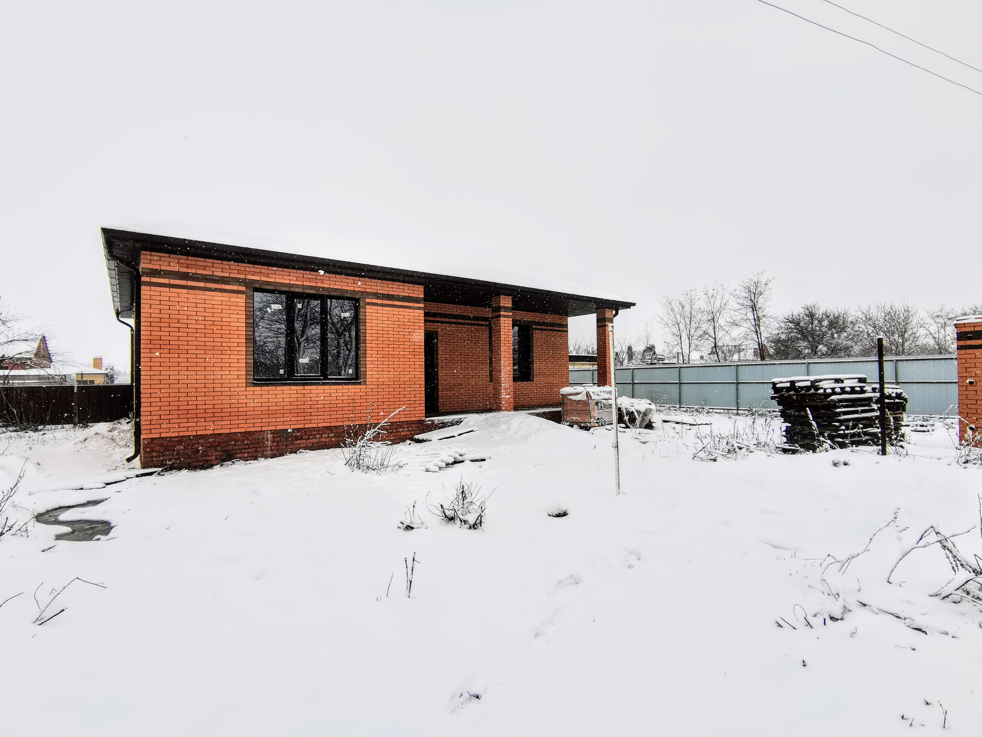 Высокий цоколь. Находится в состоянии черновой отделки. Состоит из трех комнат раздельного расположения, большой кухни, совмещенного с/у и коридора. Полы залиты бетонной стяжкой, потолки утеплены минеральной ватой в два слоя. Установлены металлопластиковые окна. Электричество и водоснабжение заведено, выполнена разводка канализационных труб. Входная дверь – металлическая. Канализация - септик. Перед входом капитальная терраса. Земельный участок 4,96 сотки. Металлопрофильный забор. Есть место для стоянки автомобилей. Подъездная дорога засыпана гравием.