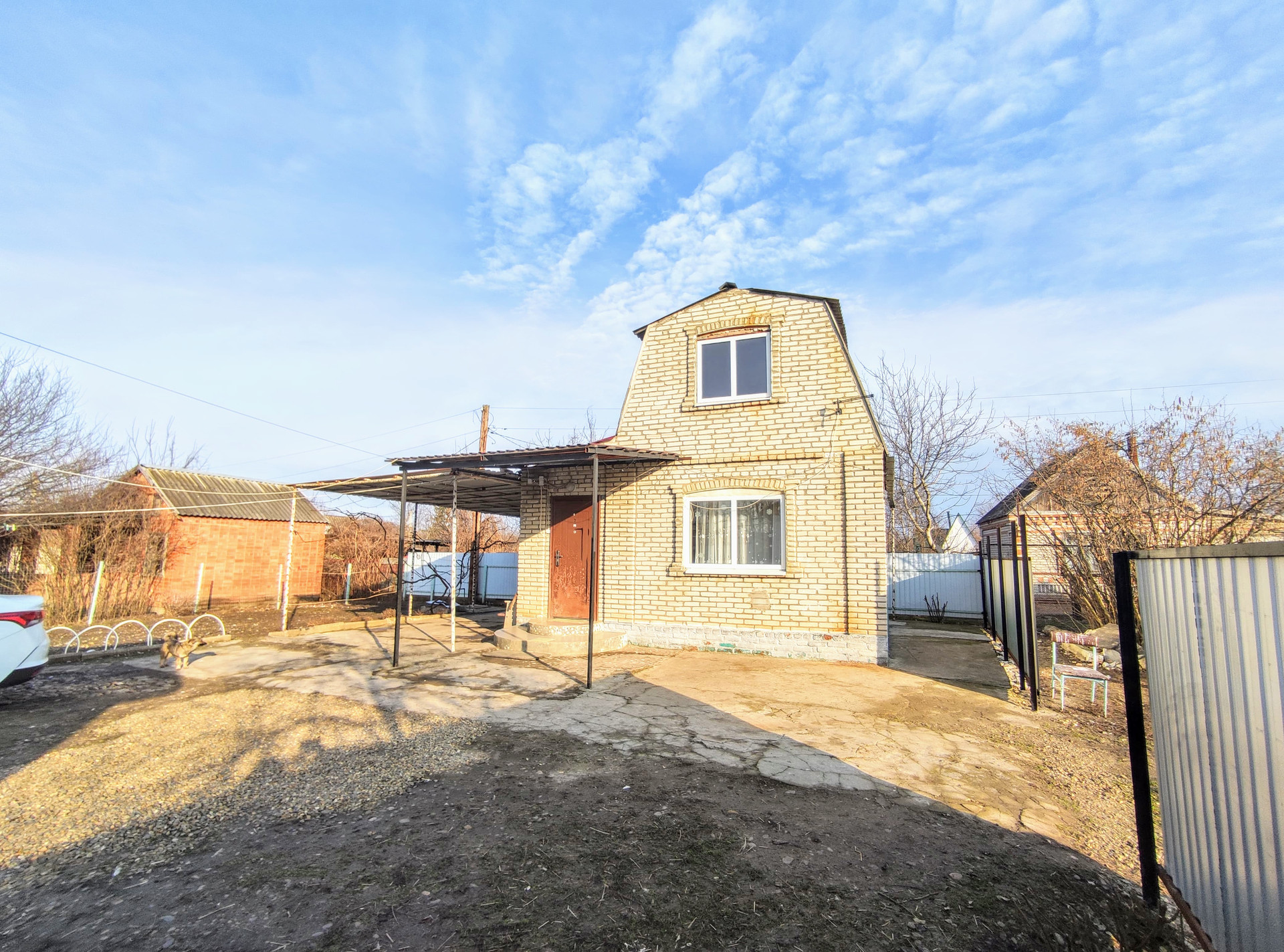 Из хоз построек: летняя кухня (стены окрашены колером, потолок обшит пластиковыми панелями, пол облицован плиткой. Установлены металлопластиковые окна, входная дверь - металлическая), помещения свободного функционала, уличные удобства. Канализация - септик. Ухоженный земельный участок 5,31 соток, с плодовыми деревьями и кустарниками. Металлопрофильный забор, ширина фасада 18,03 м..