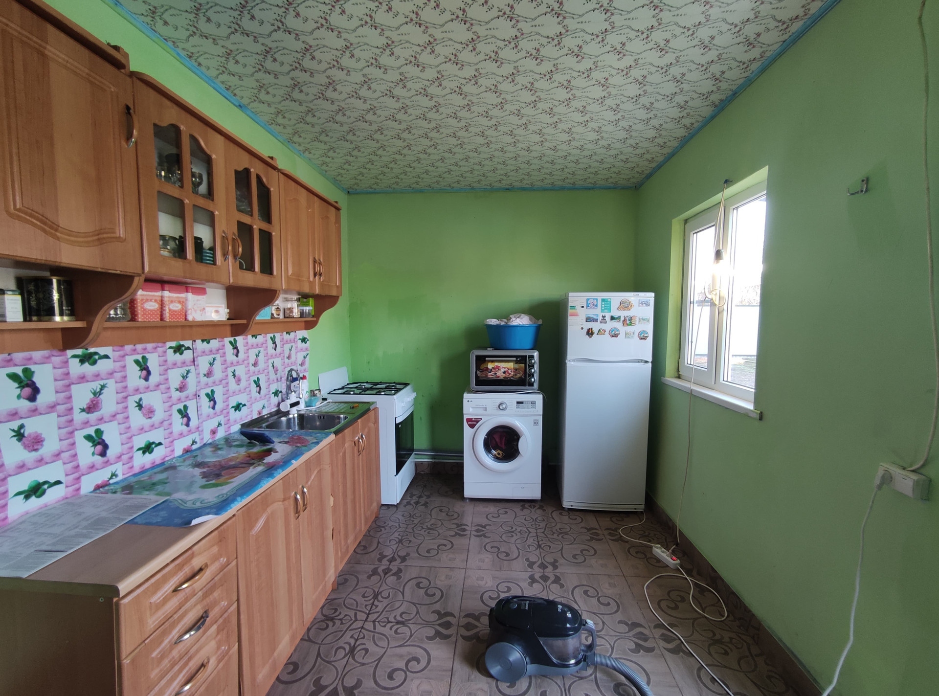Состоит из жилой комнаты и коридора. Стены и потолок окрашены колером, пол облицован плиткой - система “теплый пол”. Коридор обшит листами ОСП. Установлены металлопластиковые окна. Счетчики на коммуникации. Есть подвал. Входная дверь - металлическая. Перед входом в дом построен капитальный металлопрофильный навес.
