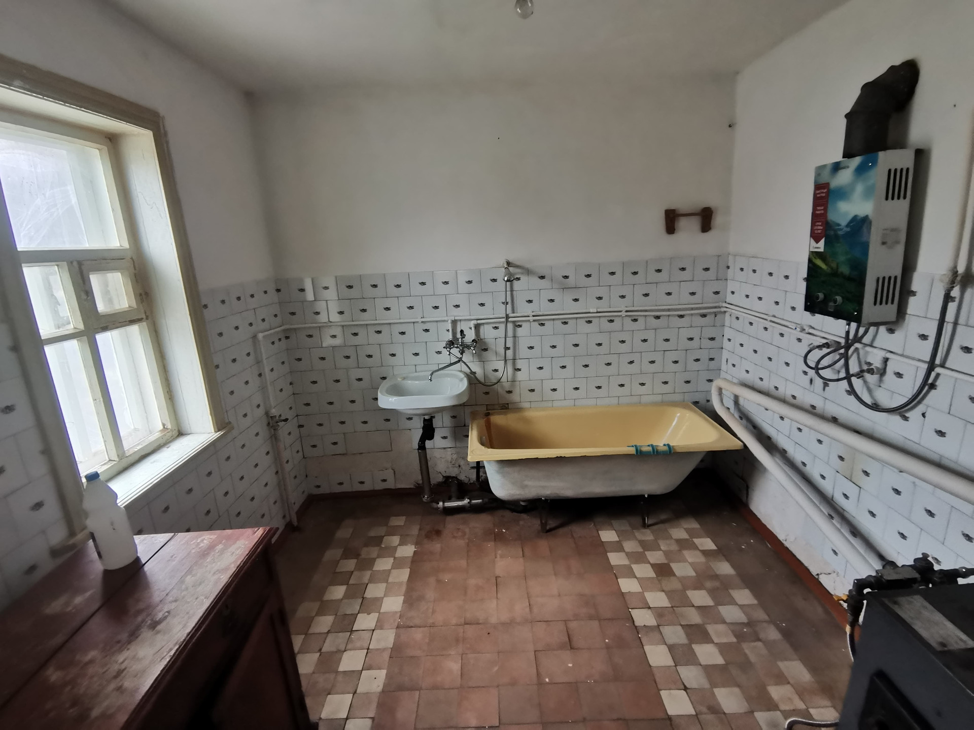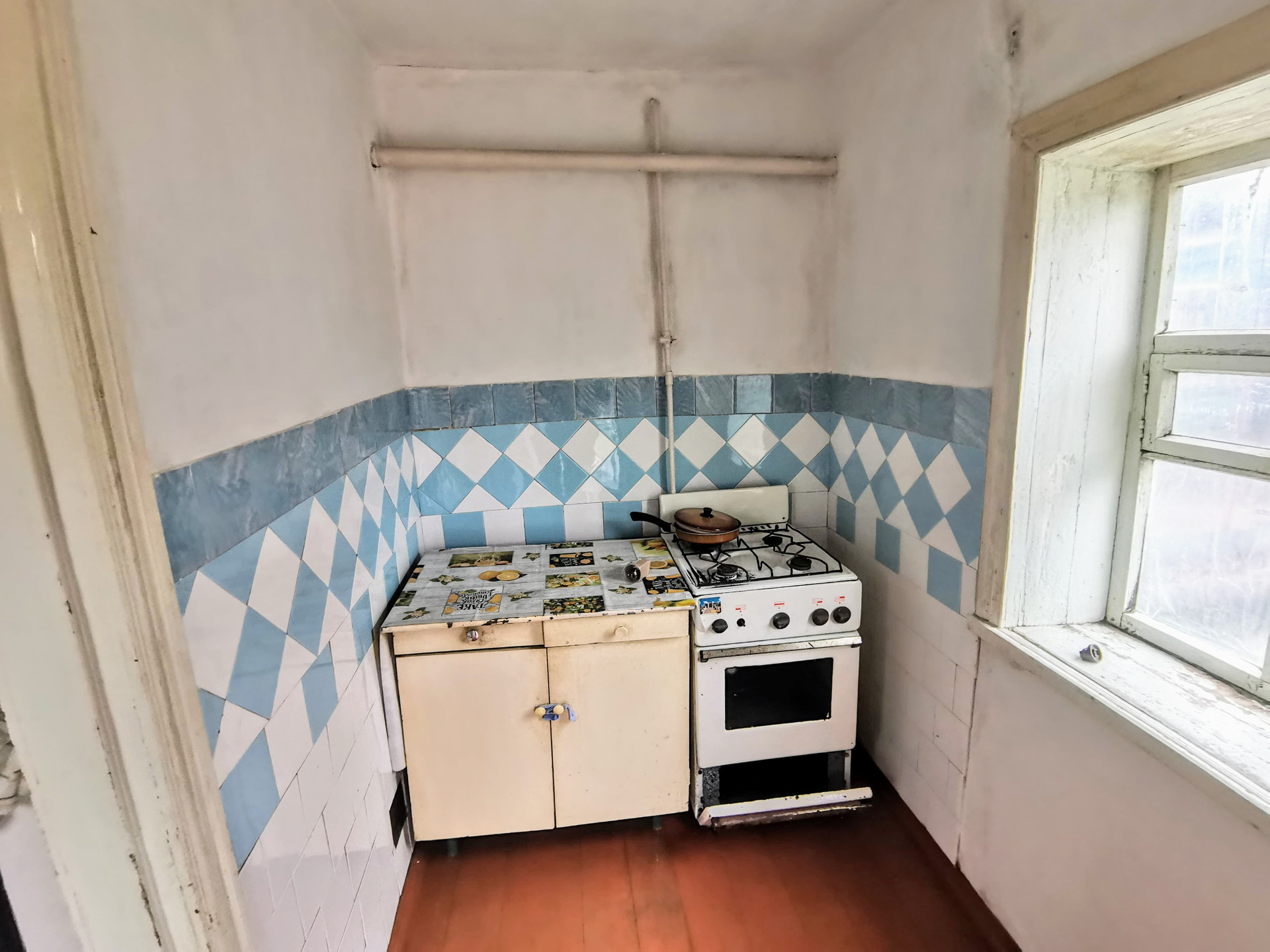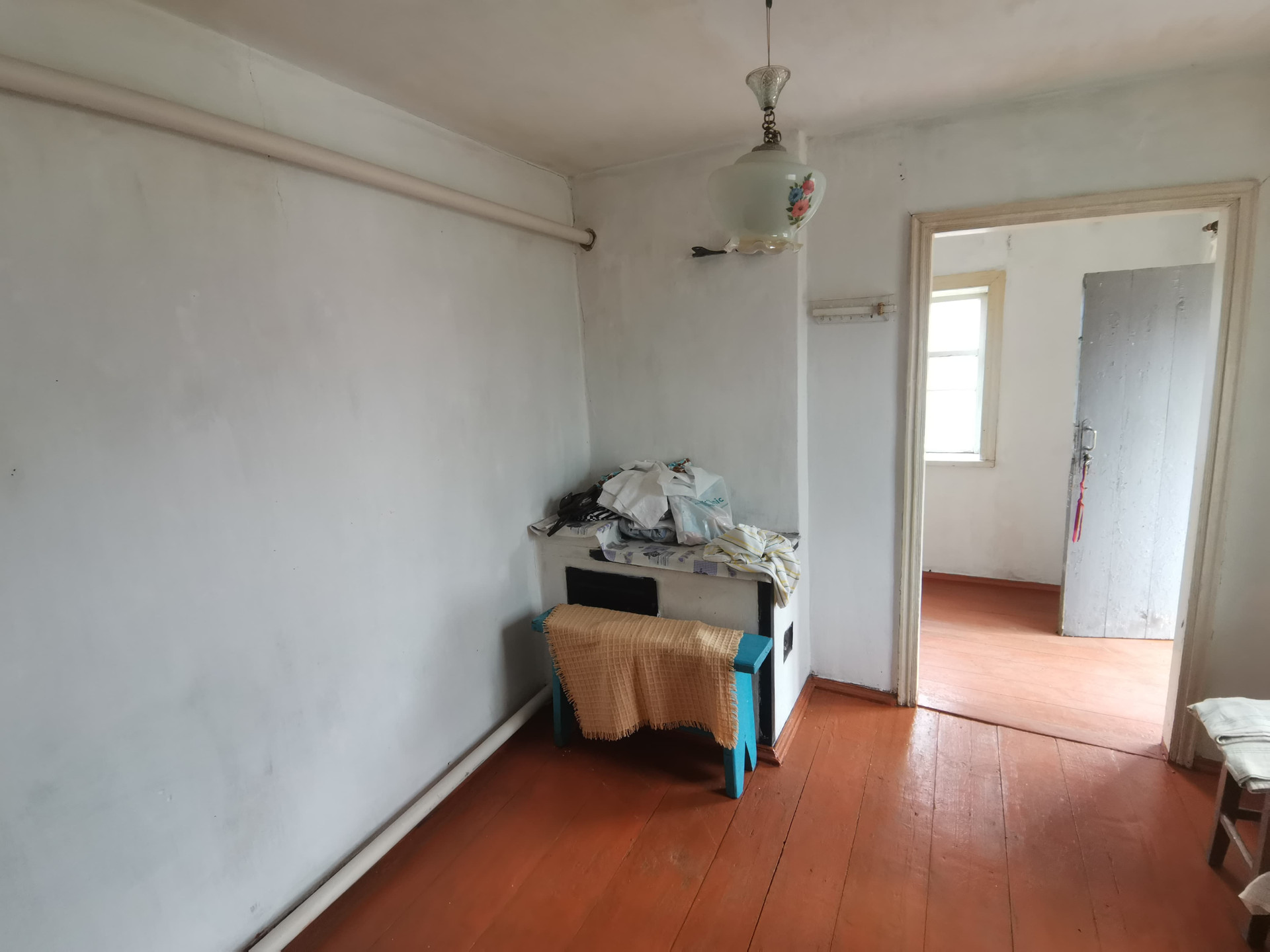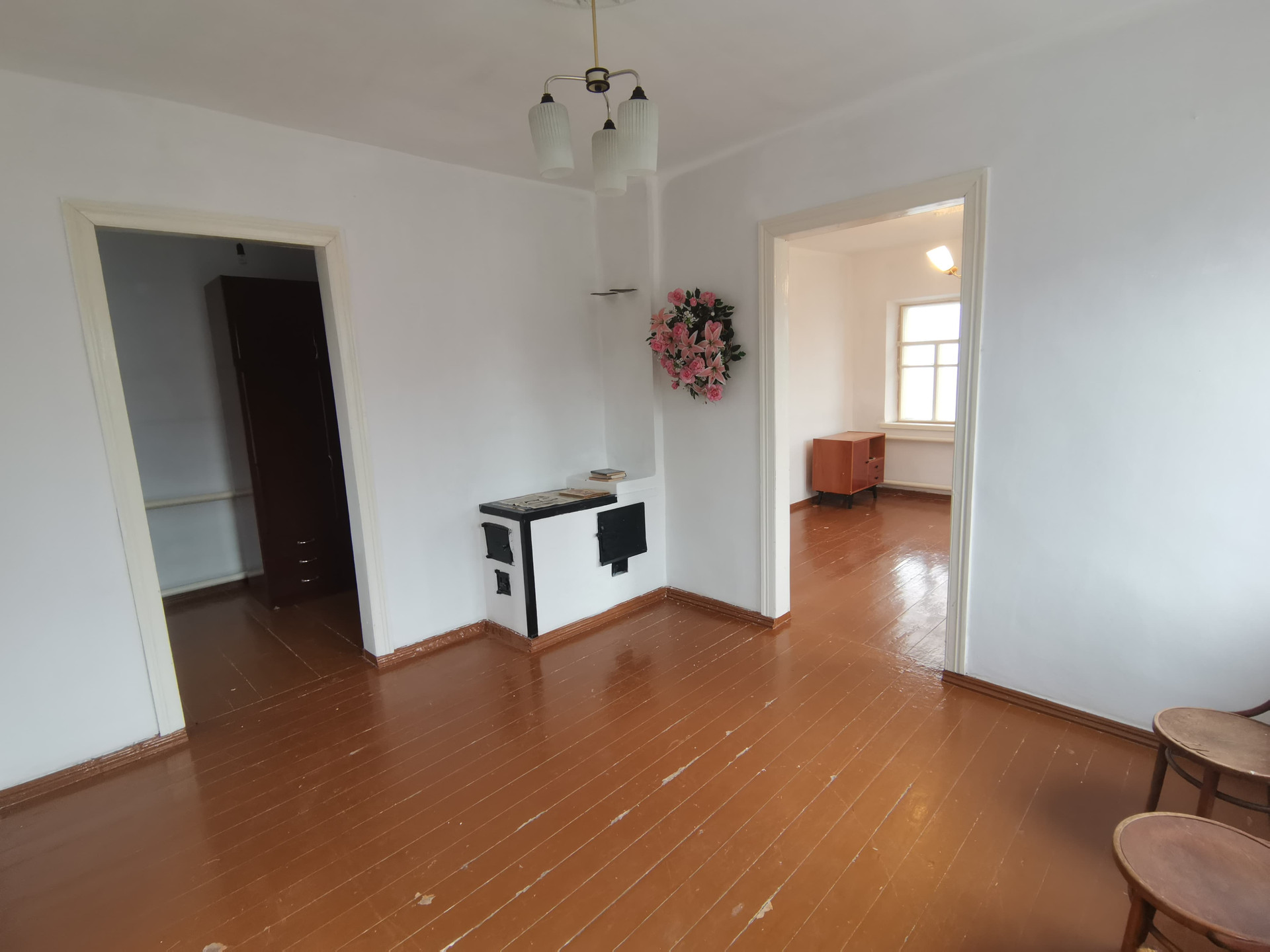 Состоит из четырех жилых комнат смежно-раздельного расположения и коридора. Во всем доме стены и потолки побелены, полы - дощатые. Установлены счетчики на все коммуникации. Отопление - газовый котел + печь. Входная дверь - деревянная. Рядом с домом стоит отапливаемая летняя кухня со всеми коммуникациями и с ванной комнатой. Установлен автоматический газовый водонагреватель. Отопление - напольный газовый котел. Входная дверь - деревянная.