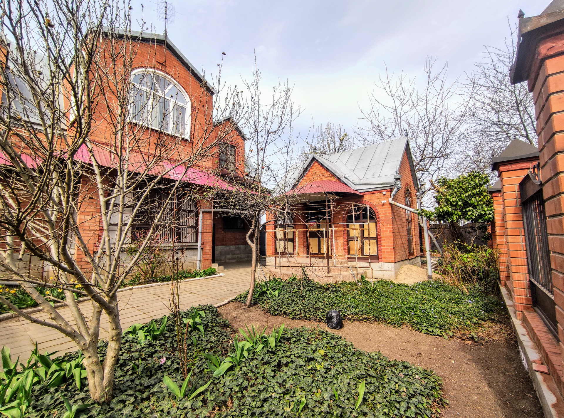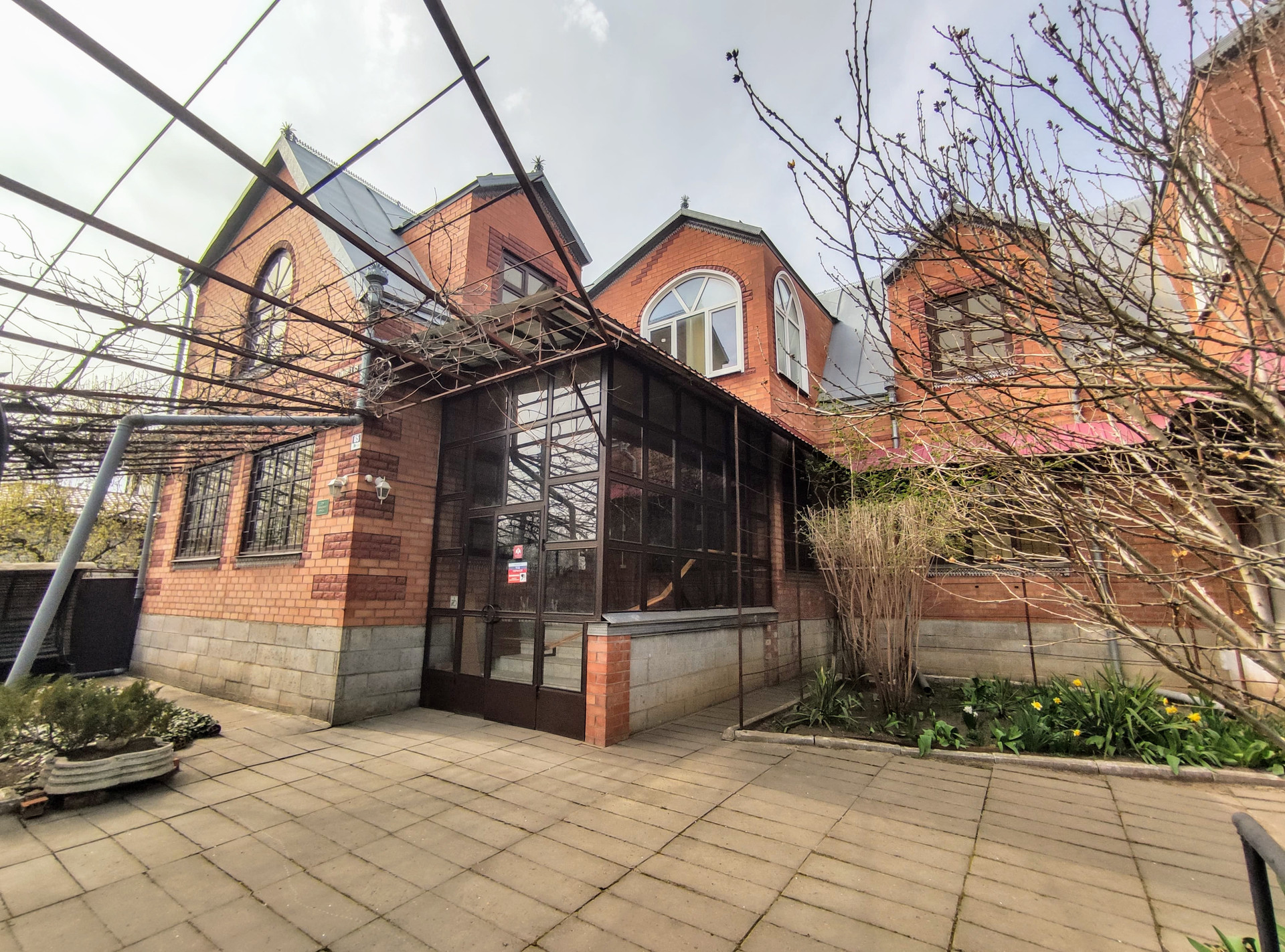 Из хоз.построек: кирпичный гараж со смотровой ямой, кирпичная постройка без ремонта с двумя помещениями свободного функционала. Канализация - септик. Ухоженный земельный участок 5,54 соток, с плодовыми деревьями (вишня, груша, айва, яблоня, слива, персик, грецкий орех и т.д.). Есть виноградник и палисадник. Свободная территория двора вымощена тротуарной плиткой. Кирпичный забор с металлическими кованными элементами, ширина фасадов 30,68 и 17,59 м.. Перед двором есть место для стоянки автомобилей.