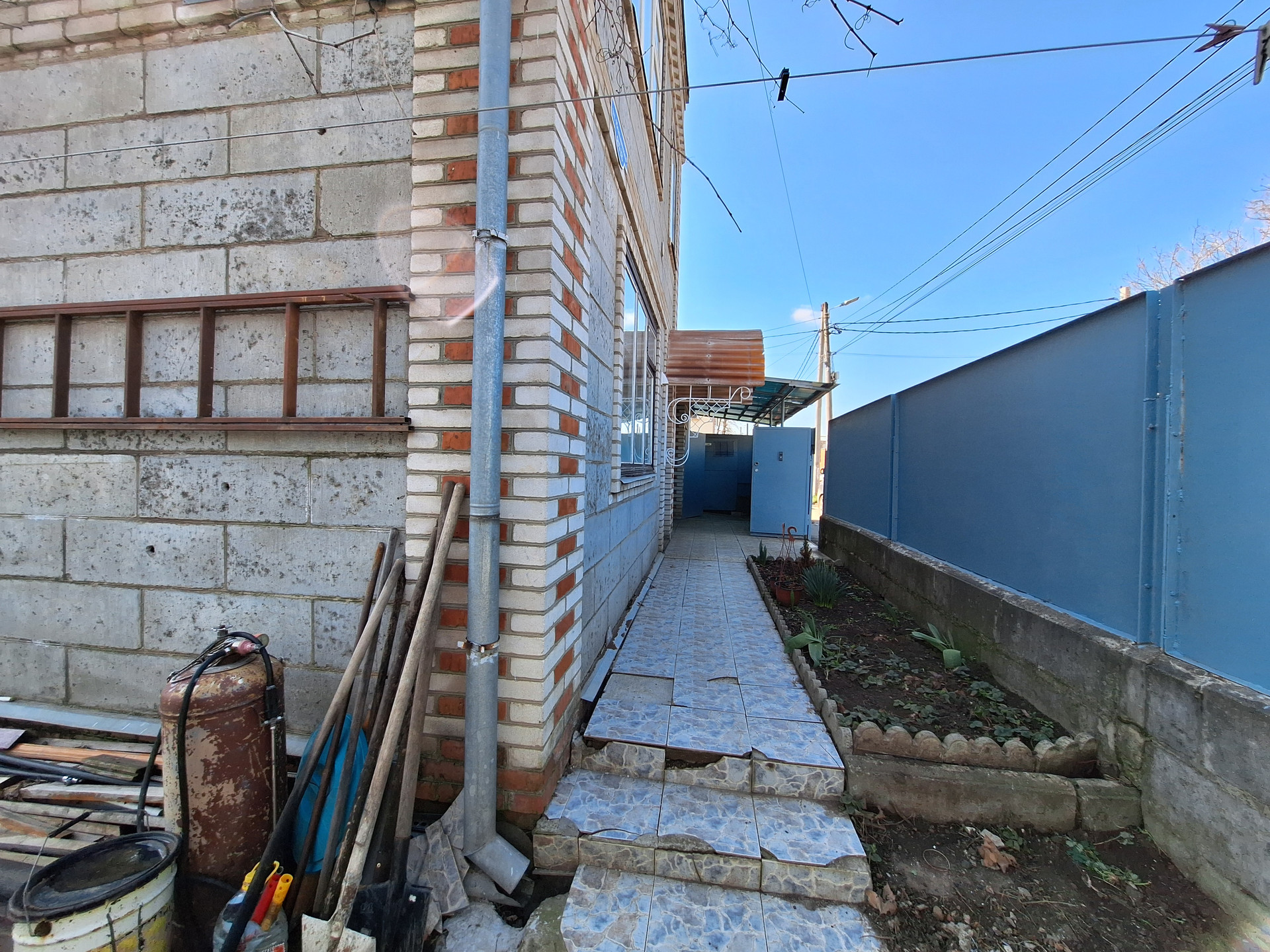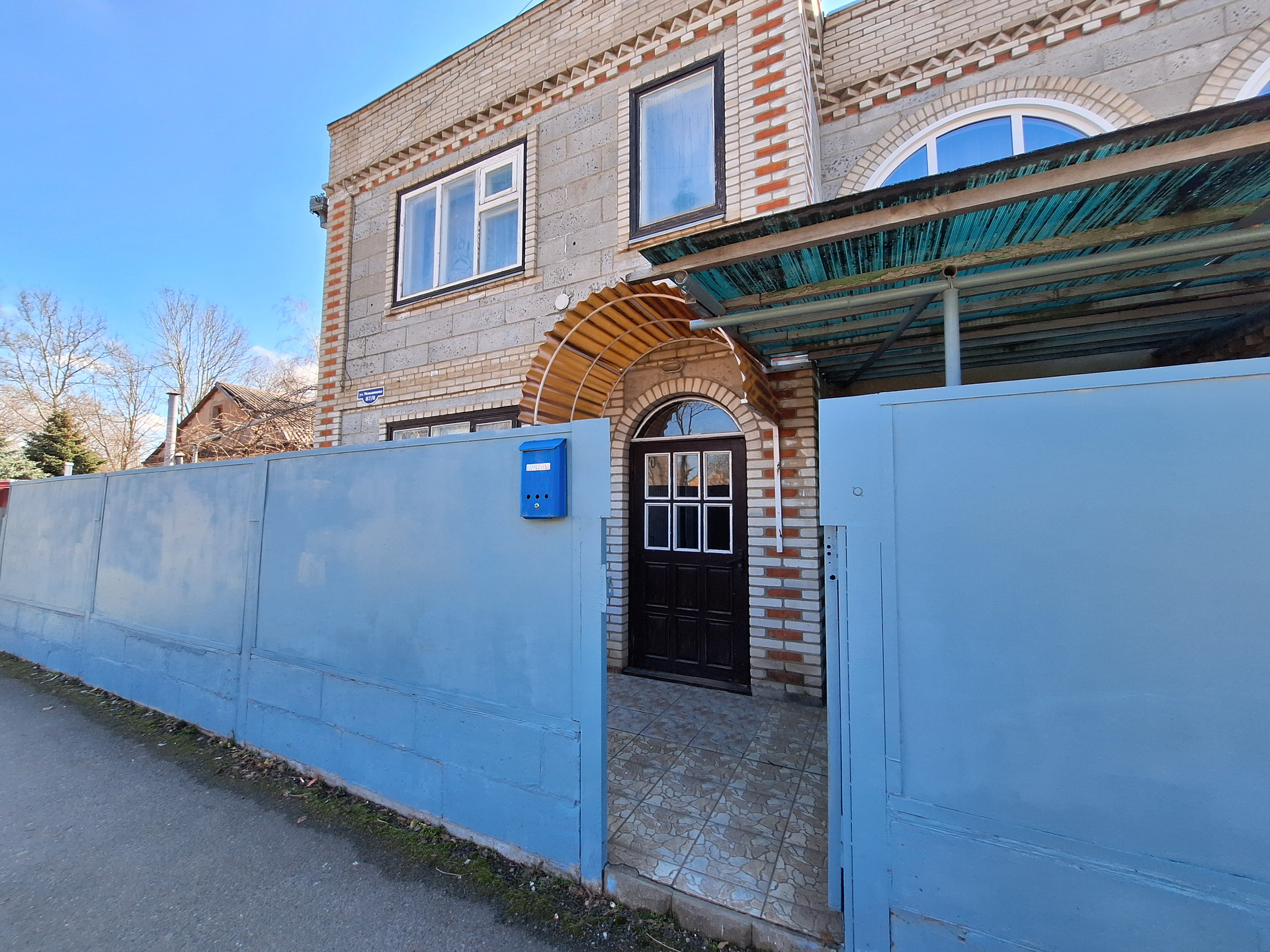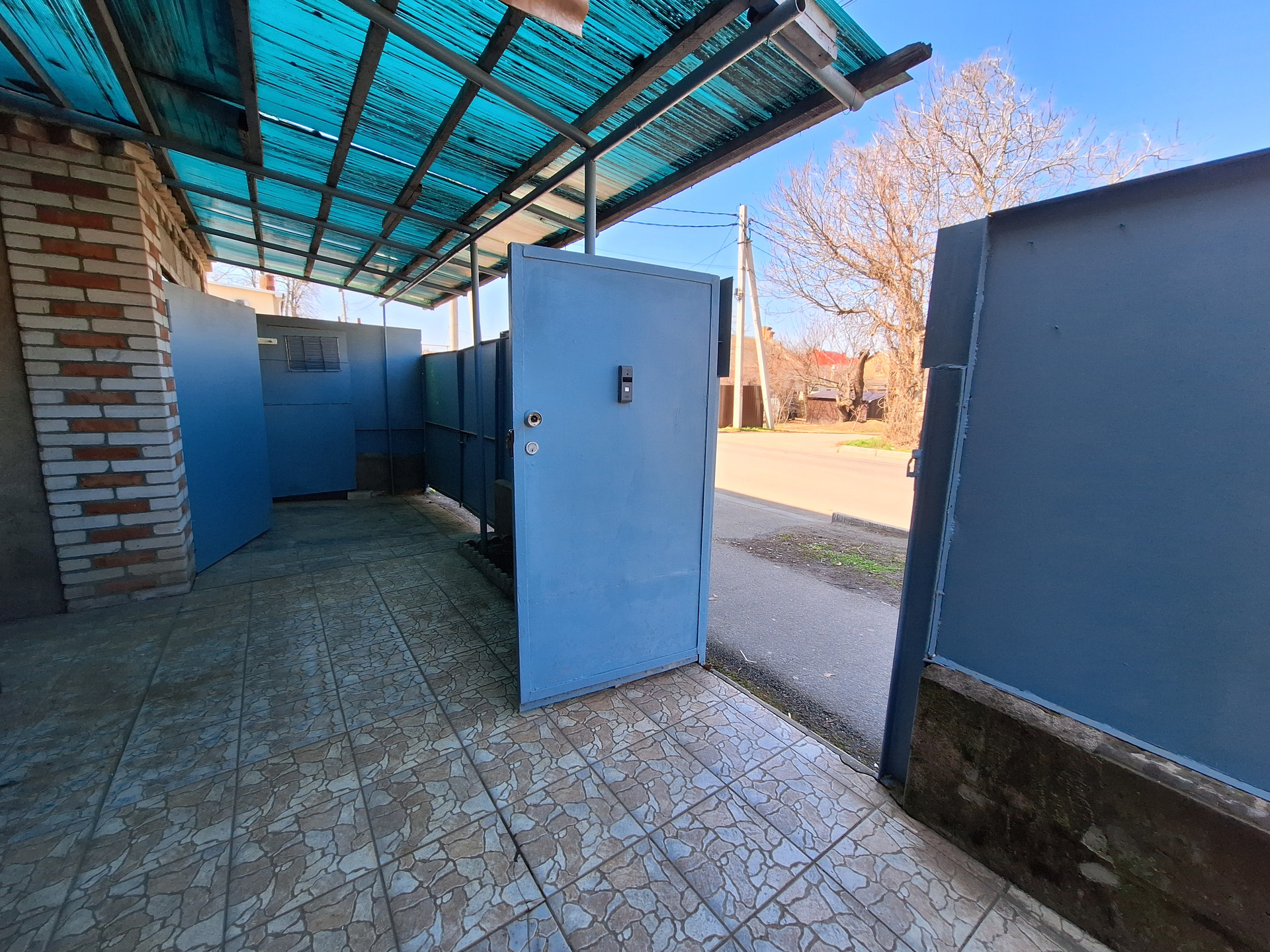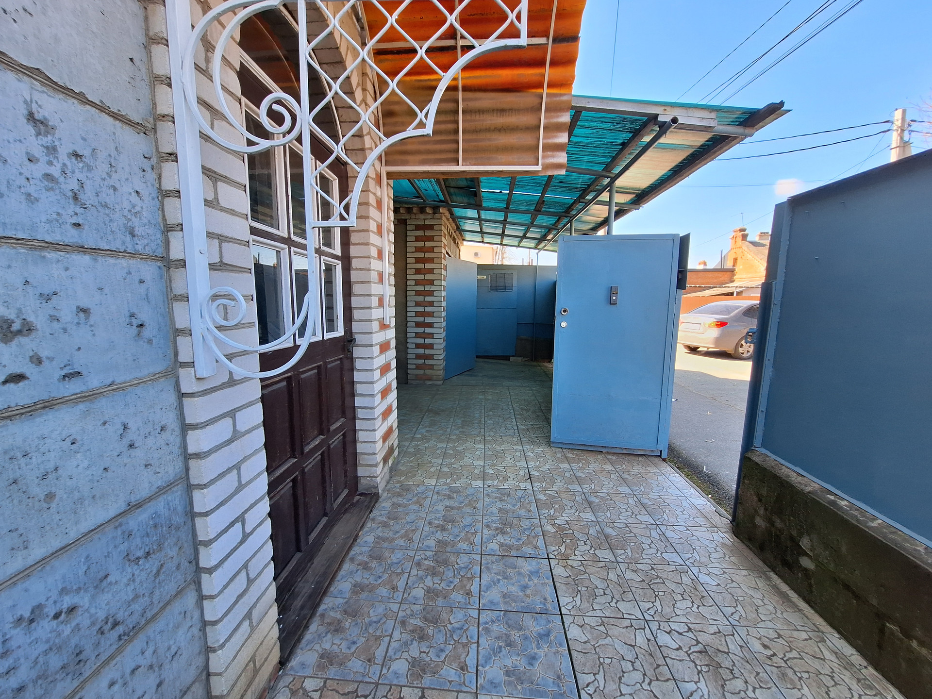 Во двор имеется заезд под гараж. Установлен домофон. Крыша -шифер.