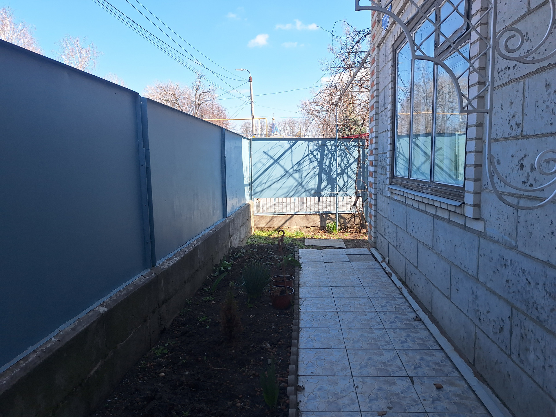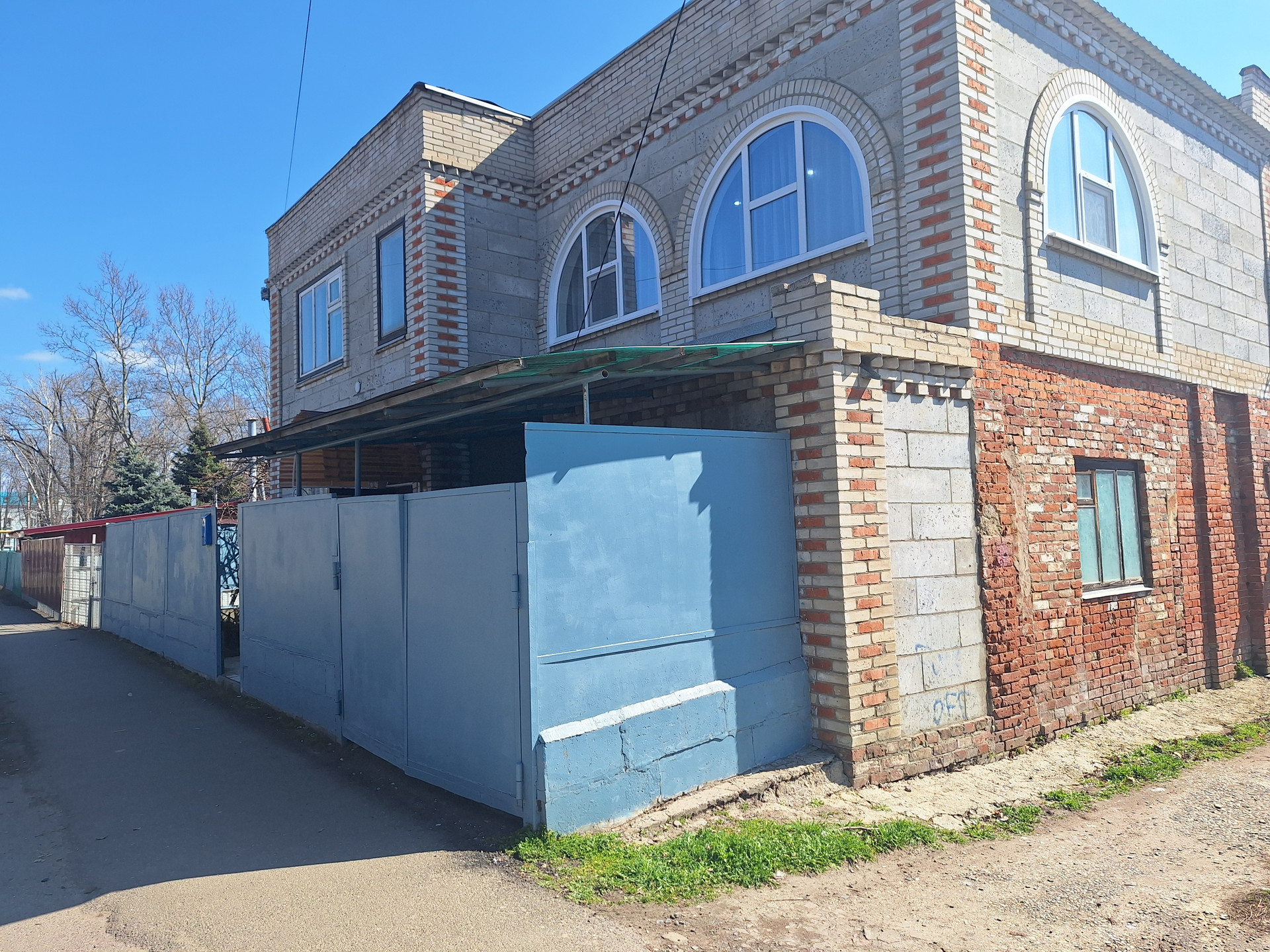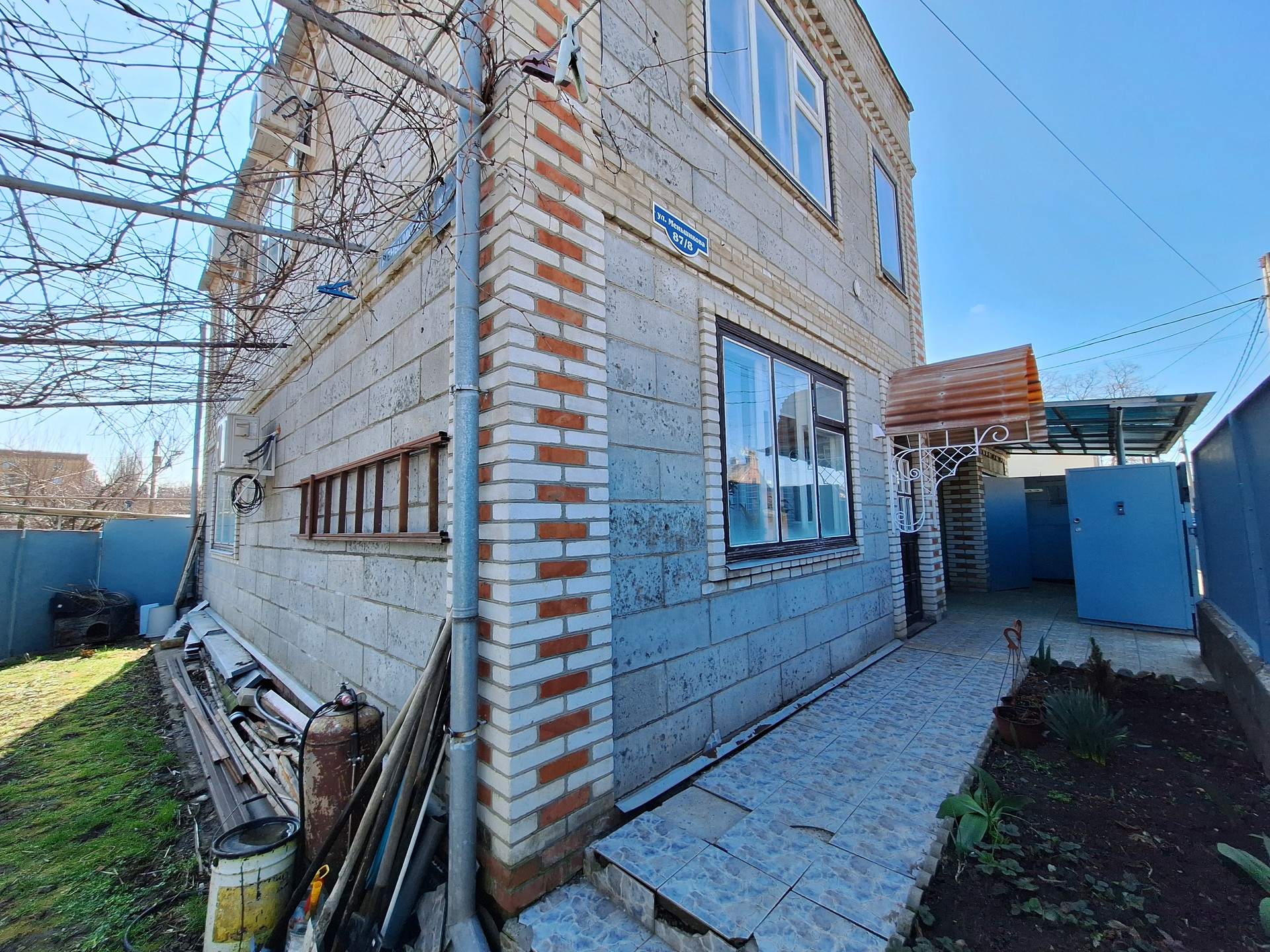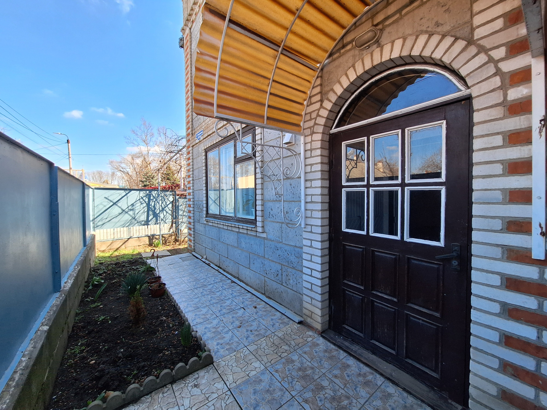 Во двор имеется заезд под гараж. Установлен домофон. Крыша -шифер.