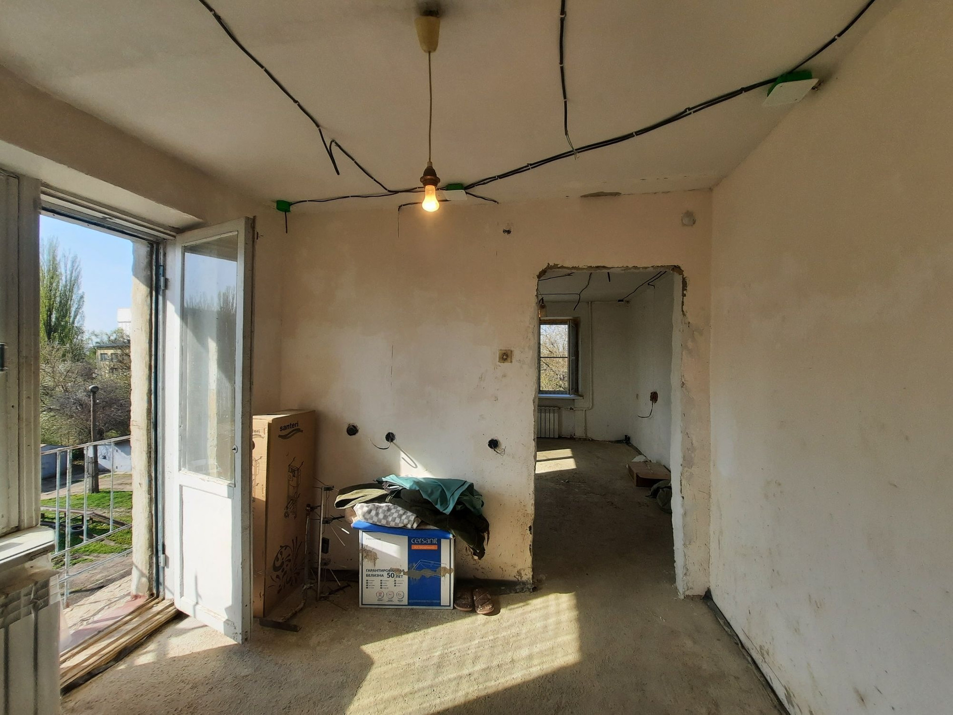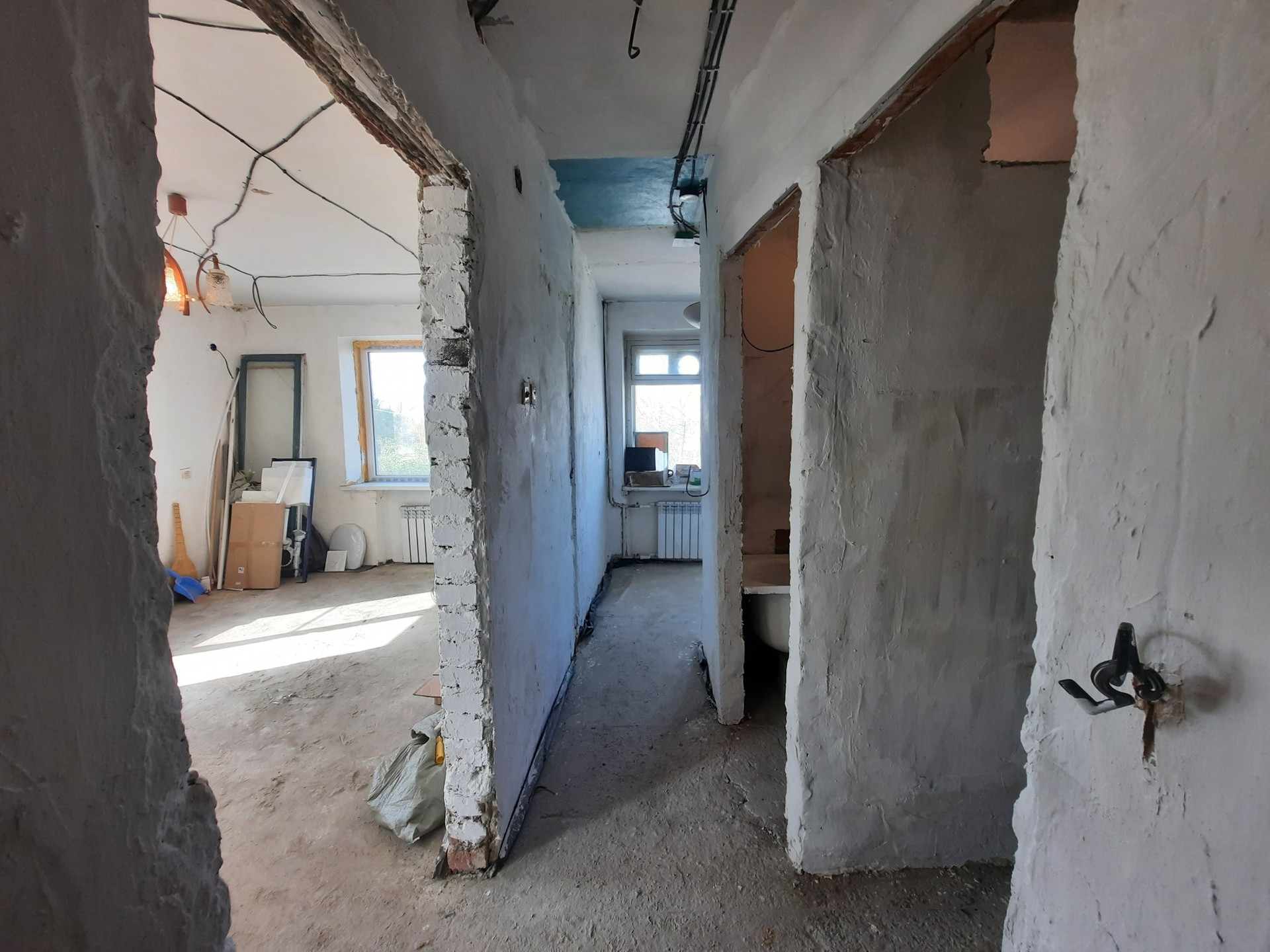 В городе Тихорецке по улице Дзержинского продаётся 2-х к/к на 3/5 этажного кирпичного дома. Расположение комнат смежное. Сан. узел раздельный. В квартире два балкона: один с входом из комнаты, другой с входом из кухни. Установлены приборы учёта на воду и на газ. Окна заменены на металлопластиковые и  выходят на две стороны во двор. В квартире полностью заменена электропроводка. Квартира находится в состоянии черновой отделки.