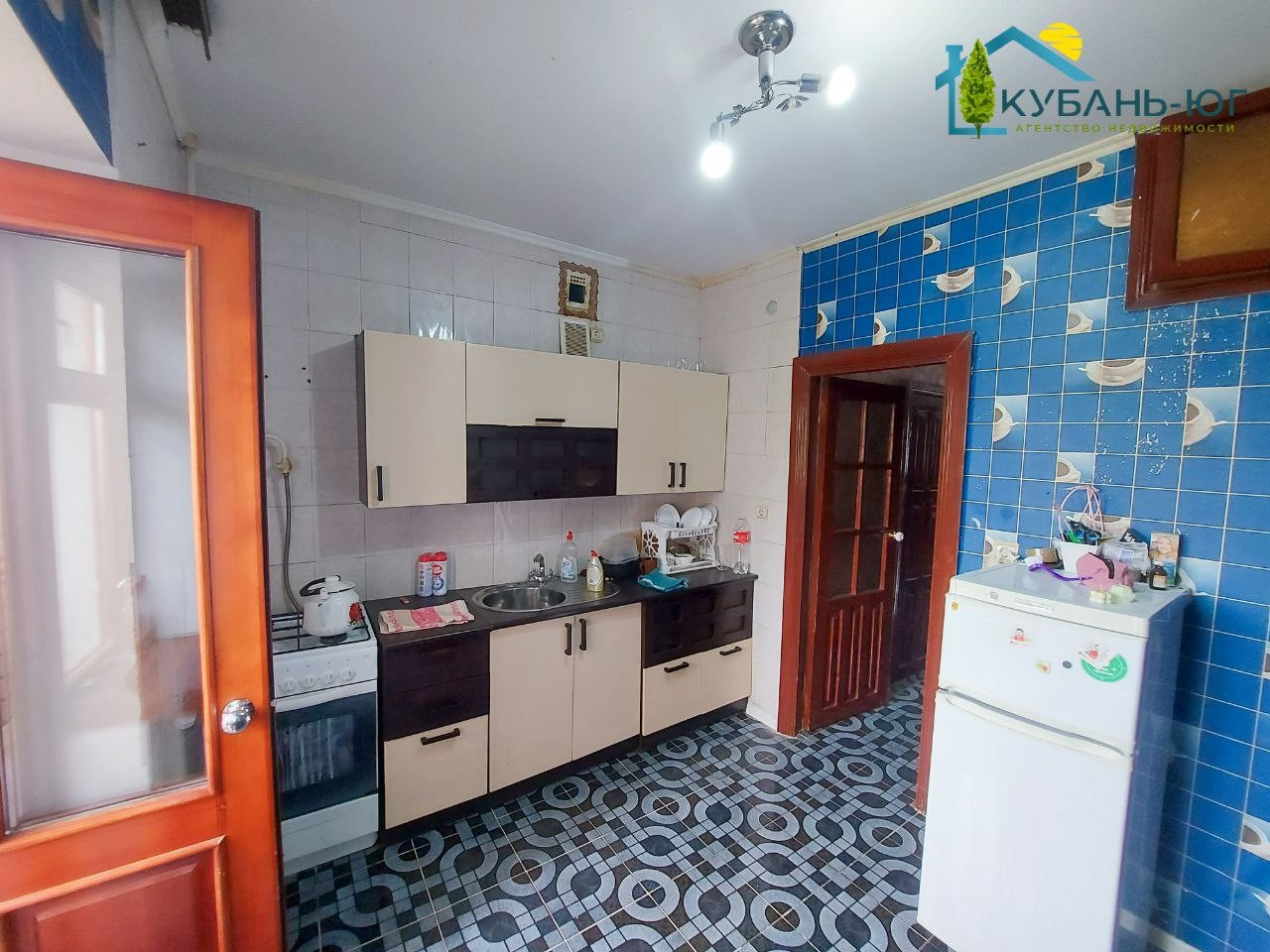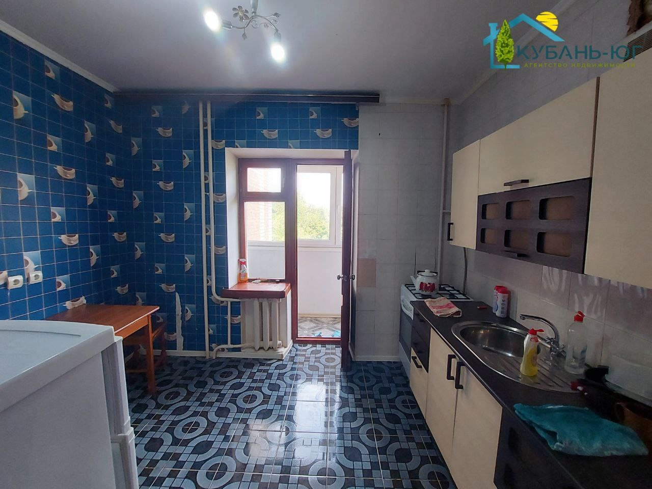 В г. Тихорецке, по улице Октябрьская, микрорайон Черёмушки( рядом ТРУМН), продаётся 2-х к/к на 4 этаже 5-ти этажного кирпичного дома. Расположение комнат раздельное, сан.узел раздельный, балкон и лоджия объединены, имеется кладовая. В квартире произведён косметический ремонт. Потолки выровнены, побелены, на полу в комнатах линолеум, в остальных помещениях - напольная кафельная плитка, стены оклеены обоями. Стены в ванной  и туалете полностью облицованы плиткой. Совмещённый балкон с лоджией застеклён МПО, на полу кафельная плитка. Окна застеклены деревянными стеклопакетами. Установлены водомеры на холодную и горячую воду. Продаётся с мебелью ( по договорённости). В подъезде две квартиры на площадке. С торца дома детская площадка. Инфраструктура развита: магазины,аптеки,остановки общественного транспорта в непосредственной близости. В соседнем дворе детский сад "Аленький цветочек". Через дорогу парк отдыха. Неузаконненых перепланировок нет. Документы готовы к продаже.