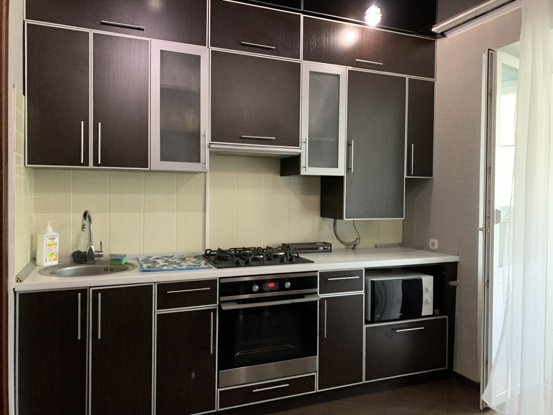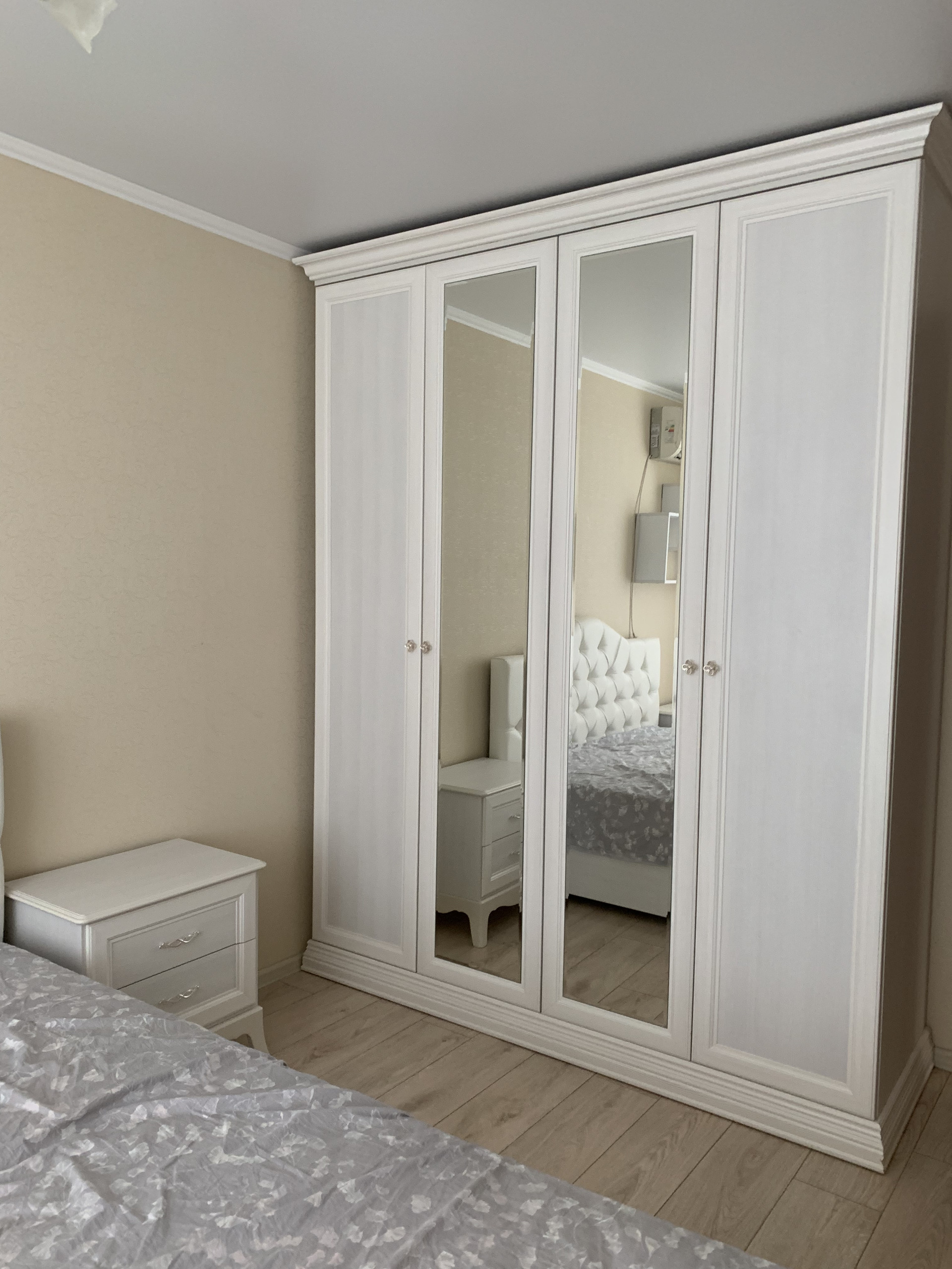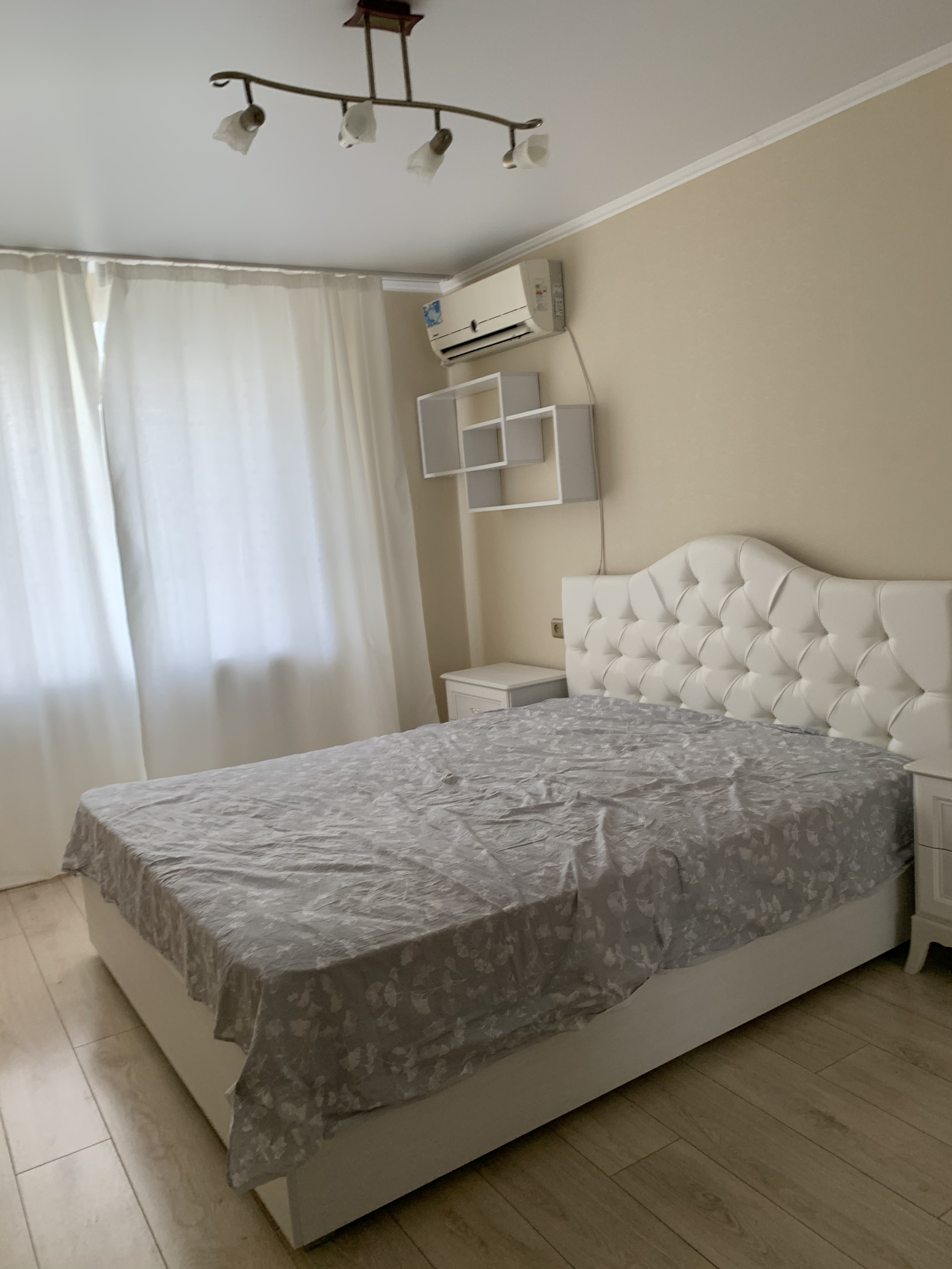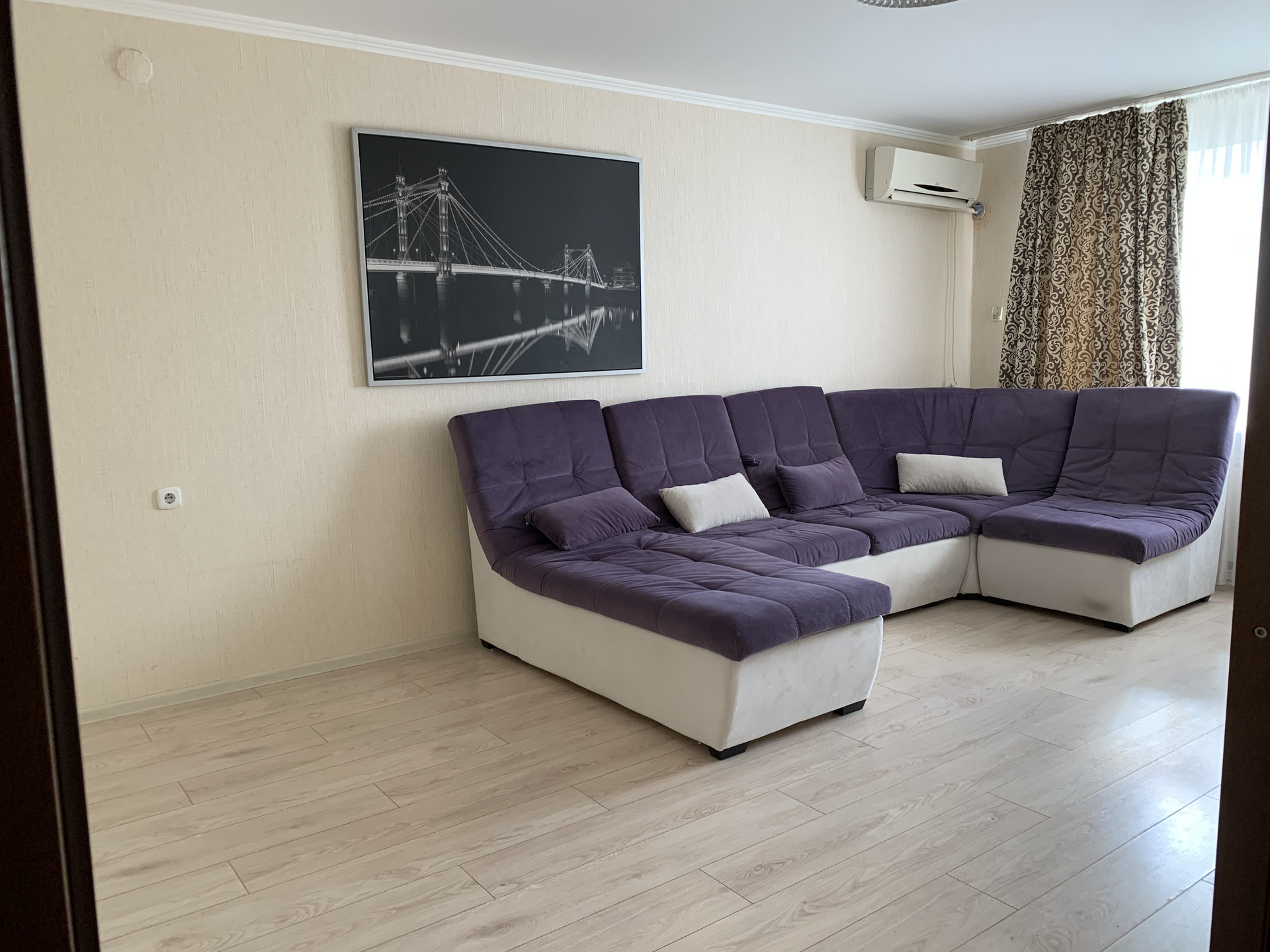 В квартире две сплит системы. Из бытовой техники есть духовой шкаф, стиральная машинка, микроволновая печь, холодильник, телевизор.