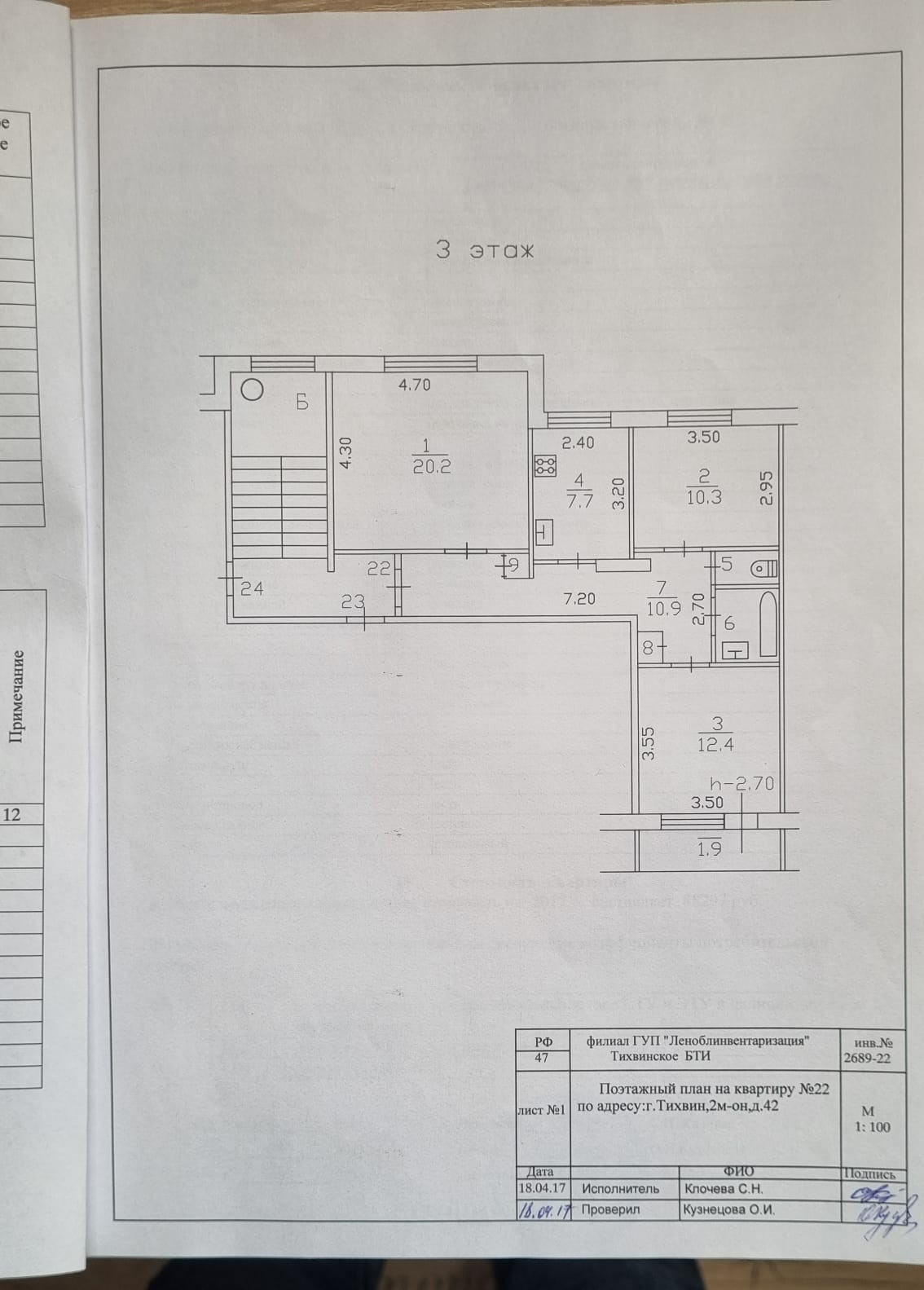 3-комнатная квартира, 66.2 м2, этаж 3 / 5, на продажу в Тихвине, 2-й микрорайон, 42