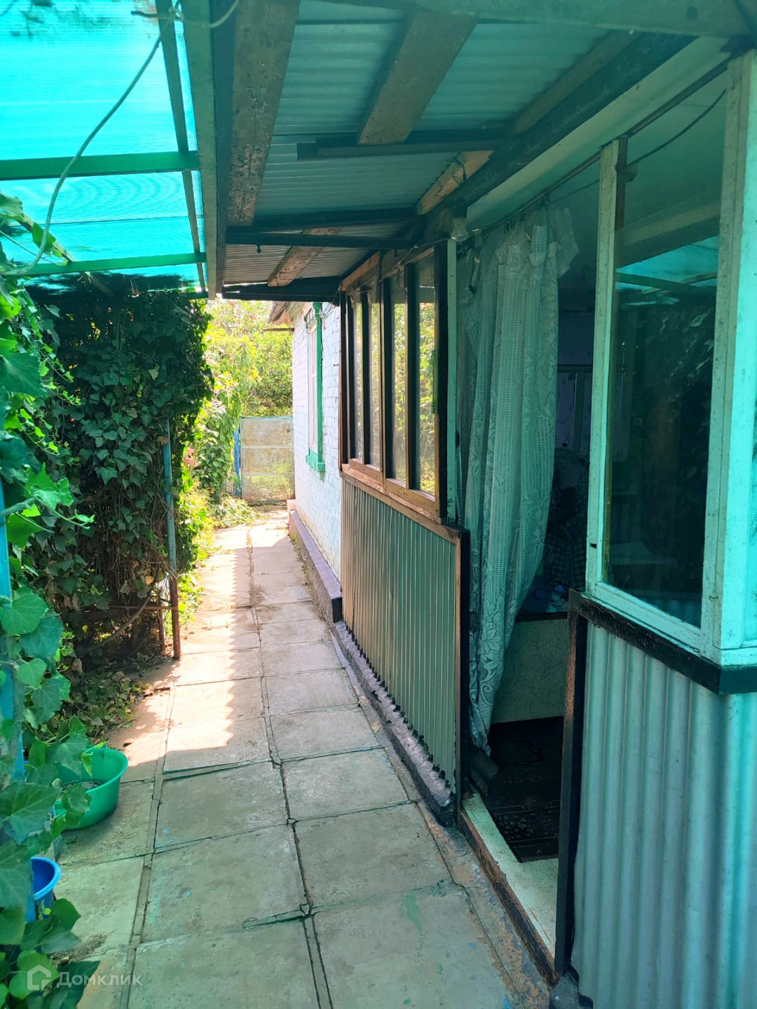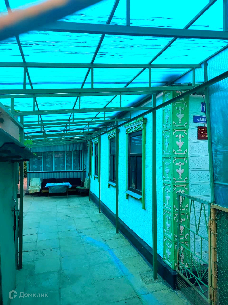 Двор чистый, уложен крупной плиткой, прозрачный  навес на весь двор. На крыше заменён шифер и установлены новые коньки.