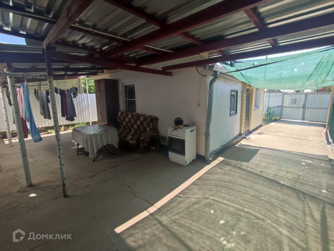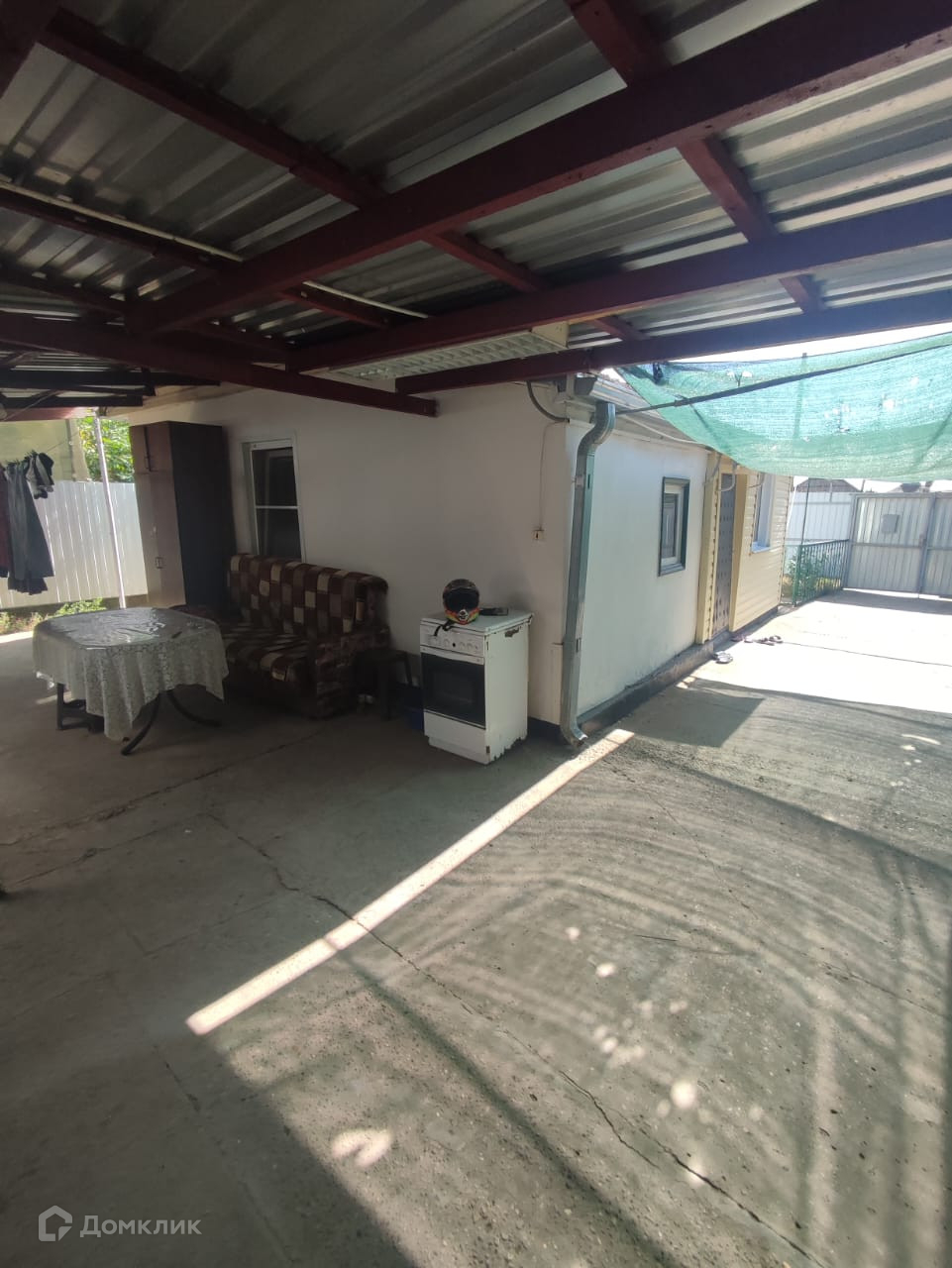 Крепкий железный забор, забетонированный двор, большой навес с местом для отдыха. Есть хоз. постройки, уличный туалет , водопровод во дворе. Чистый огород.
