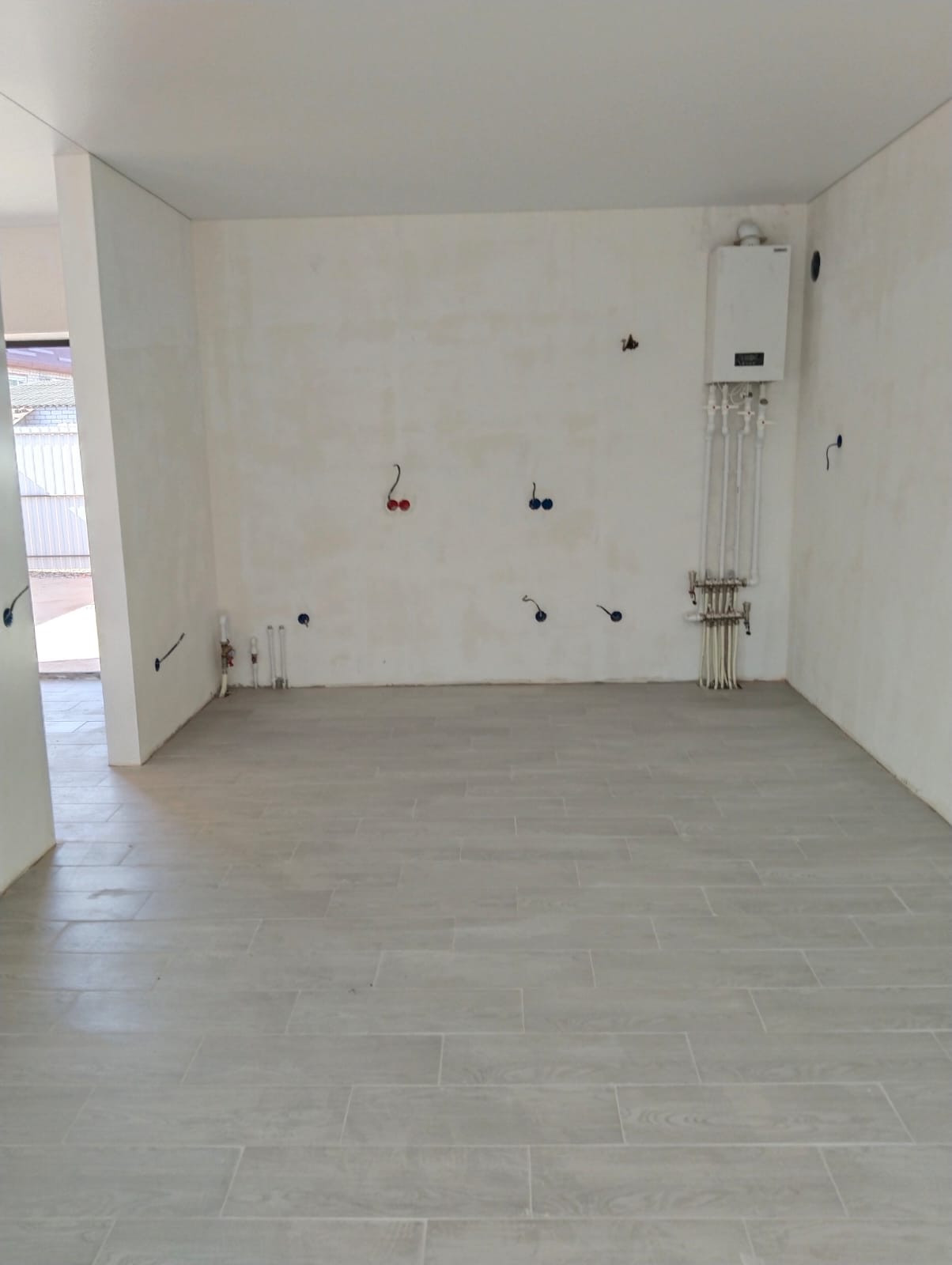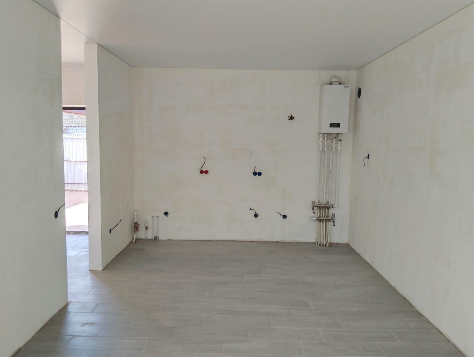 Отопление в доме индивидуальное от двухконтурного газового котла, по всему дому теплый пол, ремонт под ключ - натяжные со встроенными светильниками потолки, на стенах обои, пол - керамогранитная плитка.