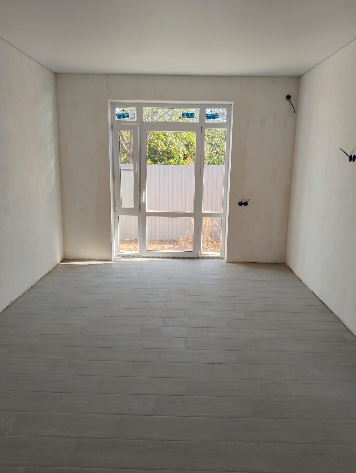 Во дворе место под авто, место для зелени, выход с кухни-зала через витражные двери на возможную мангнальную зону.