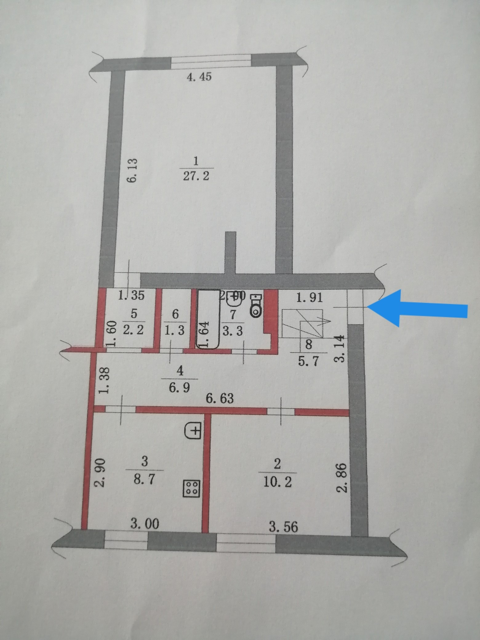 Площадь кухни 8.7 м2