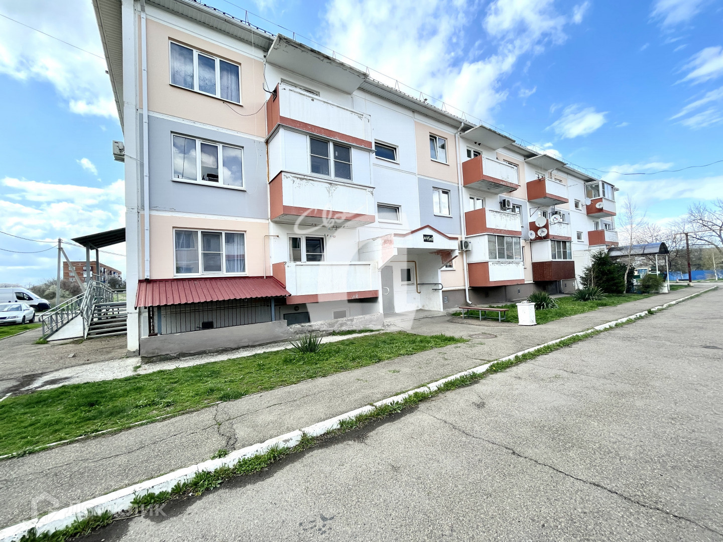 Просторные подъезд и двор.