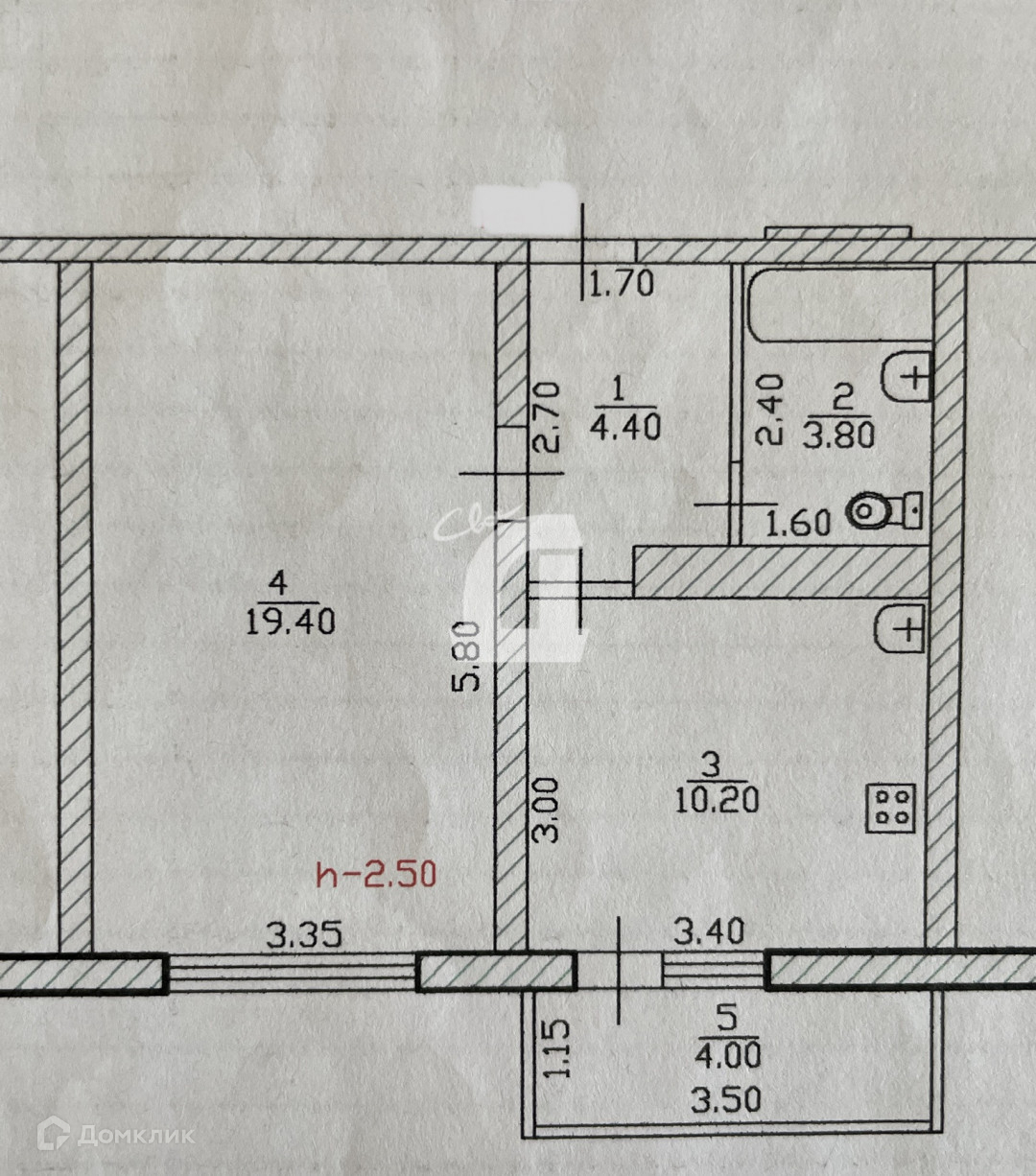 Высота потолков 2.5 м