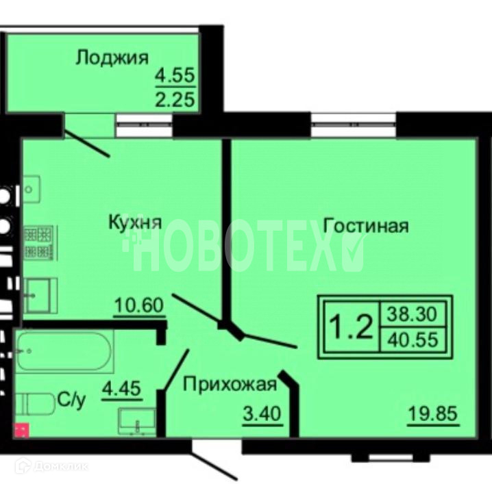 Общая площадь 39 м2