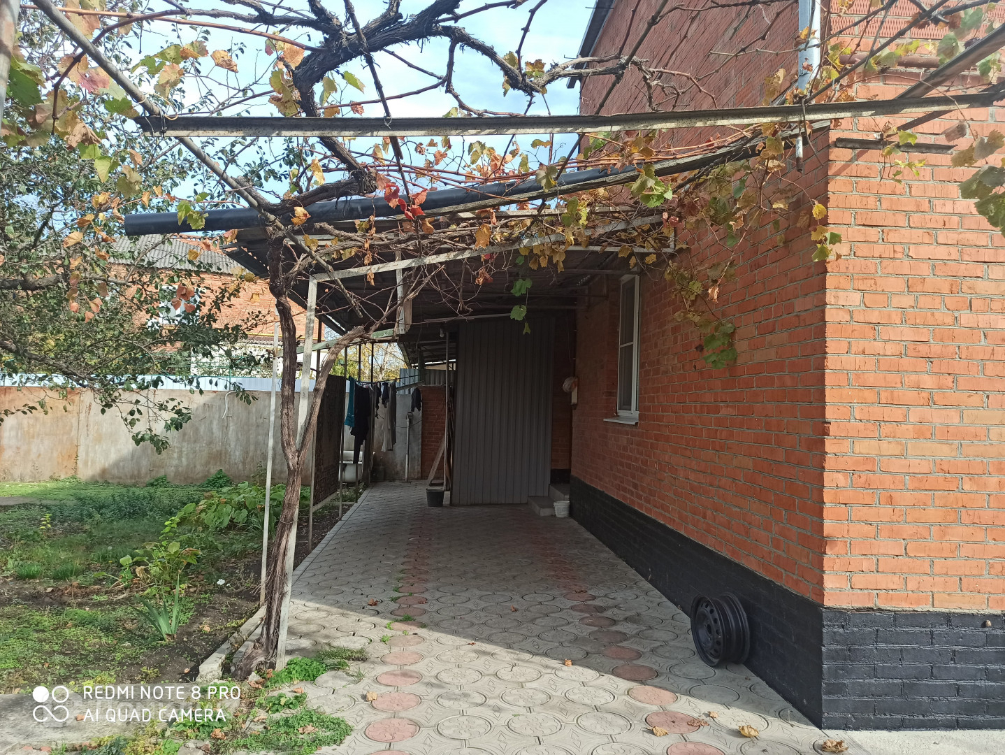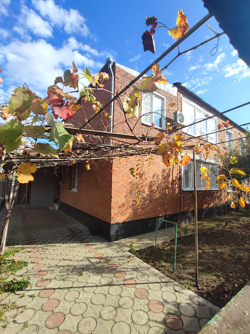 Двор чистый, уложен плиткой. Во дворе есть кирпичные хозяйственные постройки и гараж, на небольшом свободном от застройки участке расположен сад с плодовыми деревьями. кустарниками  и виноградом.