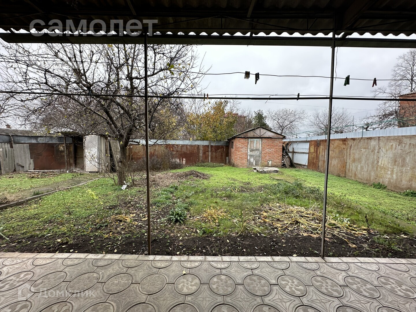 - двор в плитке, большой навес
