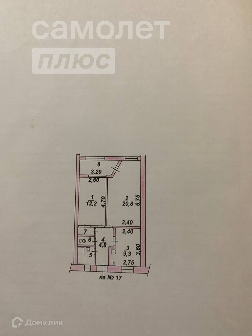 Общая площадь 52.6 м2
