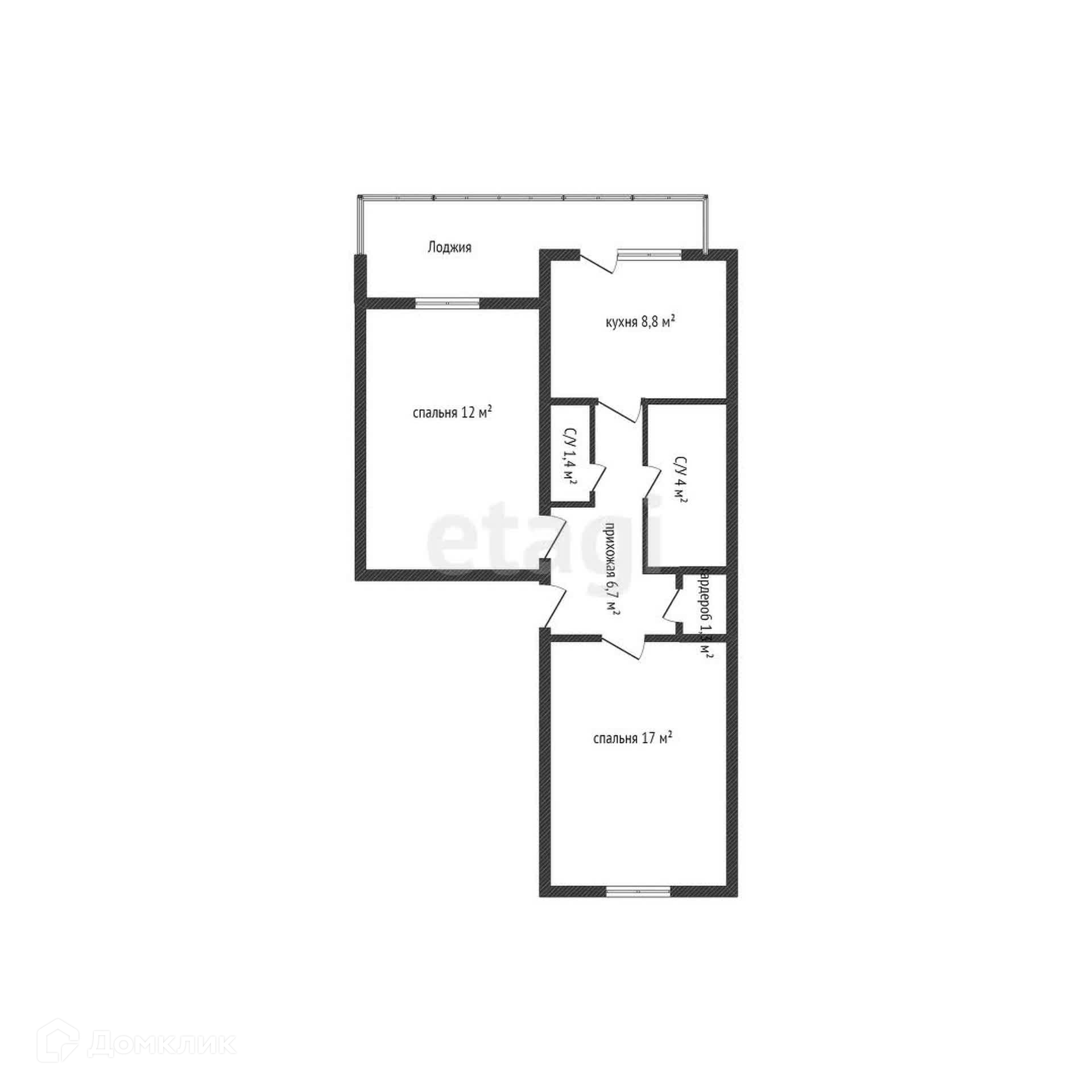 Общая площадь 54.3 м2
