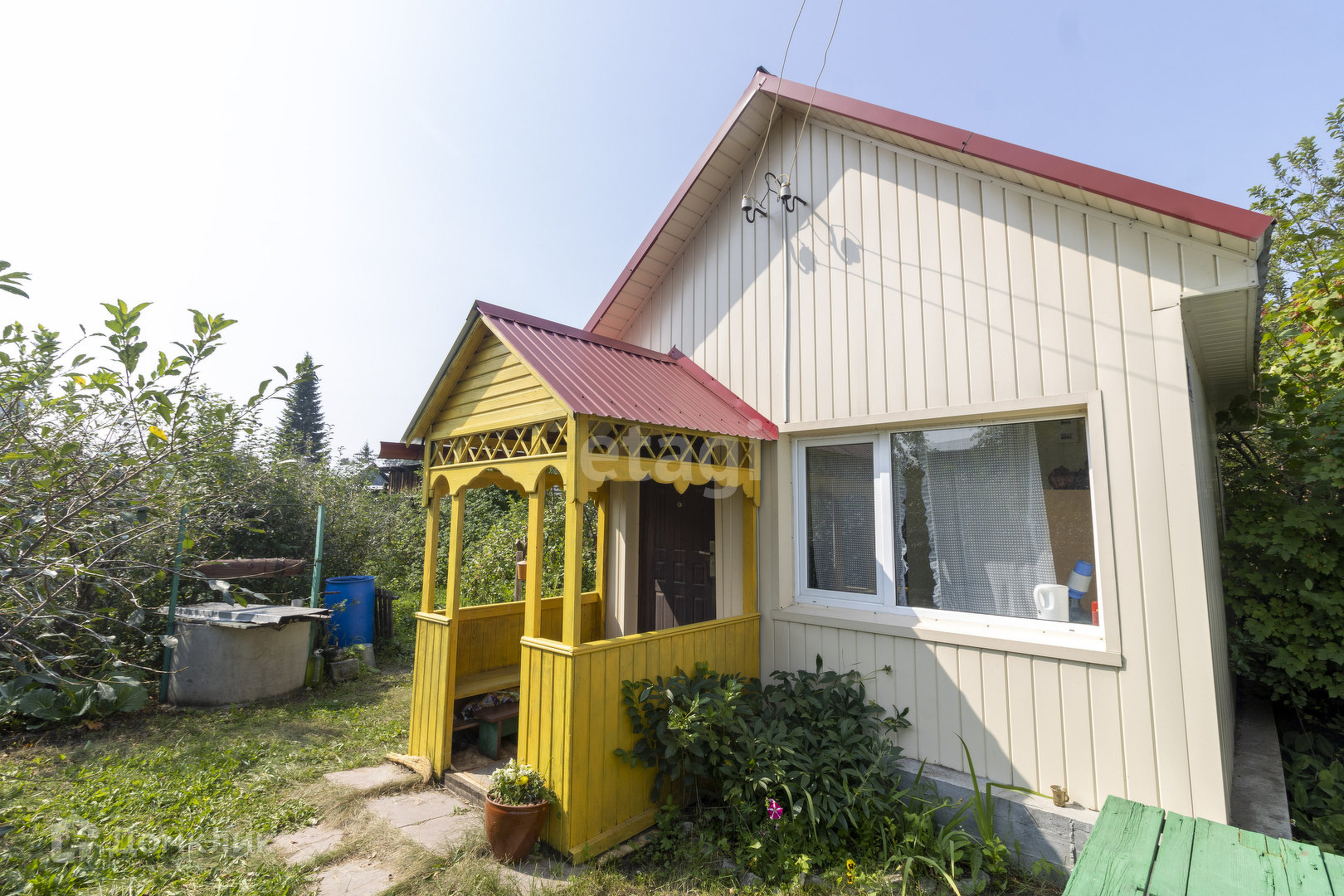 А теперь более подробно про нашу дачу: Очень удобное местоположение земельного участка- отличная дорога, в шаговой доступности остановка (5минут) и круглосуточный магазин. Круглогодично ездят автобусные маршруты через весь город. Земельный участок площадью 5,2 сотки, огорожен крепким забором. Возведен очень добротный дом из бревна, на хорошем ленточном фундаменте, утеплён и обшит металлосайдингом, крыша покрыта металлочерепицей с водосточной системой. В доме установлены пластиковые окна, крепкий пол, стены оштукатурены и окрашены интерьерной краской. Разведено электричество. Иногда дом использовали и для зимнего времяпровождения. Дом летом хранит прохладу, а в холодное время- наоборот очень хорошо хранит тепло от радиаторной системы отопления. Источником воды на участке служит колодец. Помимо дома, На участке есть летний туалет, сарай и домик из сруба, который ранее использовался как банька, но он и сейчас довольно не плохо сохранился. Сама земля плодородная, много плодовых насаждений: сочные яблоньки, сладкая вишня, слива, алыча, крыжовник, облепиха, клубника, калина, ирга и многое другое.