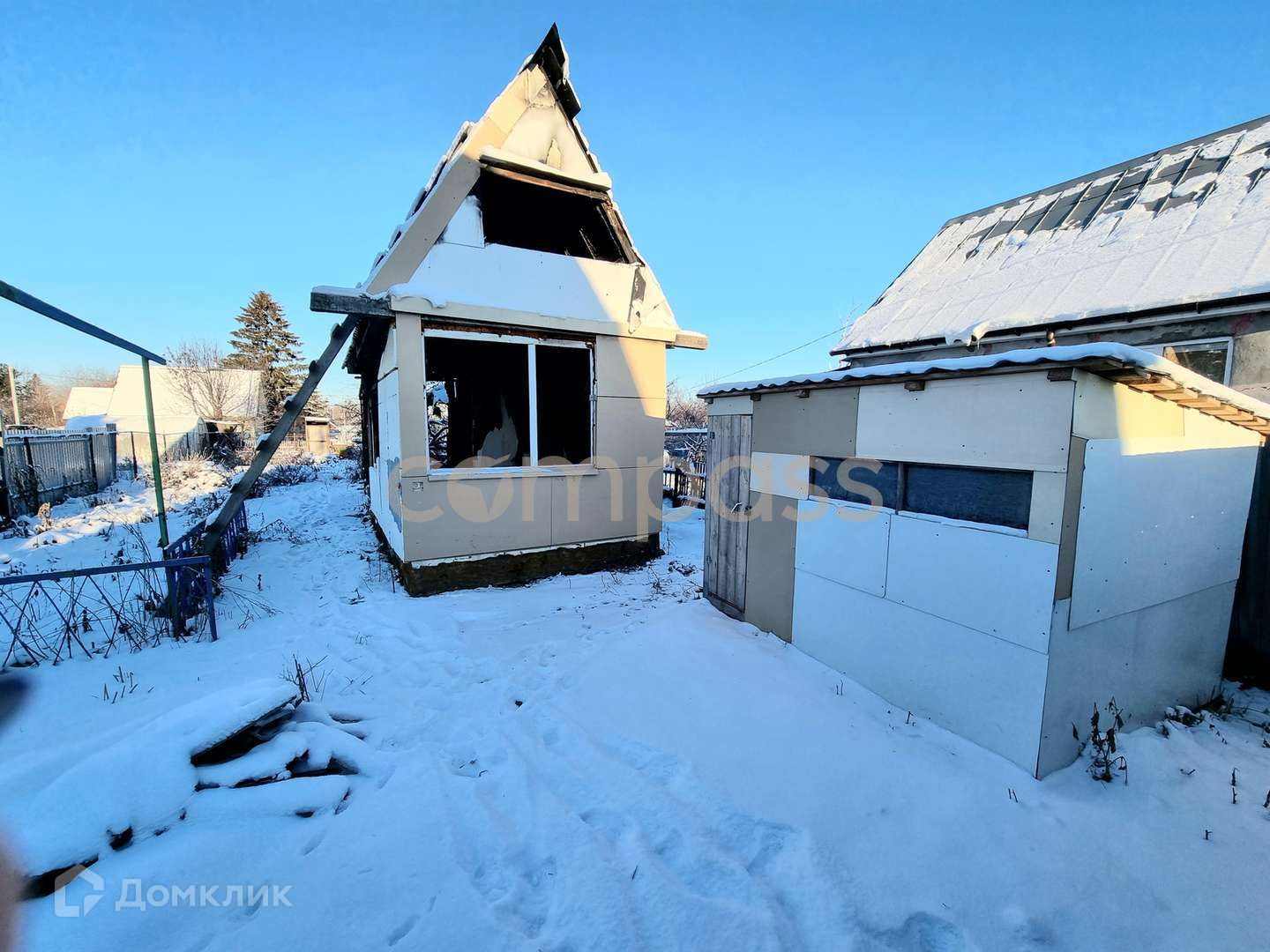 На участке растут яблони, малина, смородина и крыжовник.