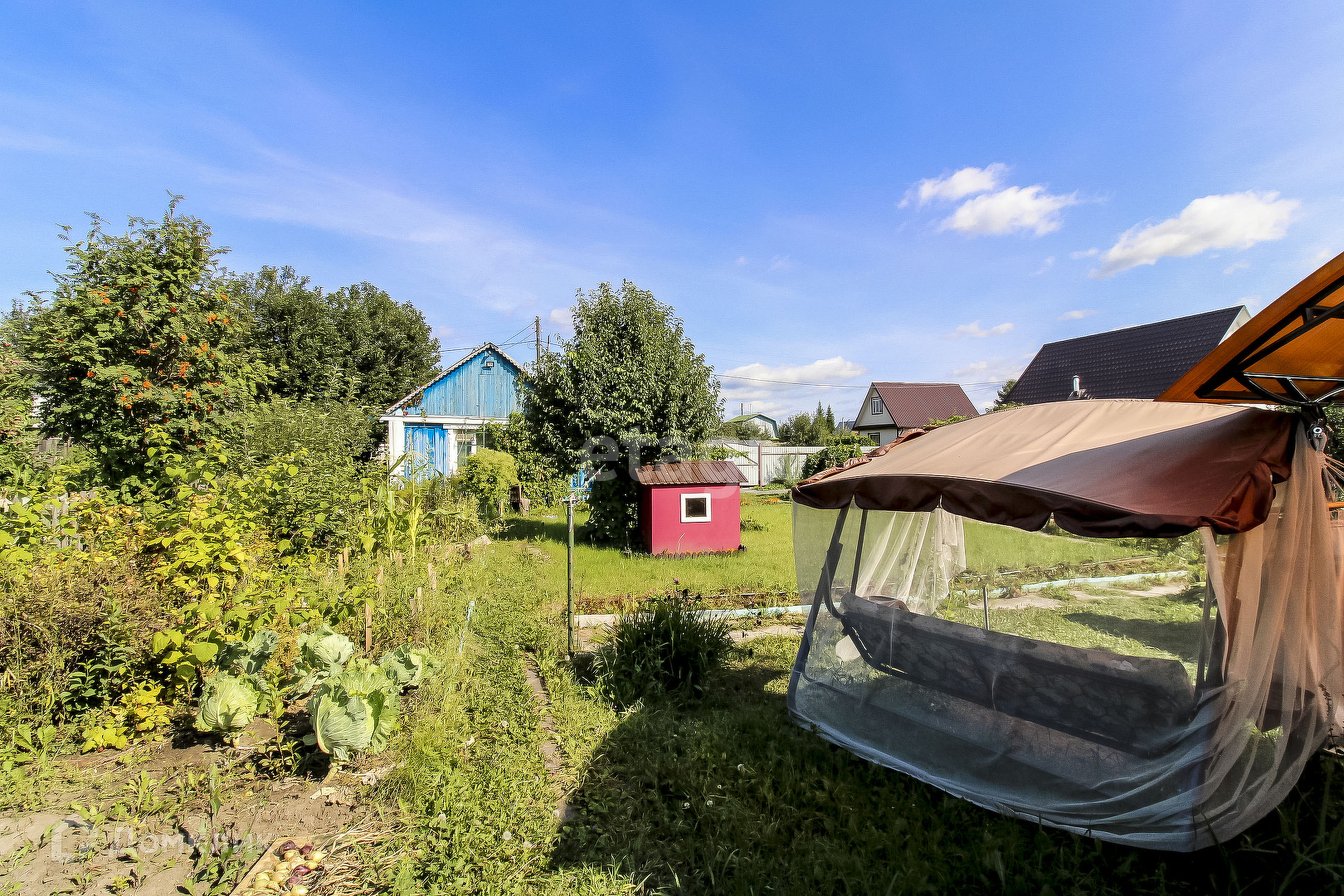 -По каммуникациям: газ и водопровод центральный проходит по улице( подключиться всегда можно в 5 метрах точка доступа). -Участок полон насаждений плодо-овощными культурами и многолетними цветами и деревьями.Земля плодородная,все деревья плодоносят.