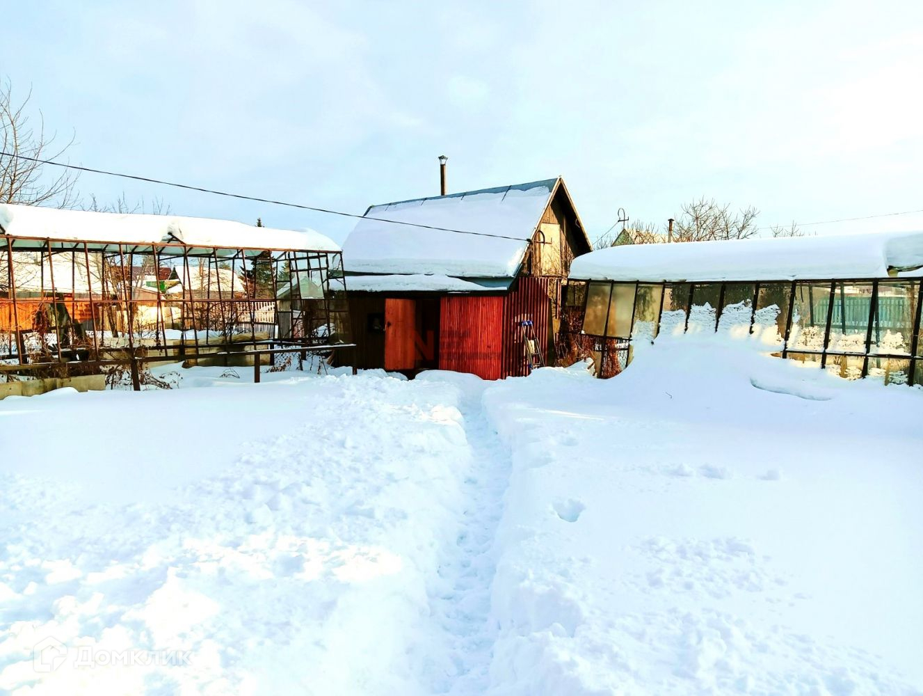 На участке 2 большие теплицы, из одной можно сделать большую полноценную беседку, вторую доостеклить и пользоваться.