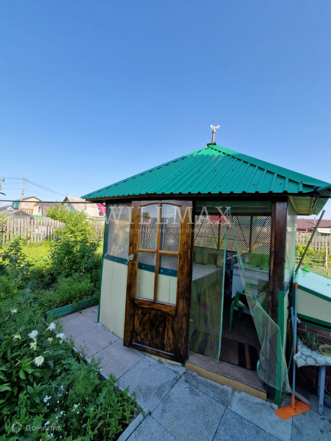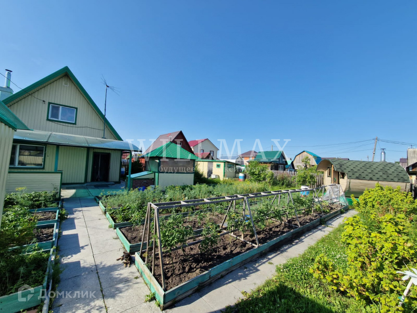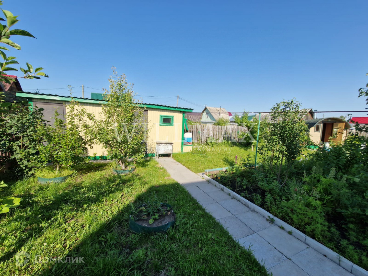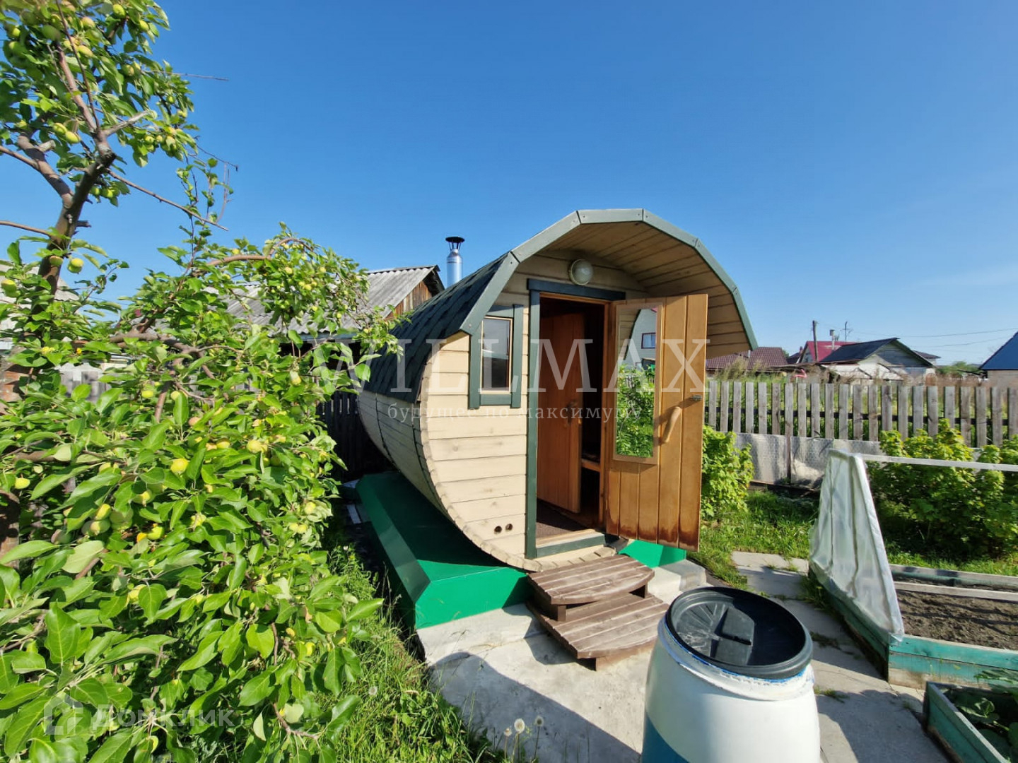 Земельный участок 4 сотки, ухожен и обработан. На участке есть баня -бочка, беседка, 2 сарая для хранения садового инвентаря, уличный туалет, теплицы и колодец. Взрослые, плодоносящие деревья и кустарники, яблоня, груши, смородина, вишня, клубника, много цветов. Все постройки обшиты сайдингом, участок обнесен забором.