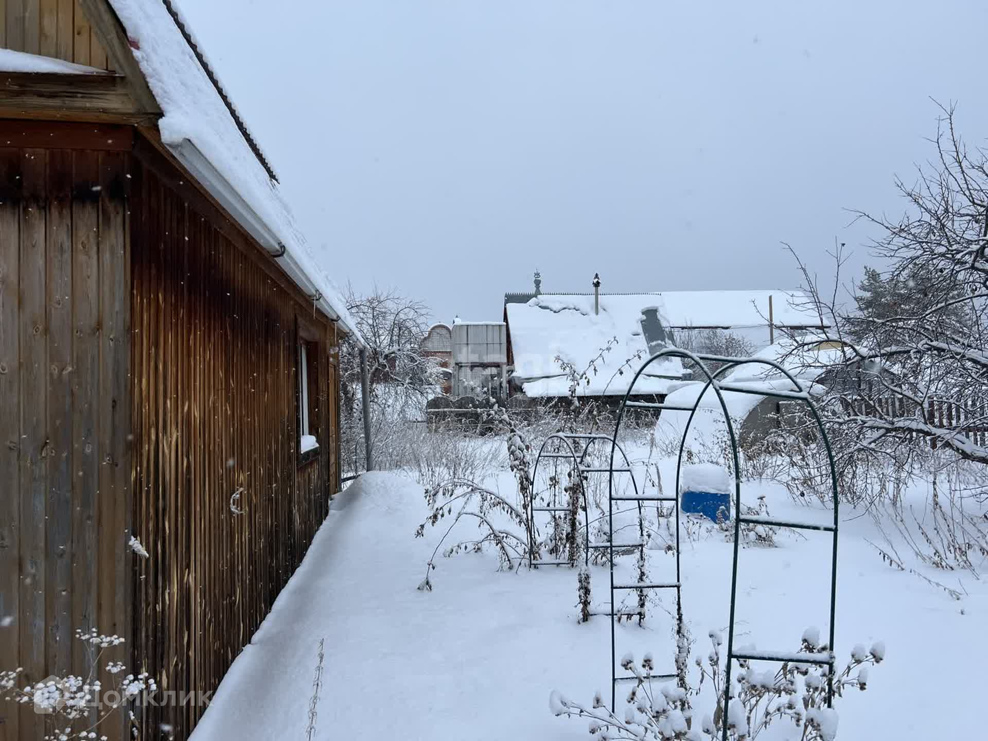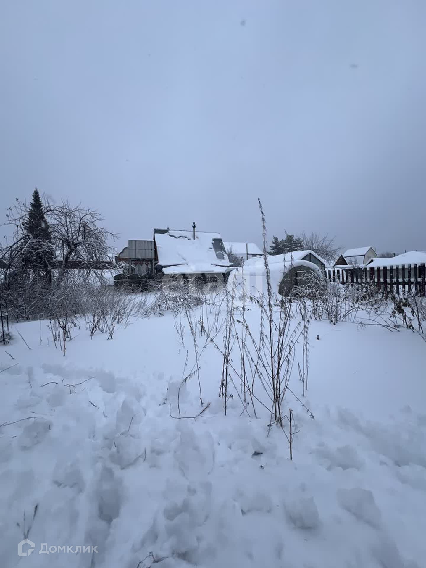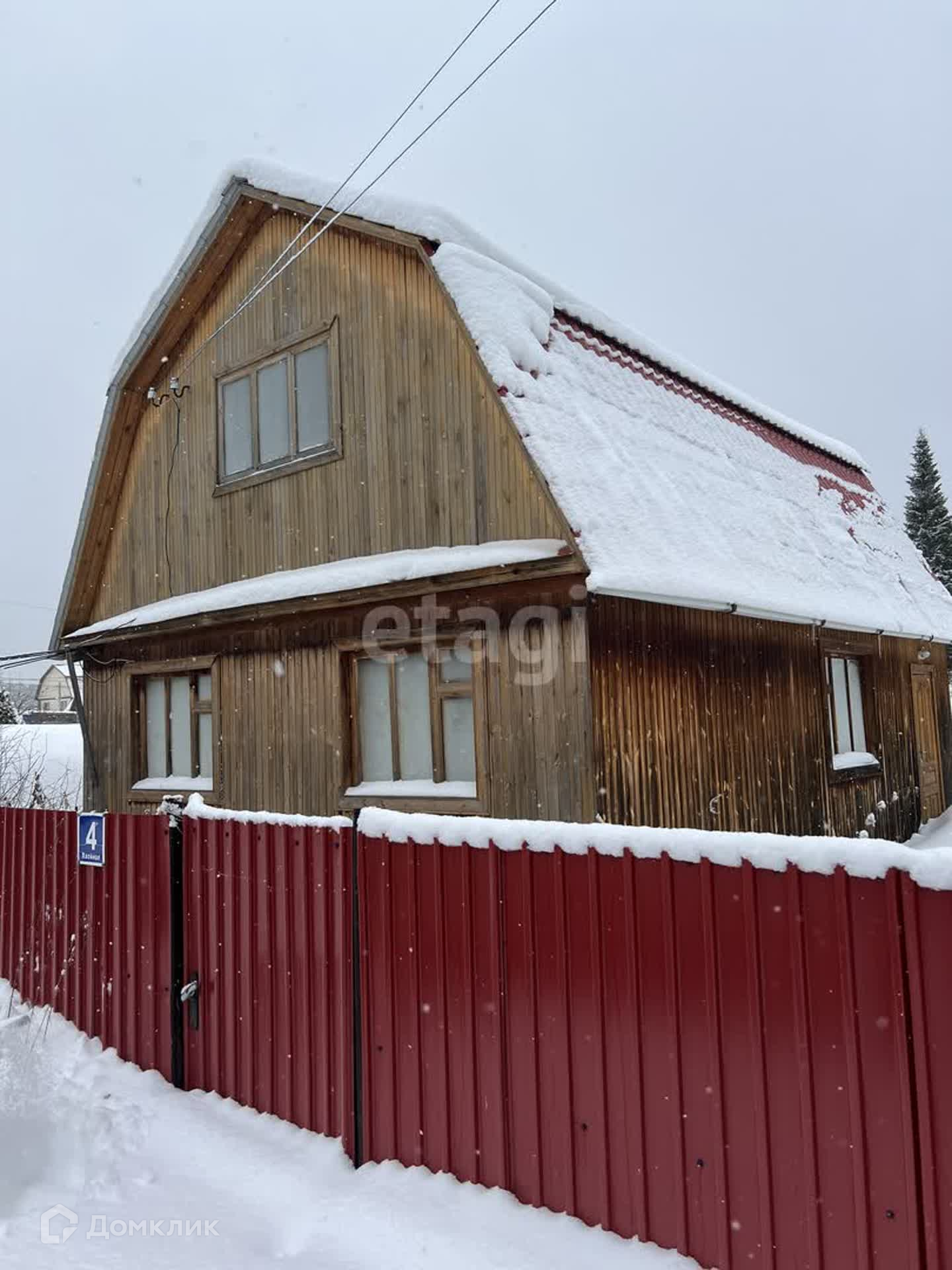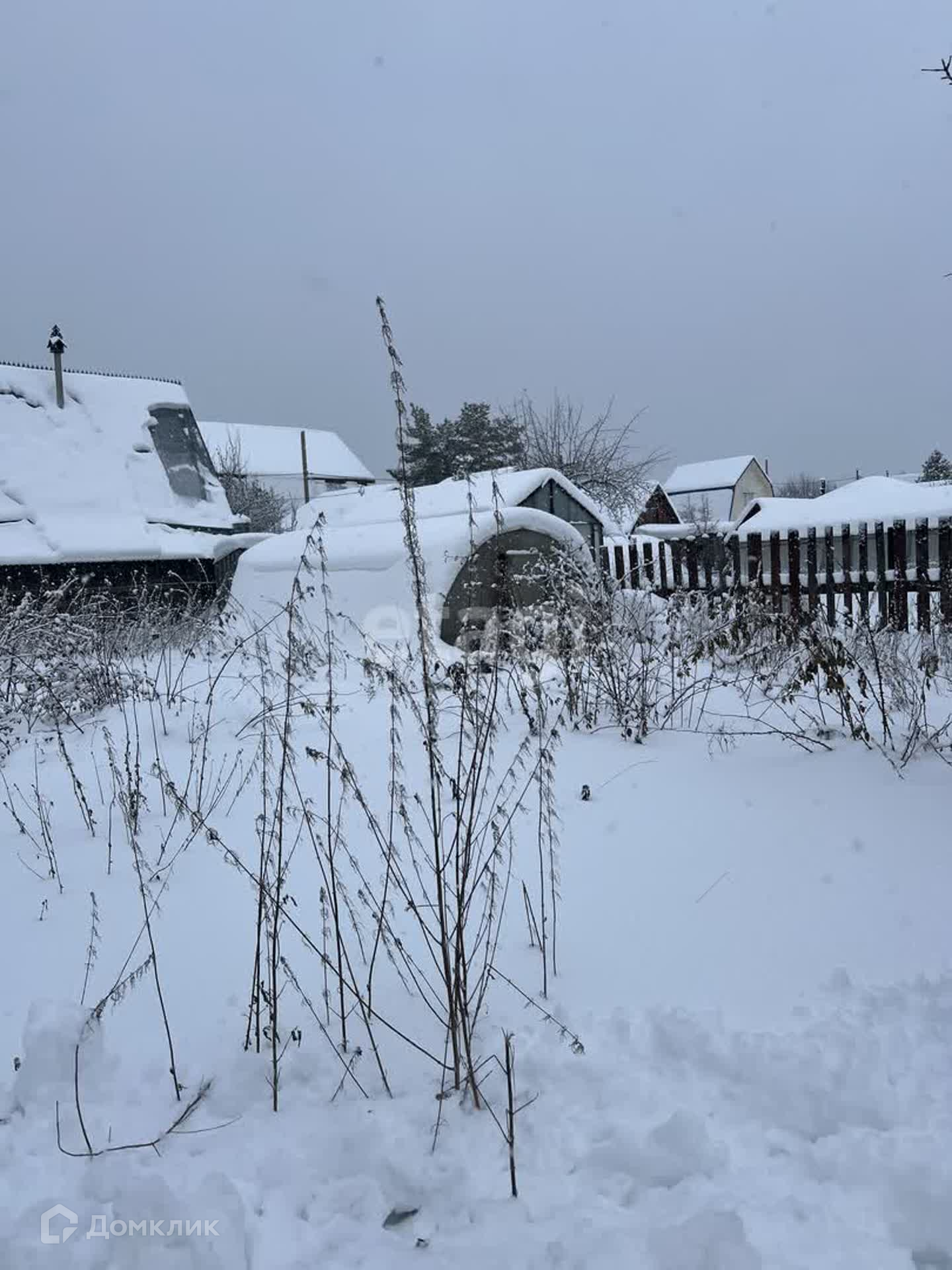 Участок 5.5 сот, огорожен забором из профнастила. Есть насаждения: малина, яблони, вишня. Помимо дома на участке есть теплица, подсобные помещения.