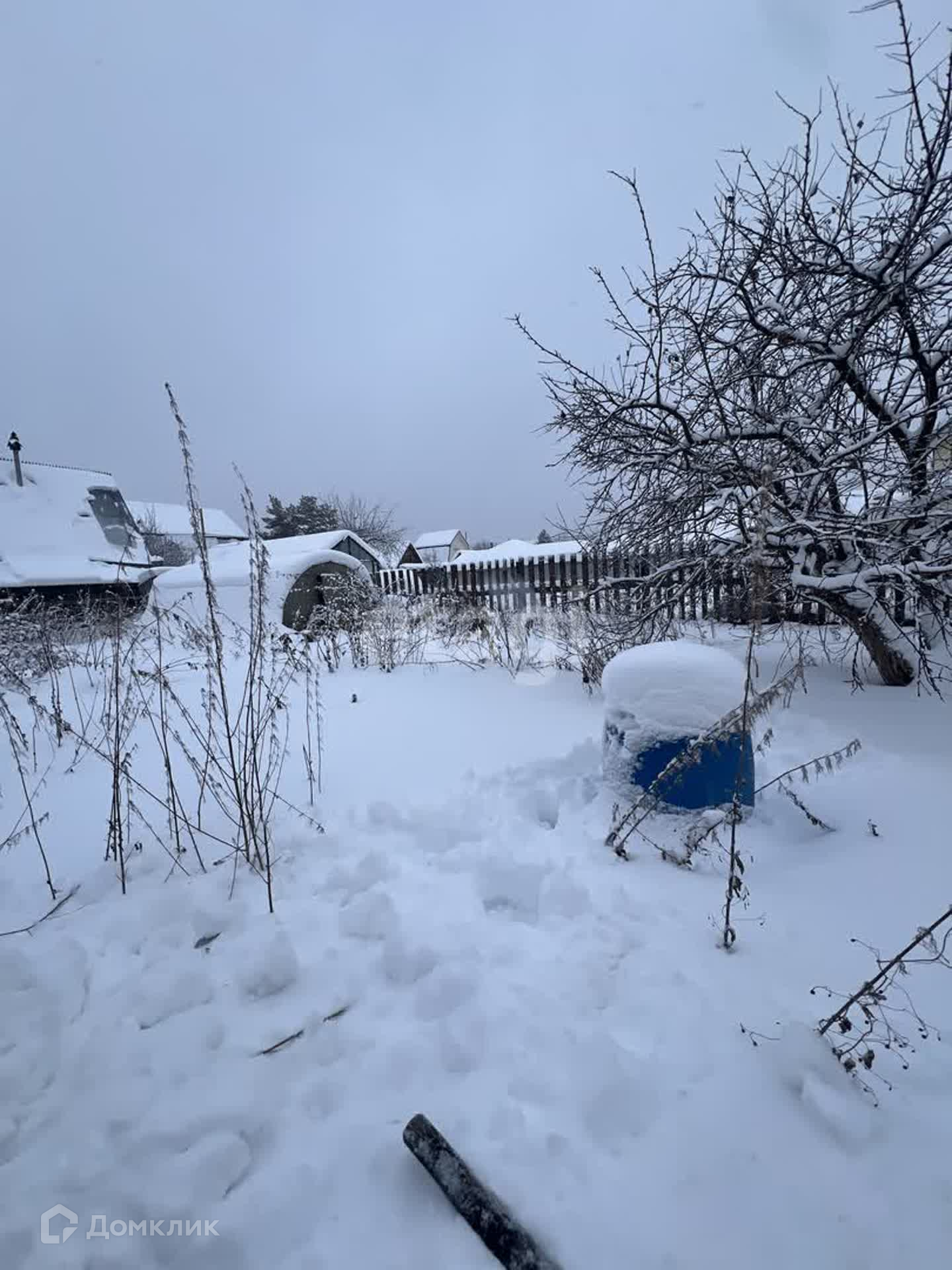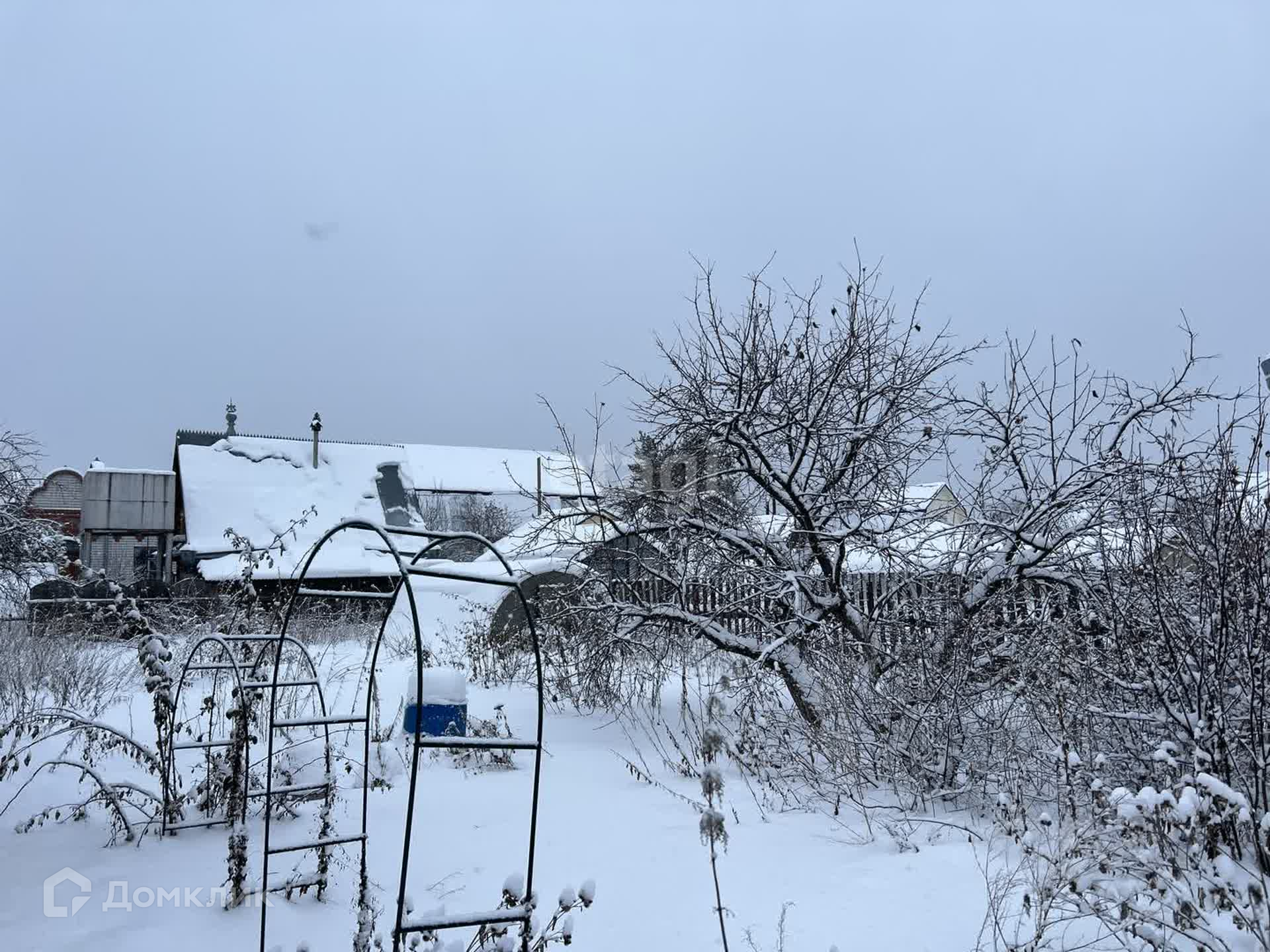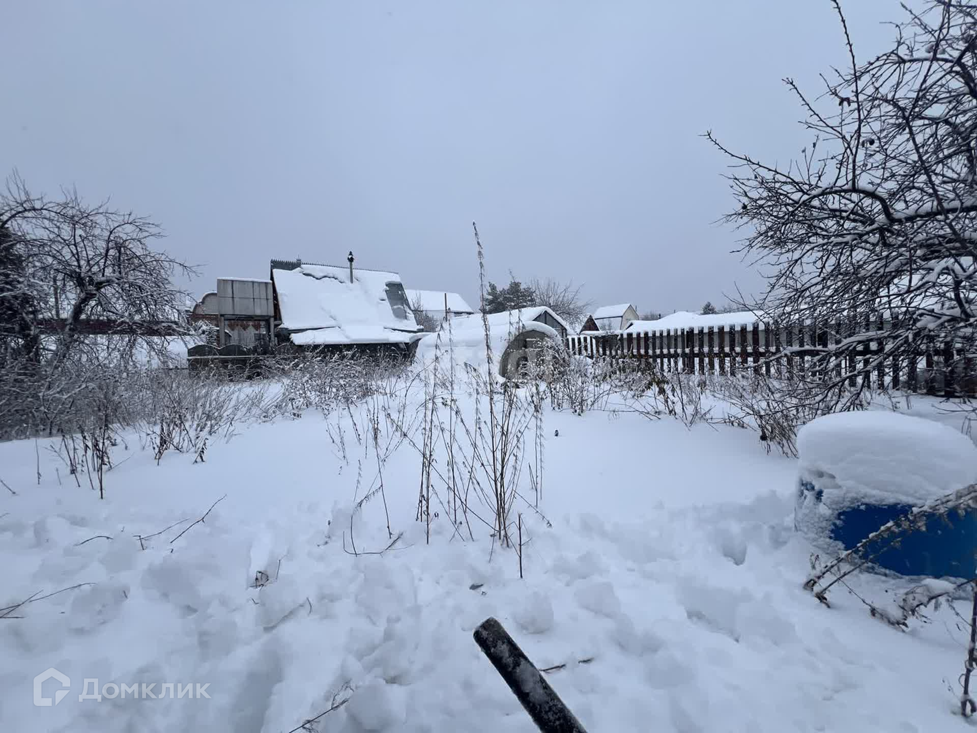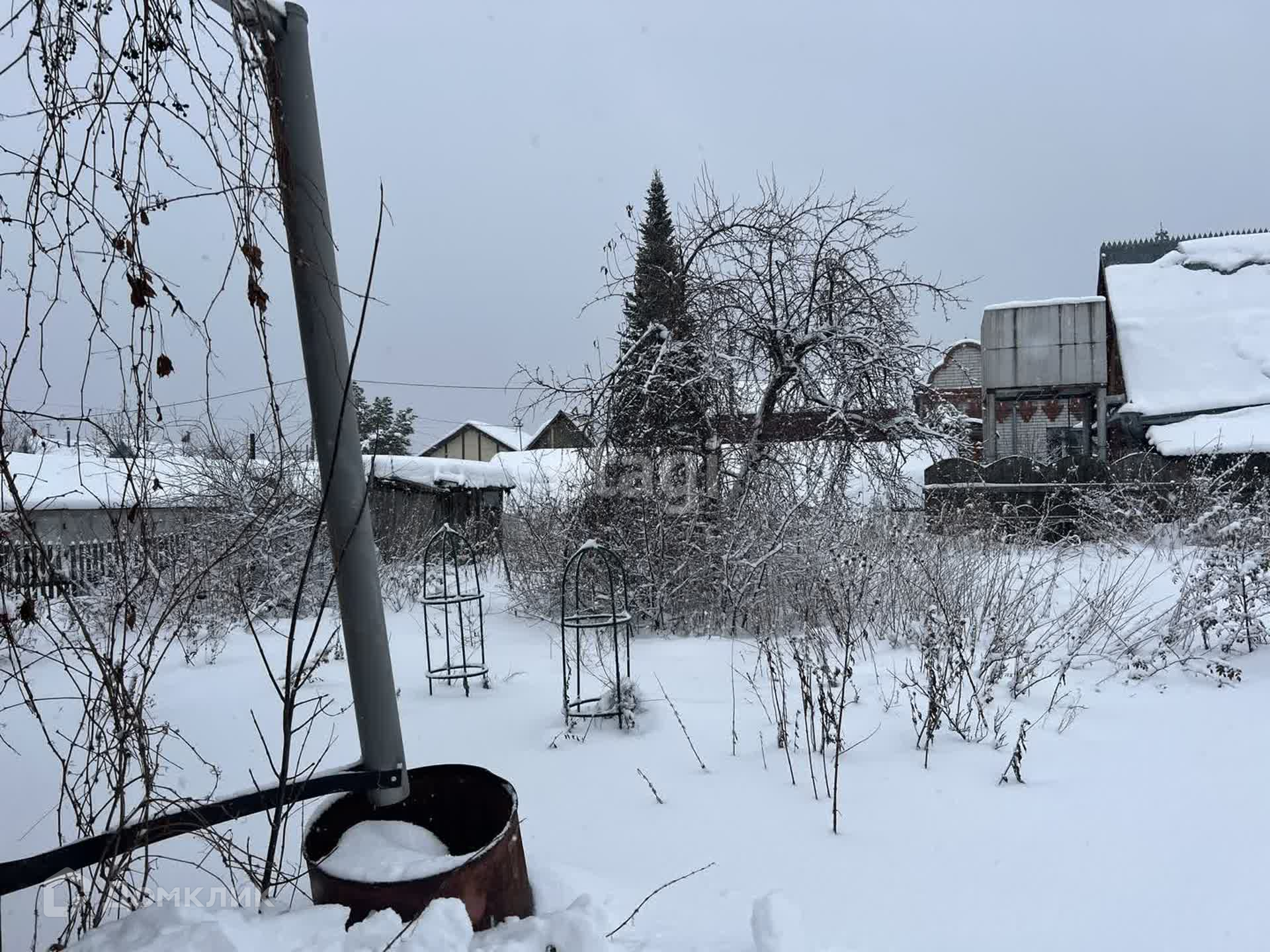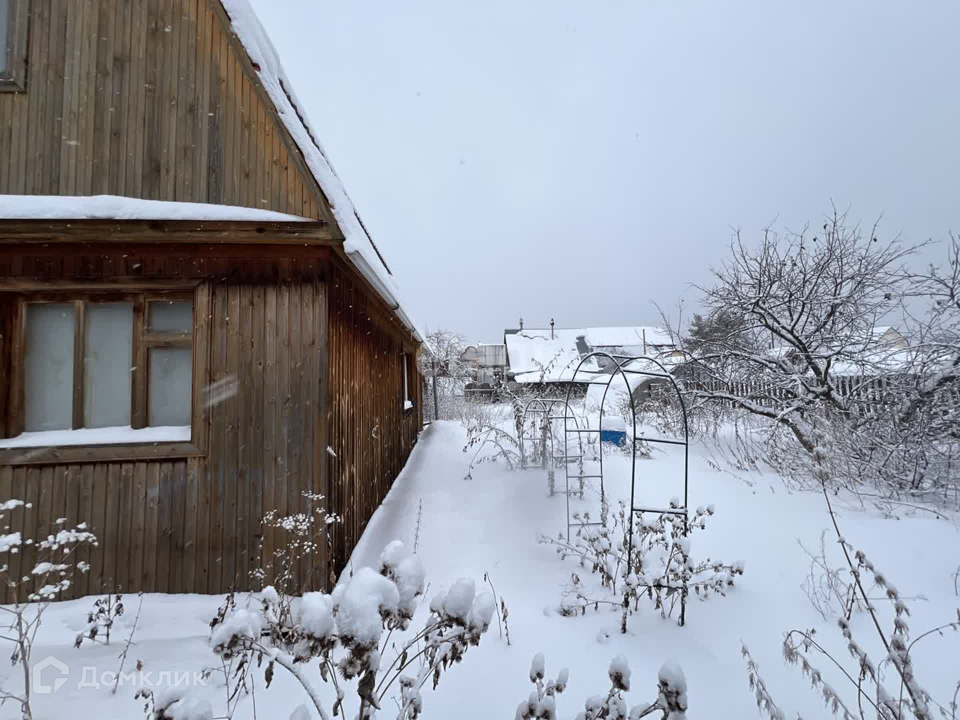 Участок 5.5 сот, огорожен забором из профнастила. Есть насаждения: малина, яблони, вишня. Помимо дома на участке есть теплица, подсобные помещения.