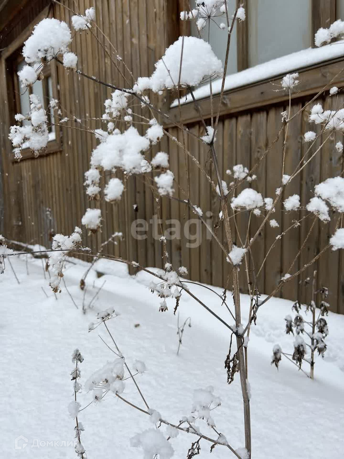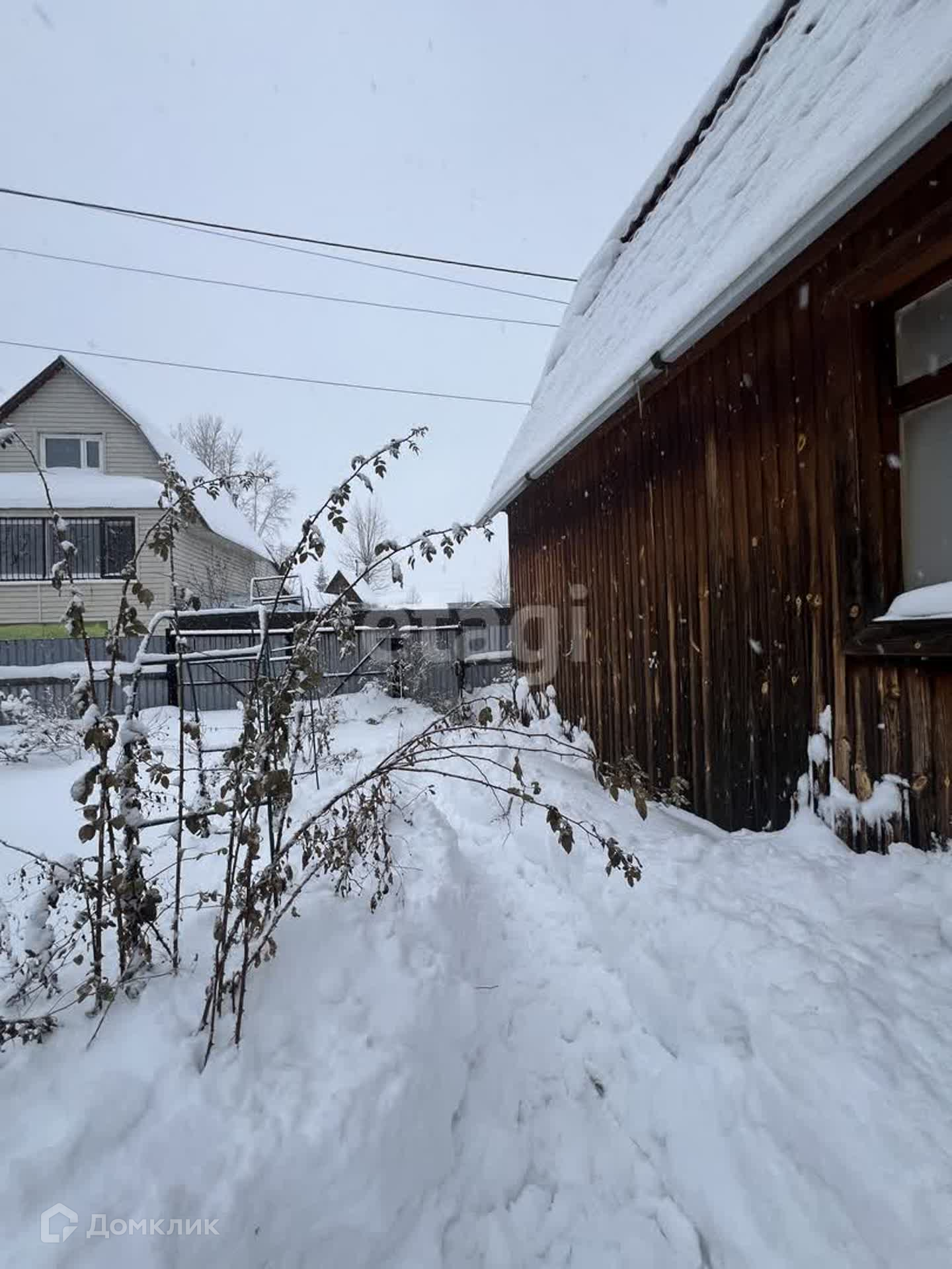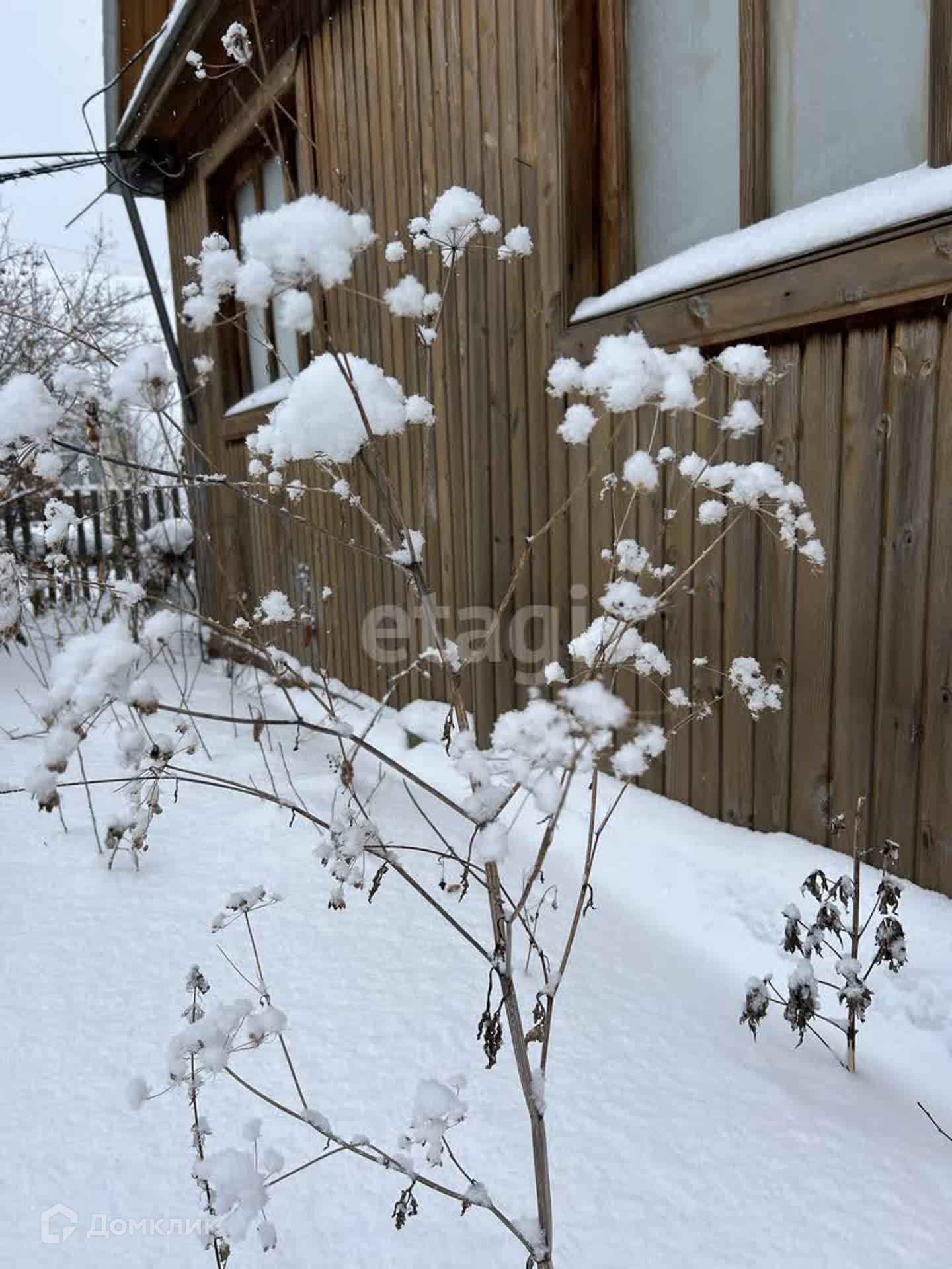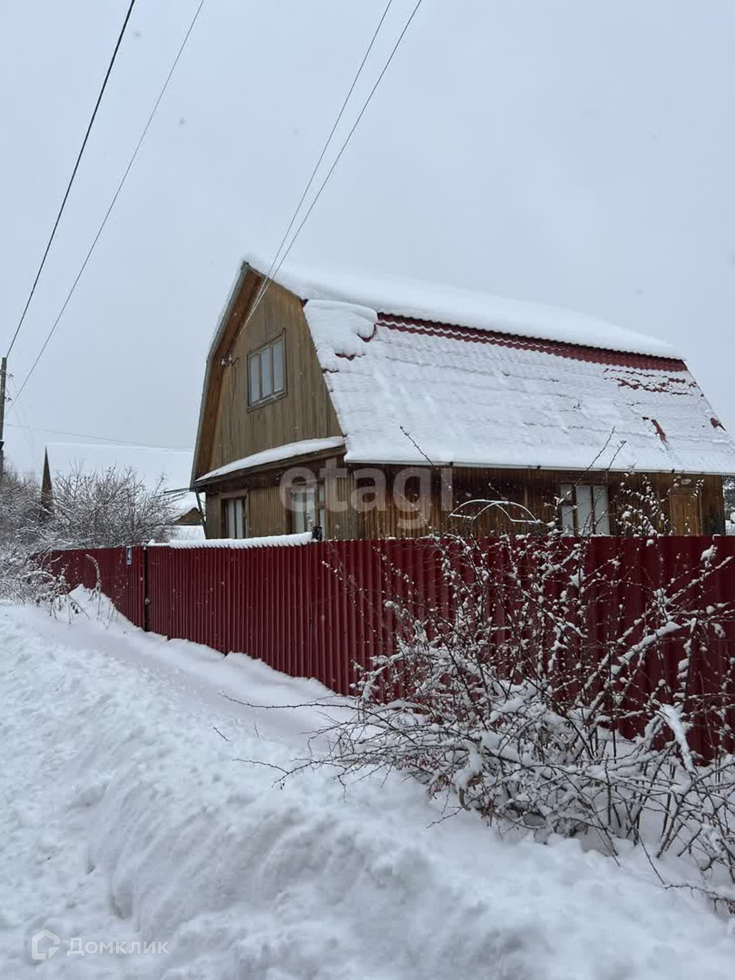 Участок 5.5 сот, огорожен забором из профнастила. Есть насаждения: малина, яблони, вишня. Помимо дома на участке есть теплица, подсобные помещения.