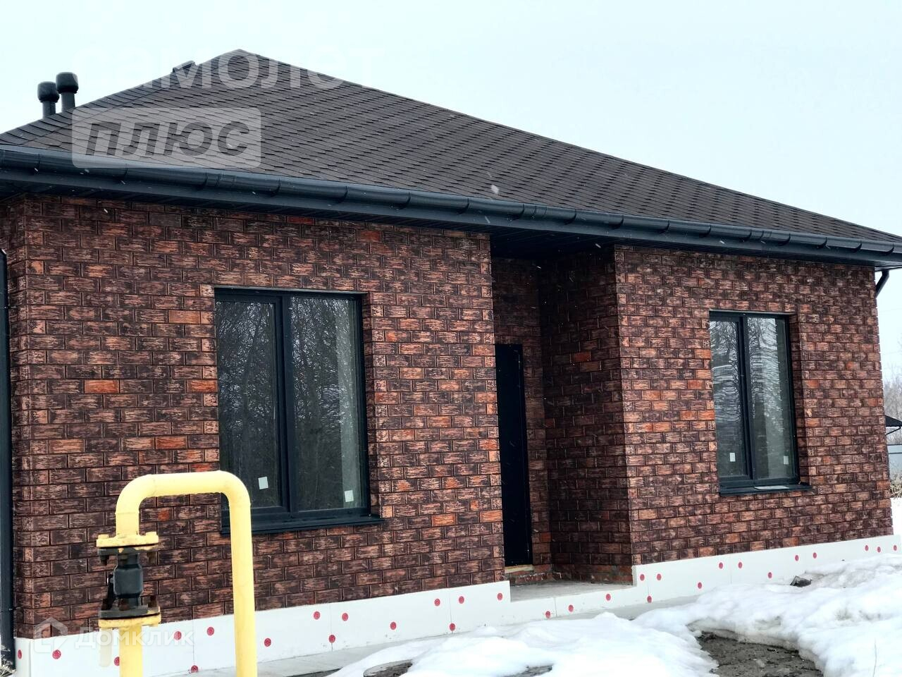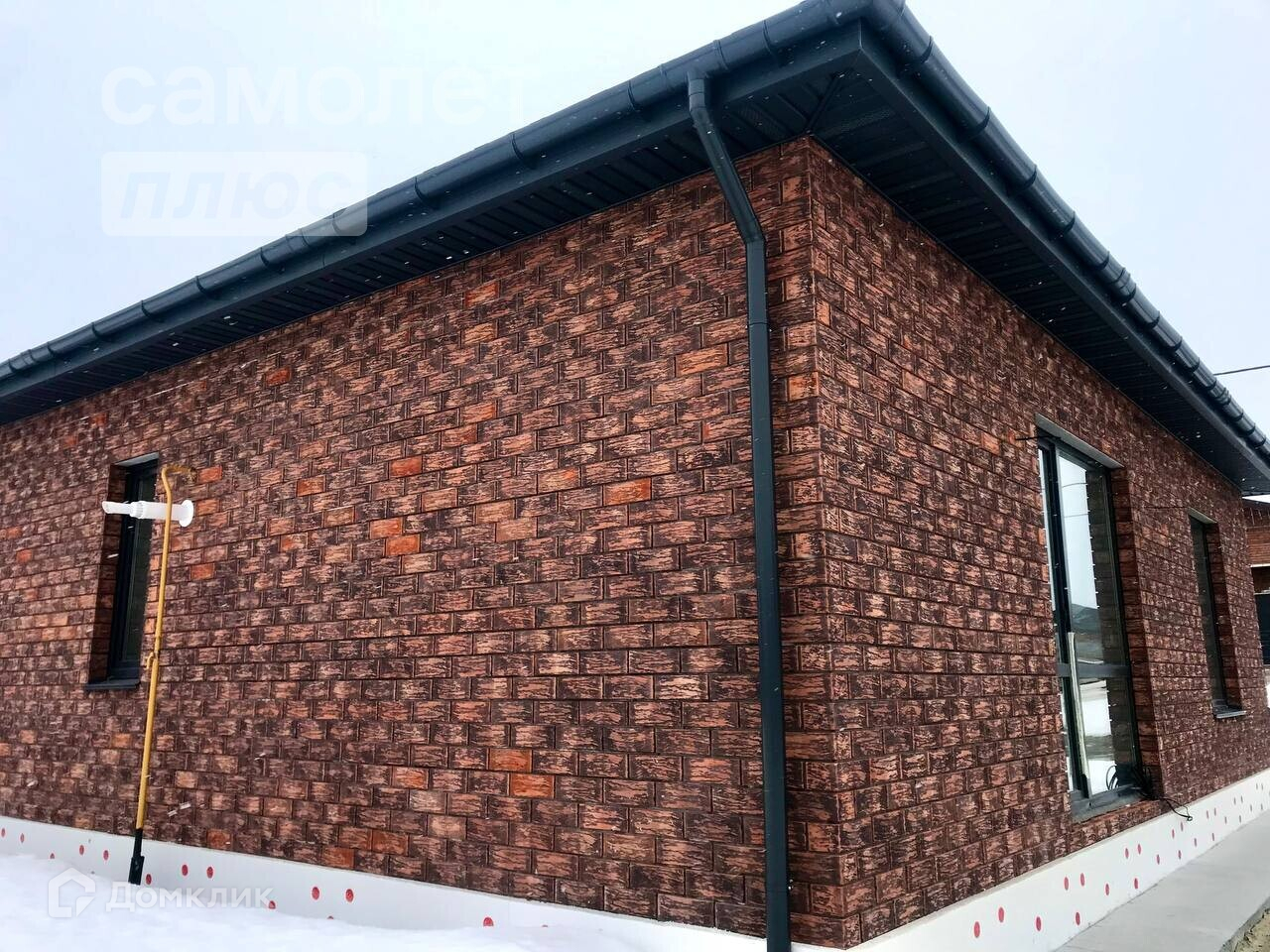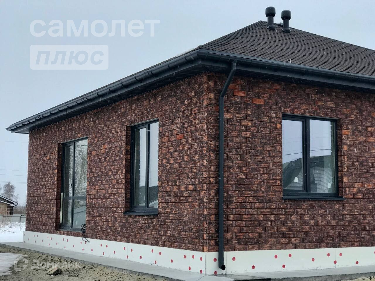 Дом изготовлен из керамзитоблоков, утеплён и облицован декоративным керамическим кирпичом. Вокруг него также выполнена отмостка. Крыша представляет собой четырёхскатную конструкцию, покрытую мягкой черепицей, а также оборудованную водосточной системой. Фундамент утеплён, что обеспечивает дополнительное преимущество.
