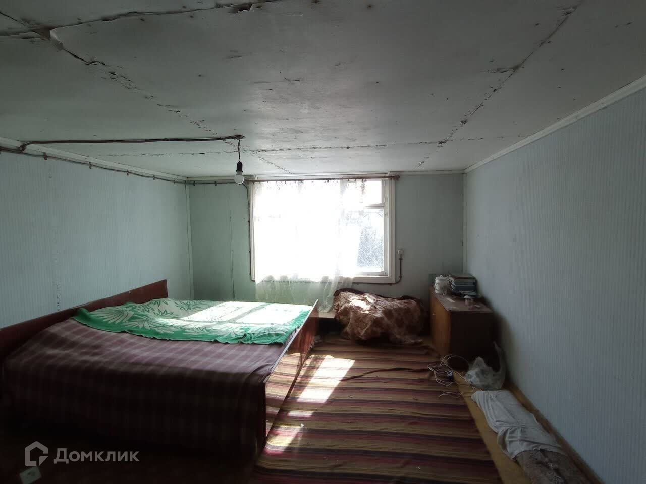 На участке располагается дом из бруса с мансардным этажом и верандой. Снаружи обшит вагонкой. Первый этаж обшит вагонкой, полы деревянные. Второй этаж выполнен косметический ремонт. Печное отопление. Площадь дома без веранды 45 м2.
