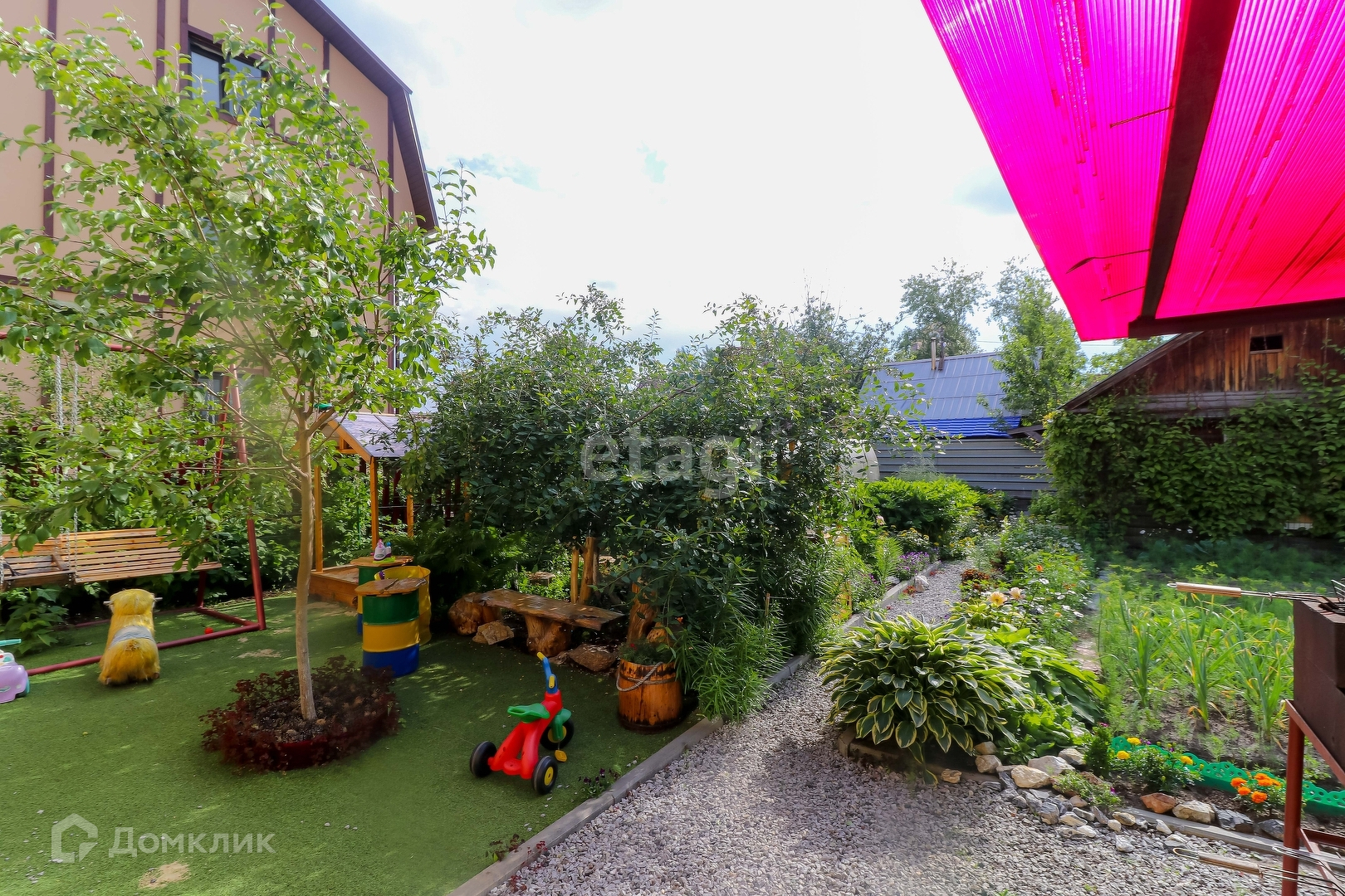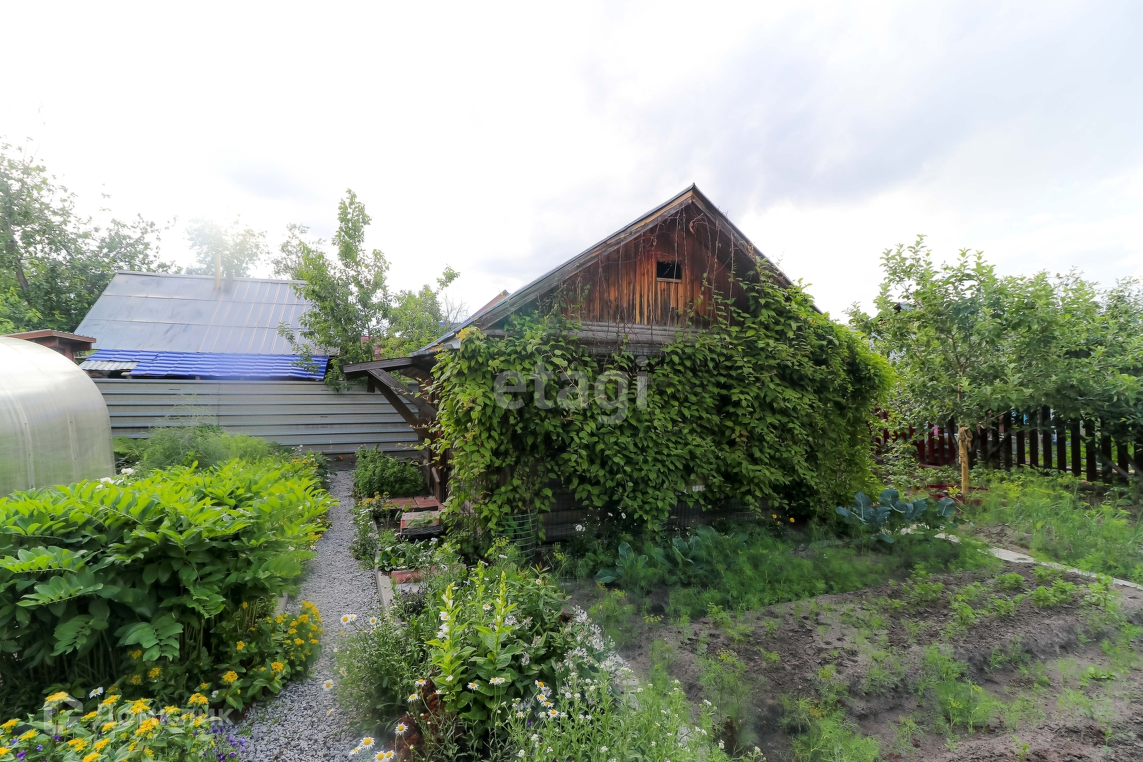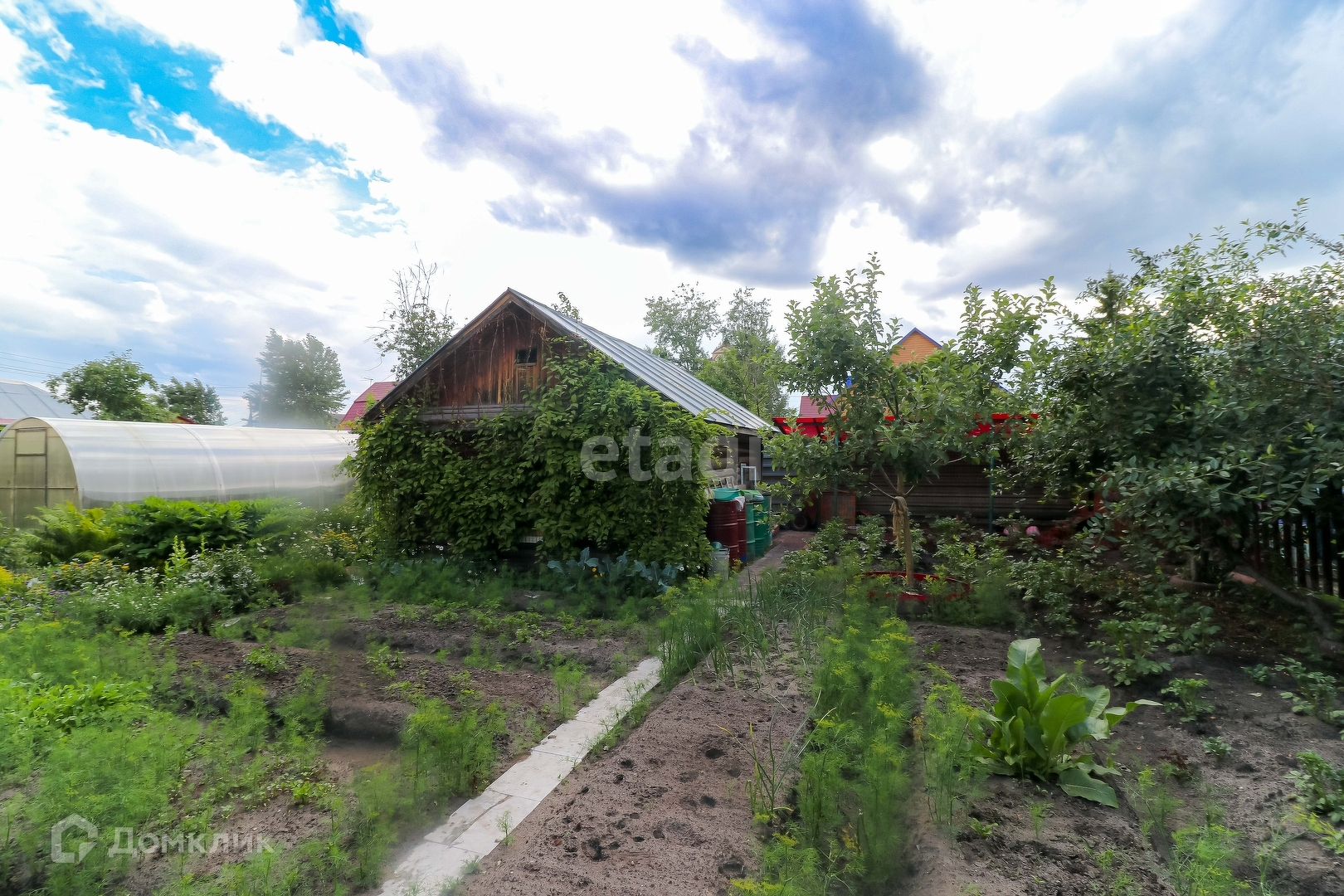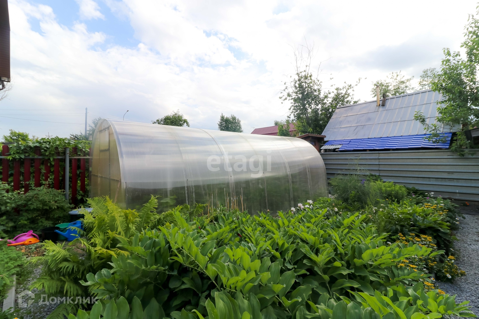 Так же на участке имеется благоустроенный гараж, баня, беседка, ухоженный участок с насаждениями и детской площадкой, теплицы.