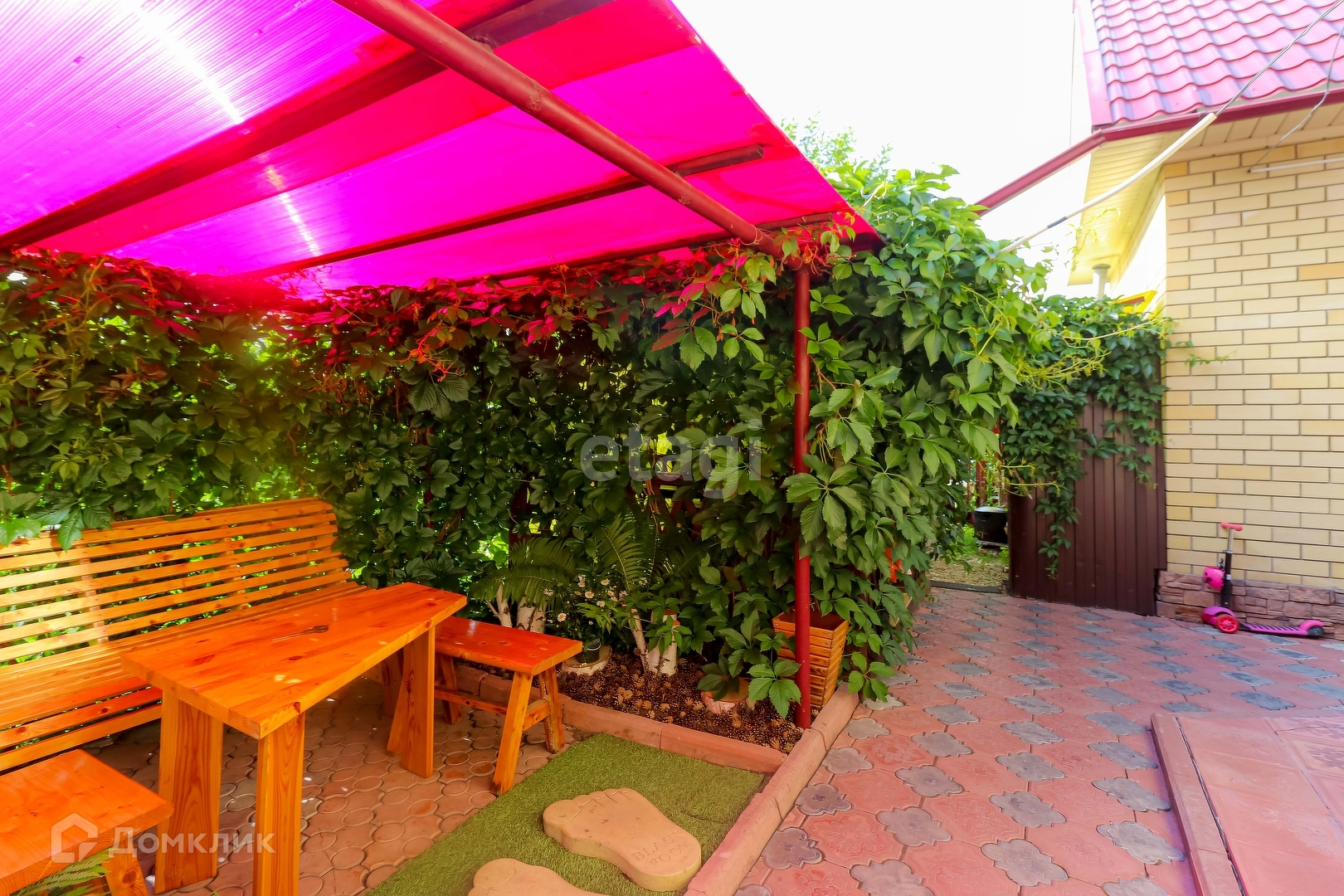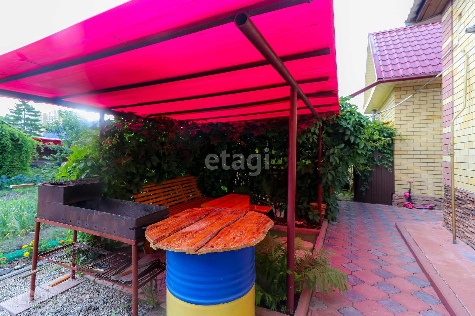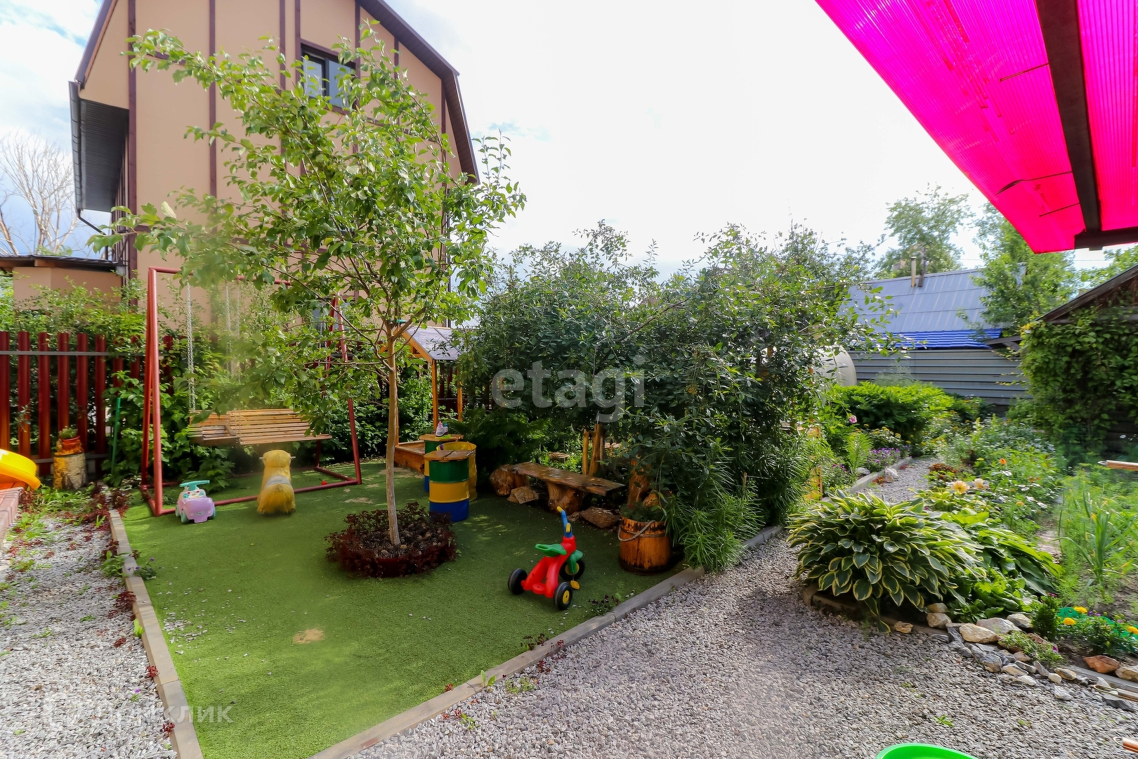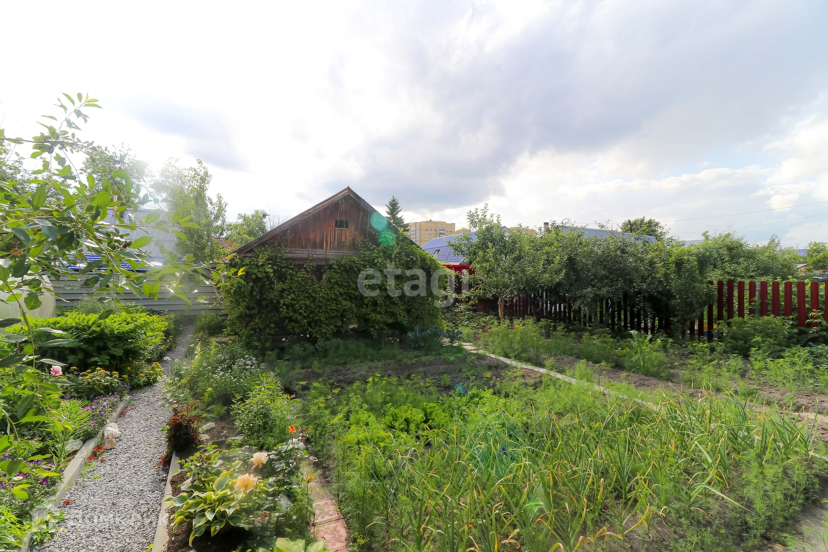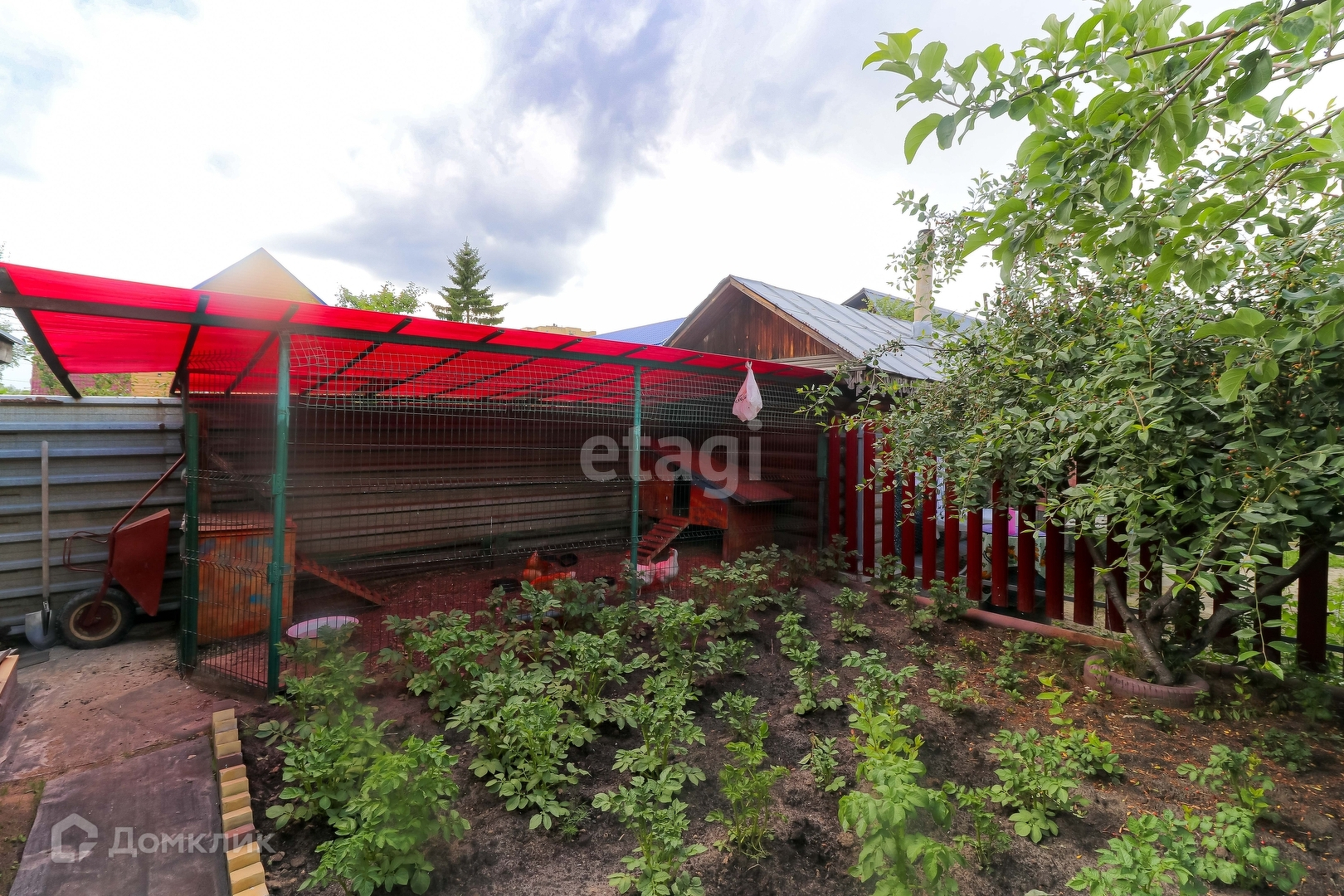 Так же на участке имеется благоустроенный гараж, баня, беседка, ухоженный участок с насаждениями и детской площадкой, теплицы.