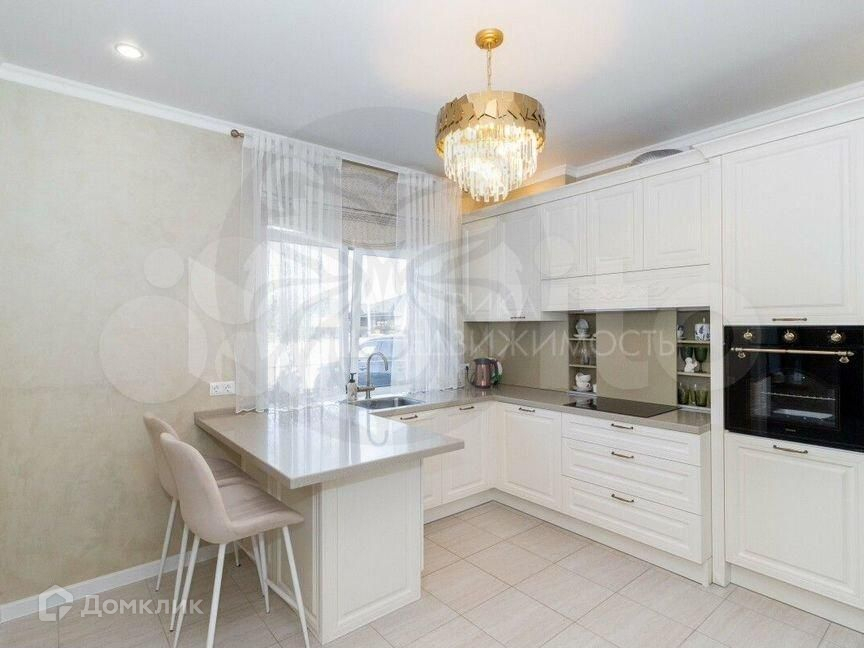В доме выполнен дизайнерский ремонт в светлых тонах. По всему дому теплые полы. Дом очень теплый, даже зимой отопление работает не в полную силу. В жилых комнатах на полу качественный ламинат, в нежилых — плитка. Потолки натяжные с точечным освещением. При продаже остается кухонный гарнитур со встроенной техникой, встроенные шкафы.