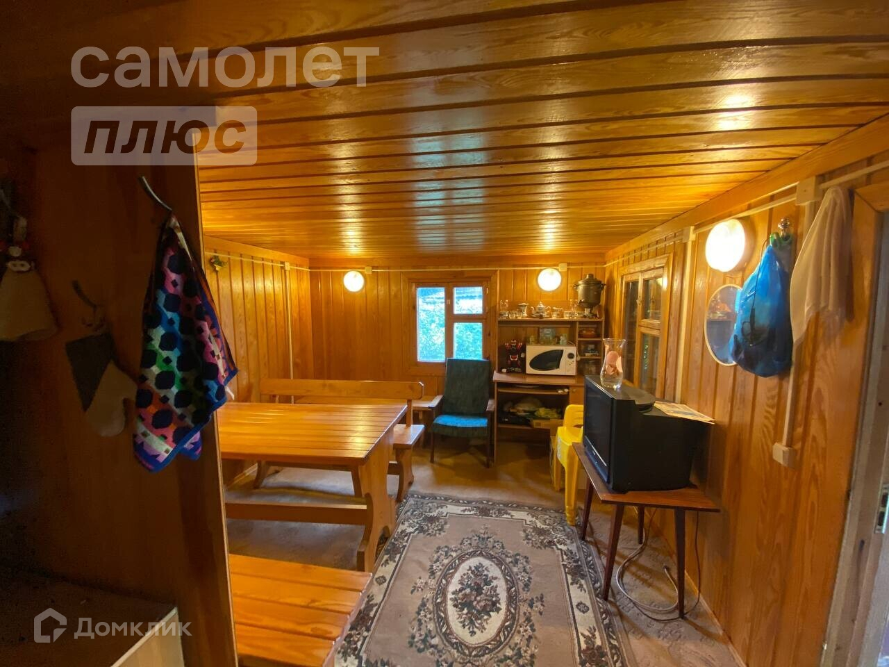 Летний дом состоит из кухни и комнаты. Просторная баня оборудована комнатой отдыха.